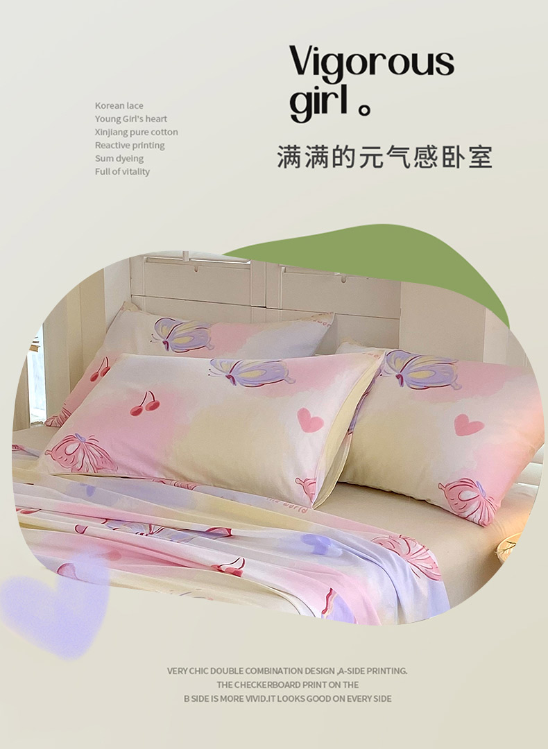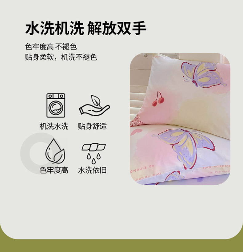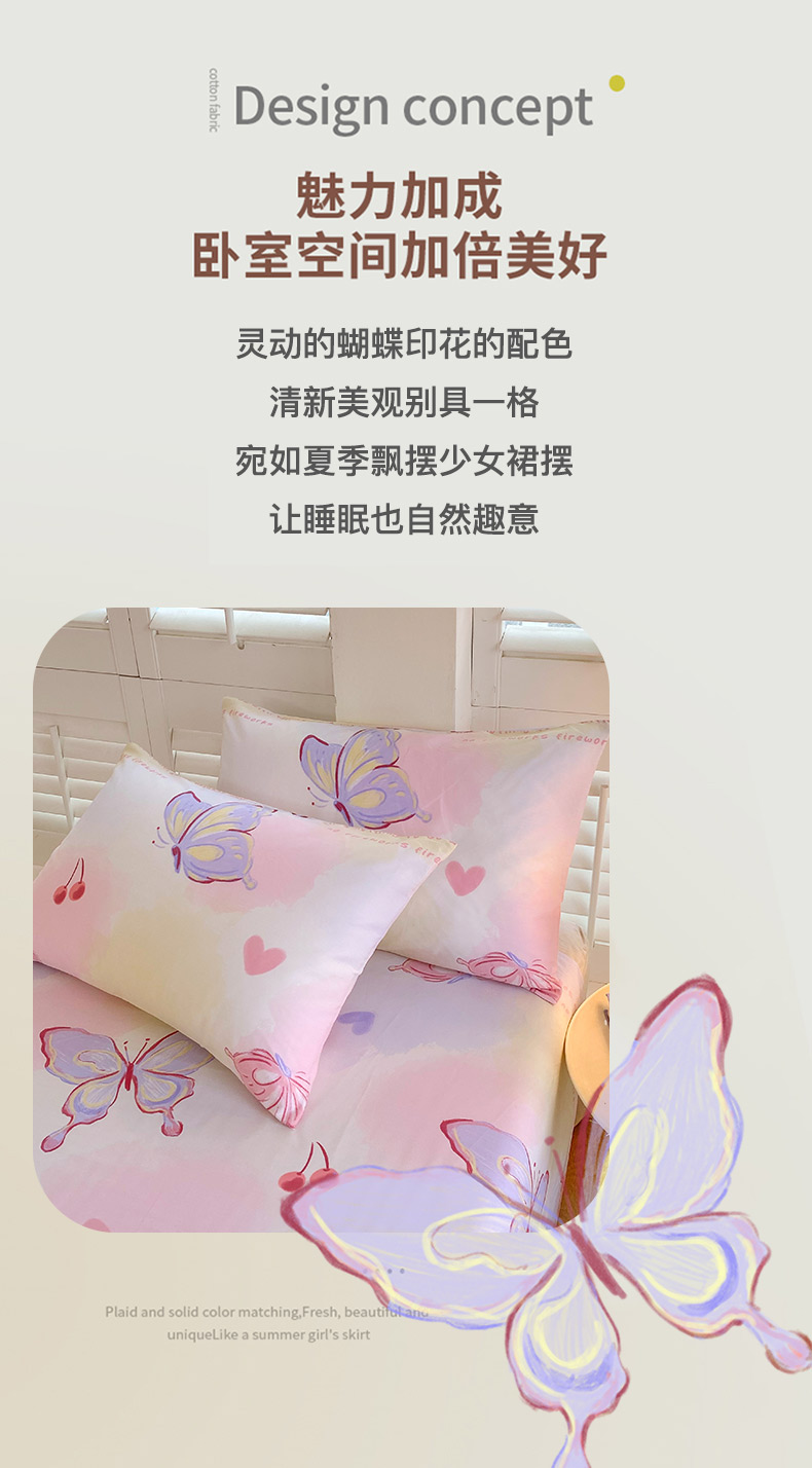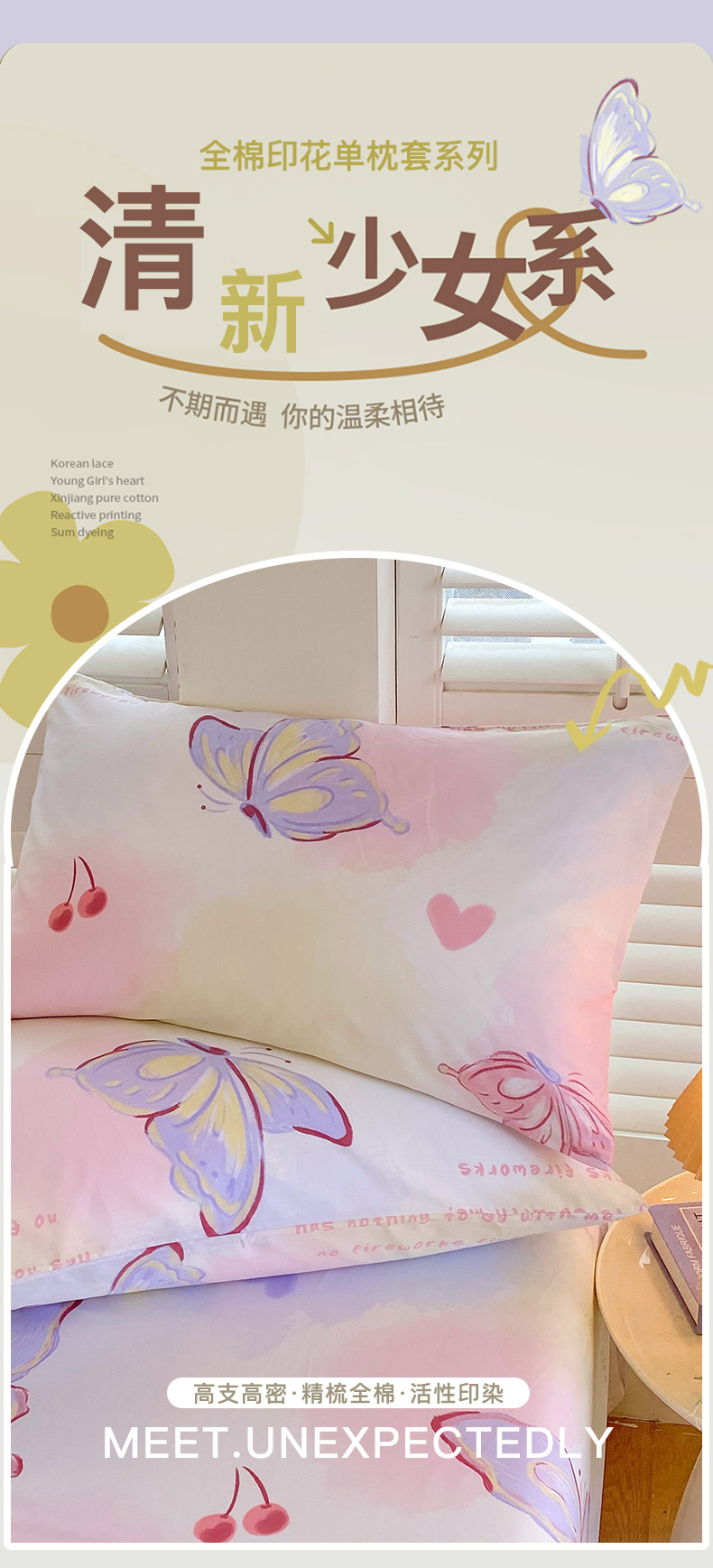 金鑫汇家纺 2024新款全棉印花单枕套 彩蝶飞舞