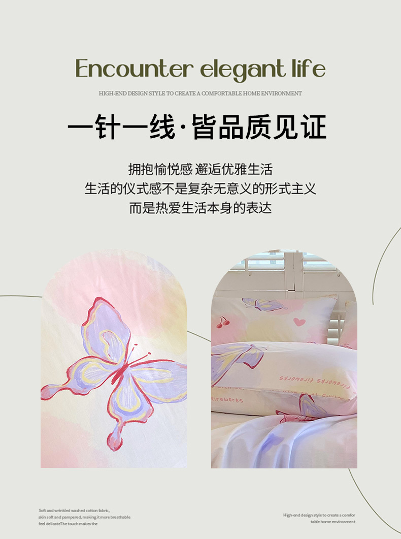 商品名称:金鑫汇家纺 2024新款全棉印花单枕套 彩蝶飞舞