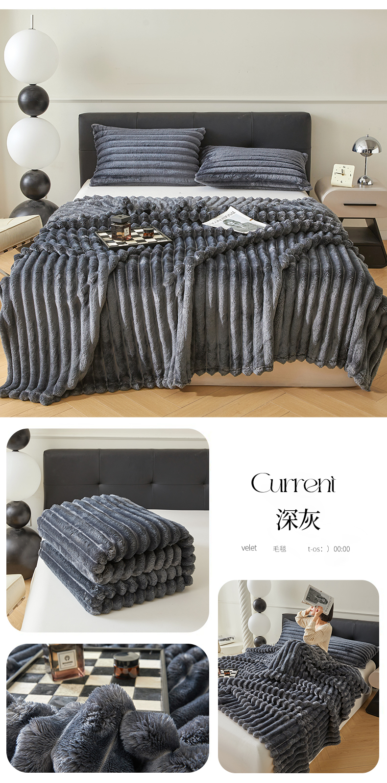 商品名称:雅萱家纺 2024新款兔毛绒毯系列 兔毛绒深灰
