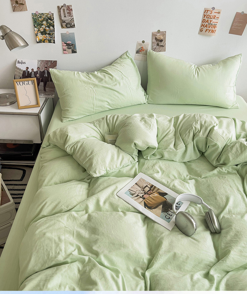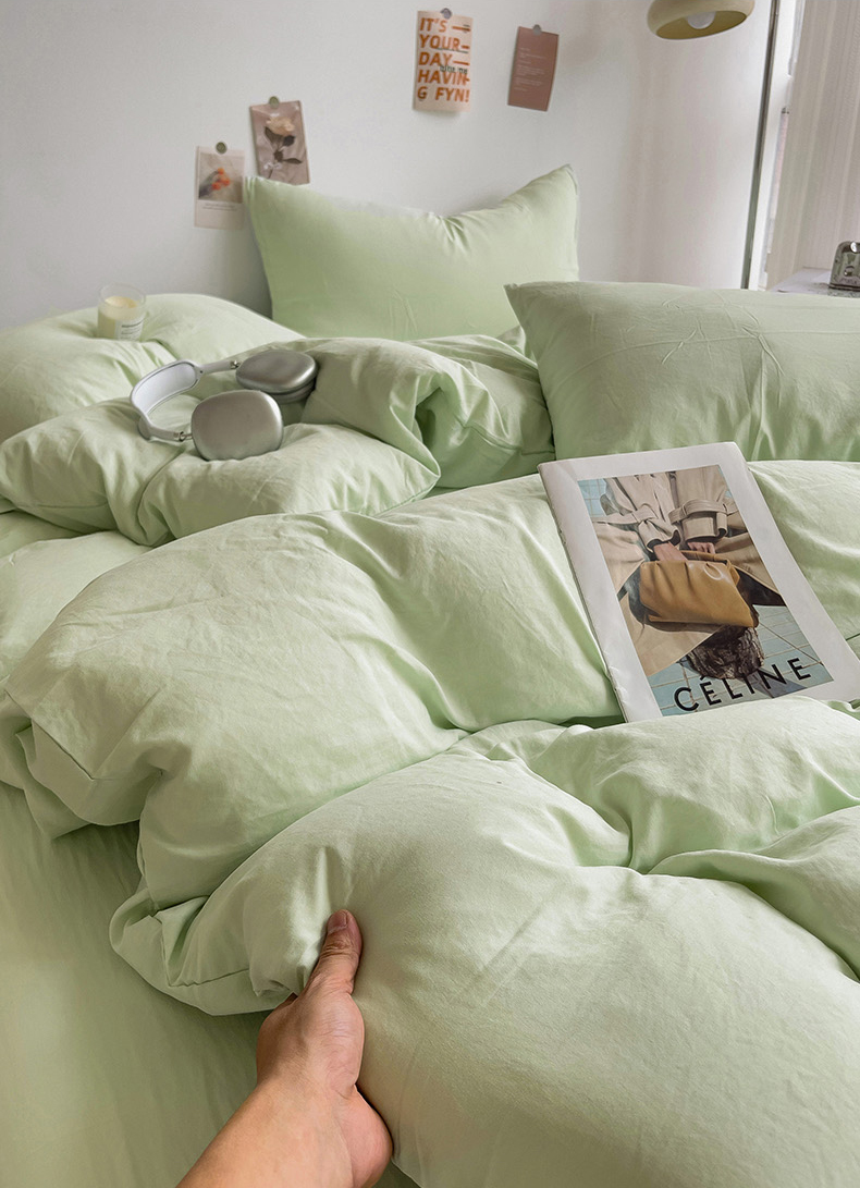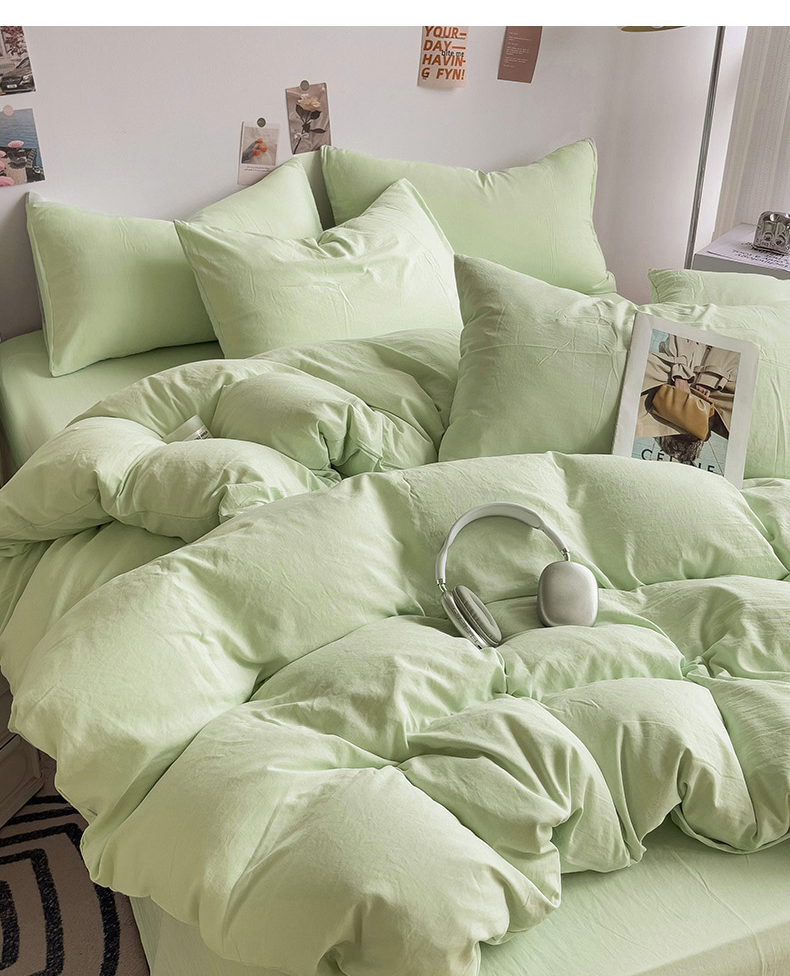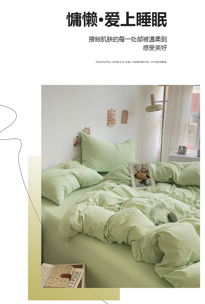 当前位置: 91家纺网 > 商品网购 > 床品套件 > 四件套 > 水洗棉四件套 > 韩巢家纺 2024新款日式ins风超柔褶皱亲肤水洗棉四件套 -纯色系列(提供卖家秀) 水洗棉浅绿