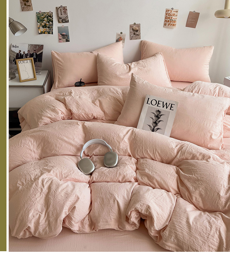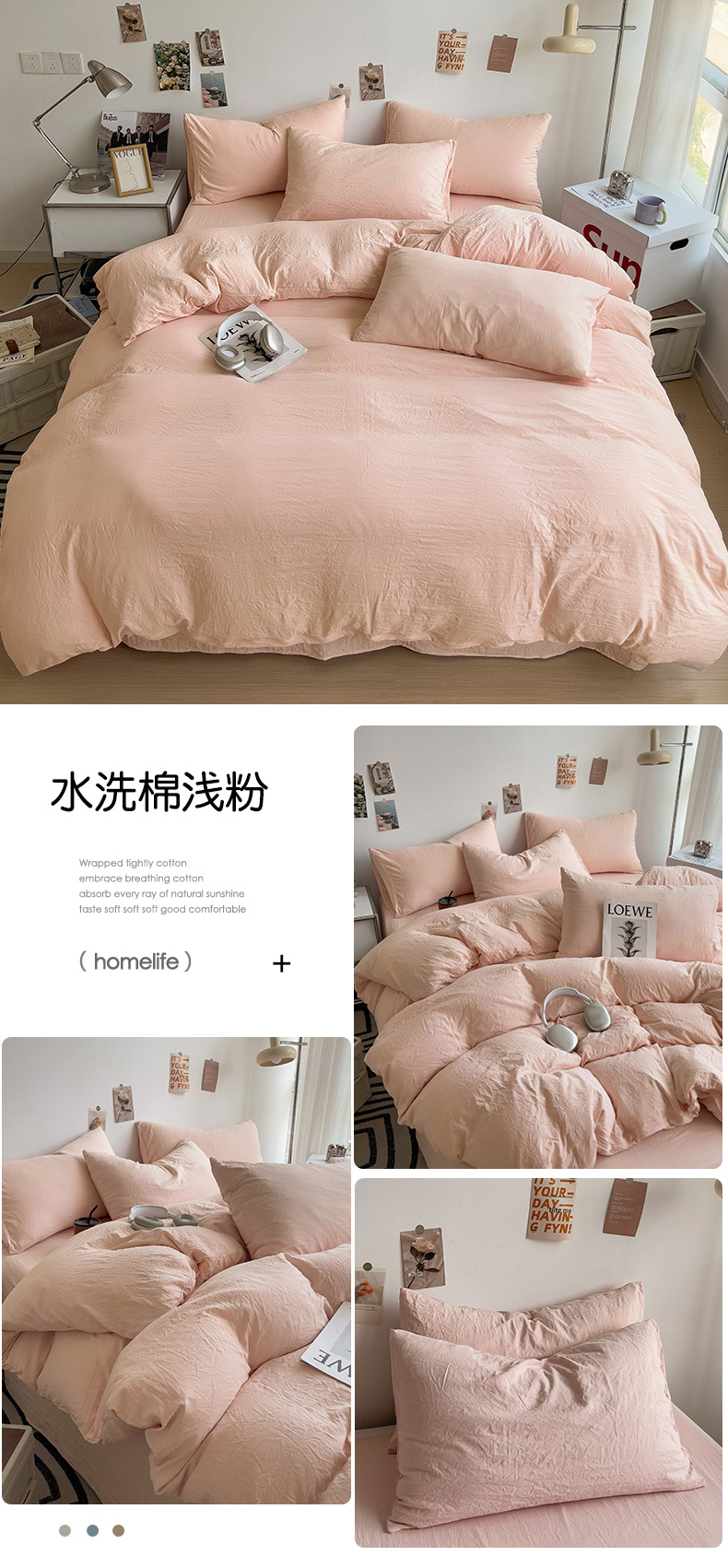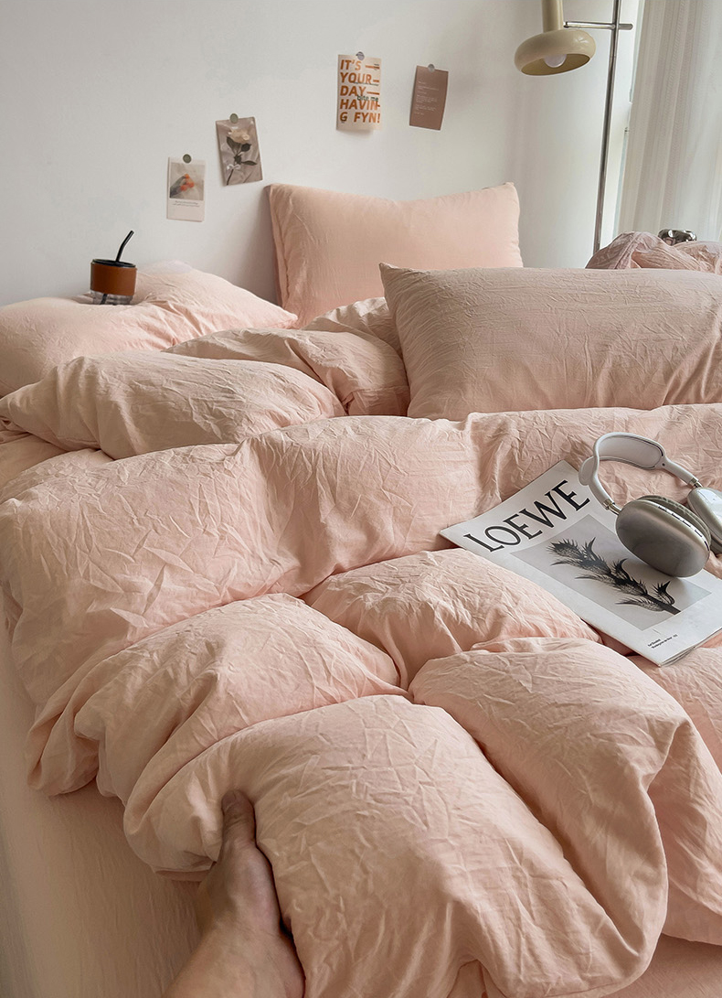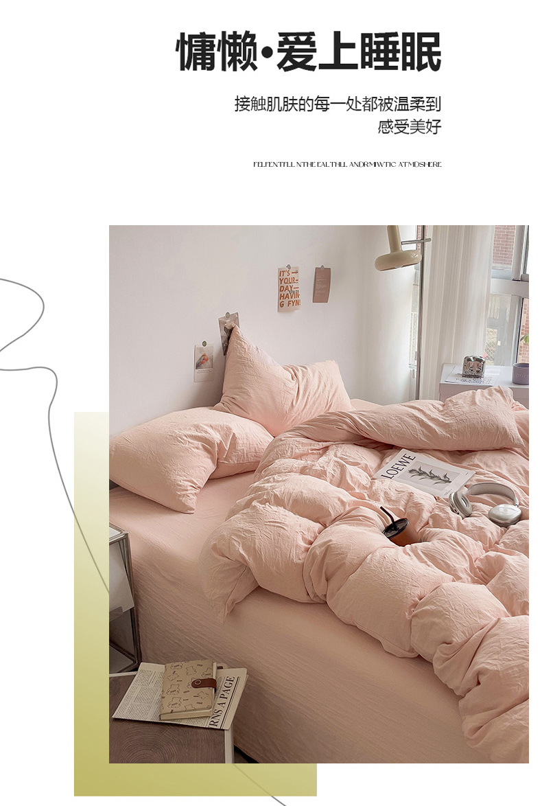 商品名称:韩巢家纺 2024新款日式ins风超柔褶皱亲肤水洗棉被套单件-纯色系列(提供卖家秀) 水洗棉浅粉