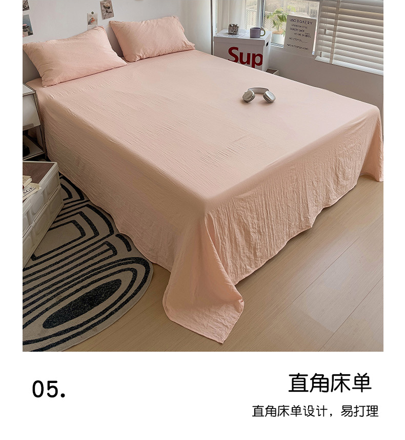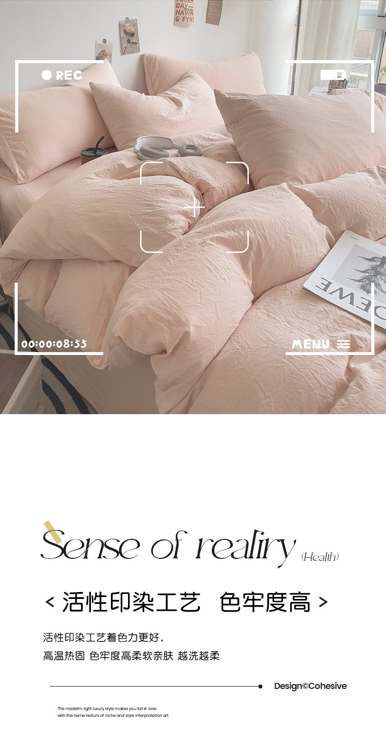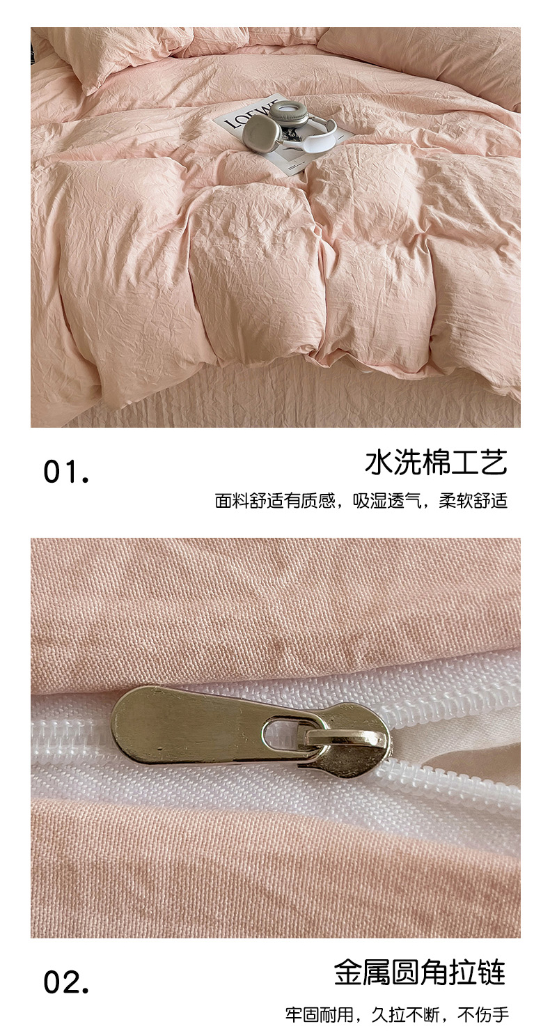 商品名称:韩巢家纺 2024新款日式ins风超柔褶皱亲肤水洗棉被套单件-纯色系列(提供卖家秀) 水洗棉浅粉
