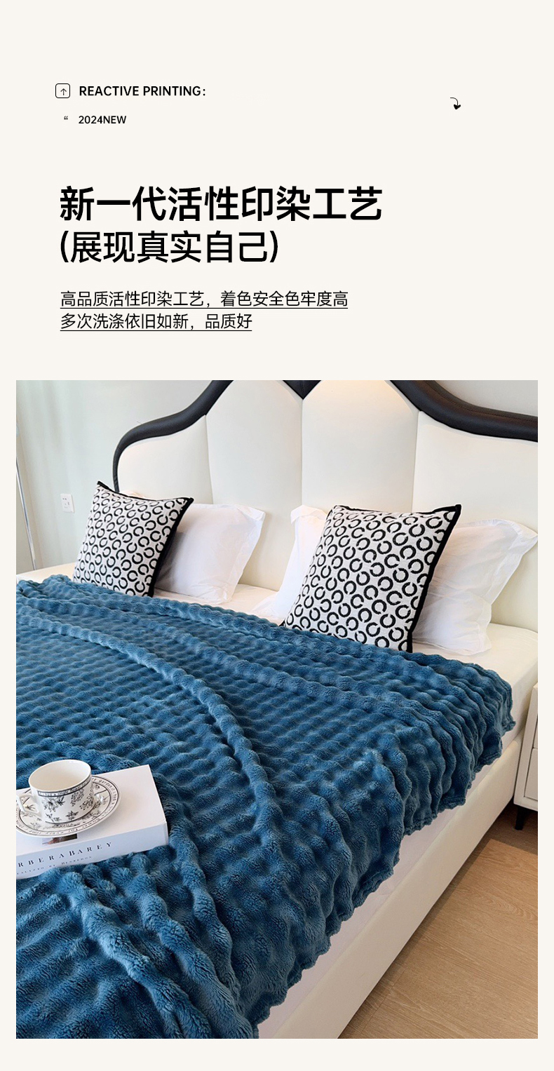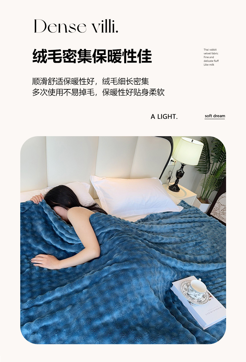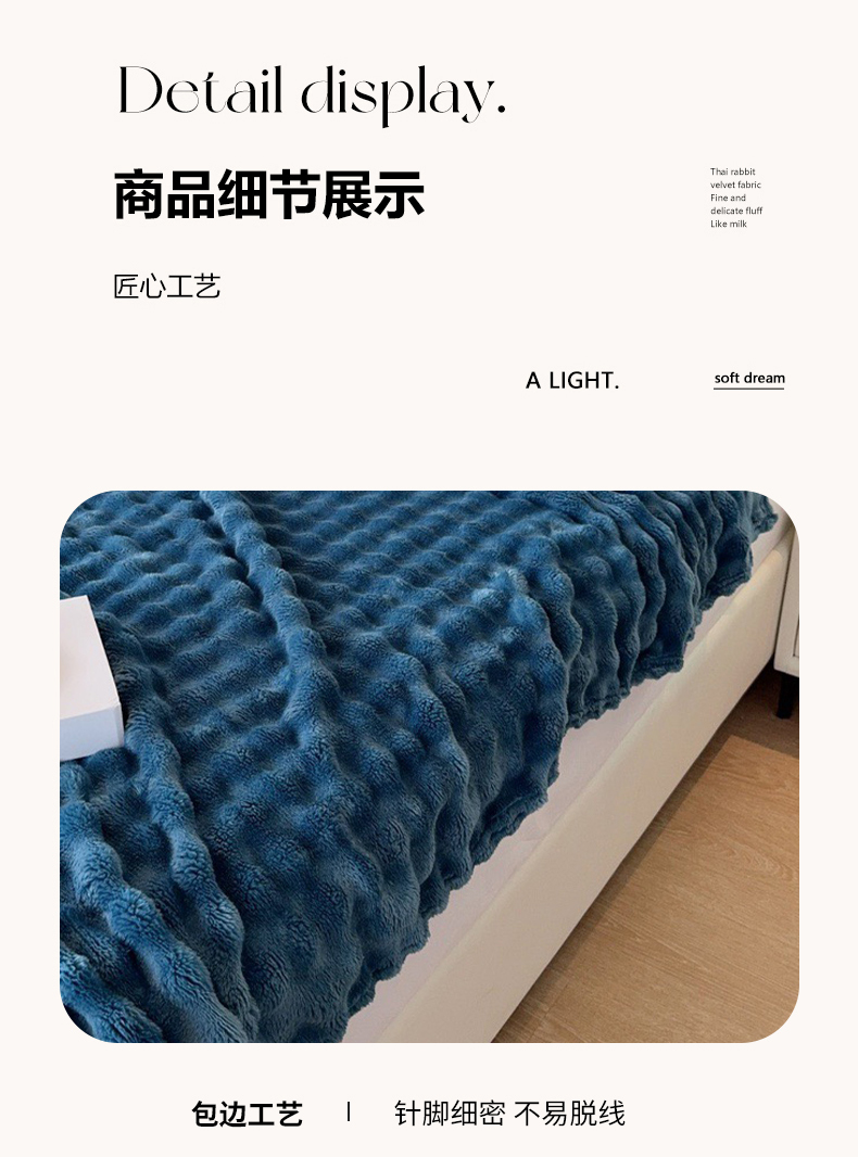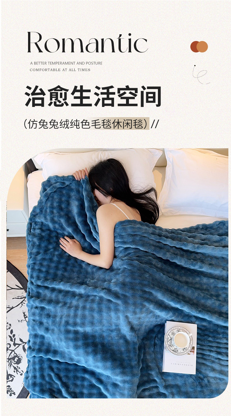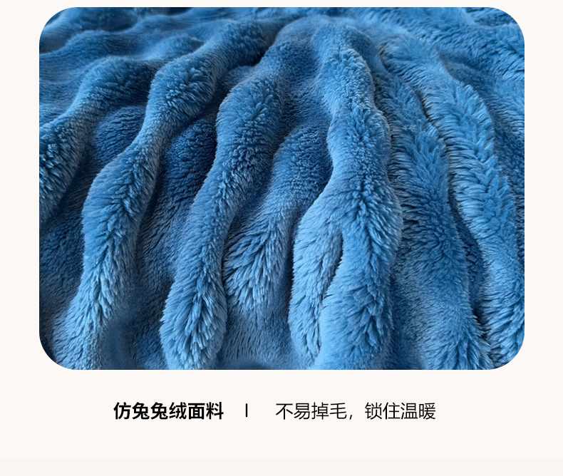 商品名称:兜米家居 2024新款纯色仿兔毛泡泡毛毯牛奶绒毛毯午睡毯 普鲁蓝