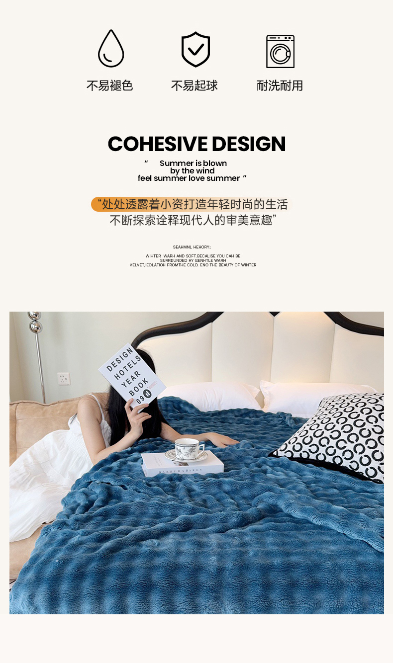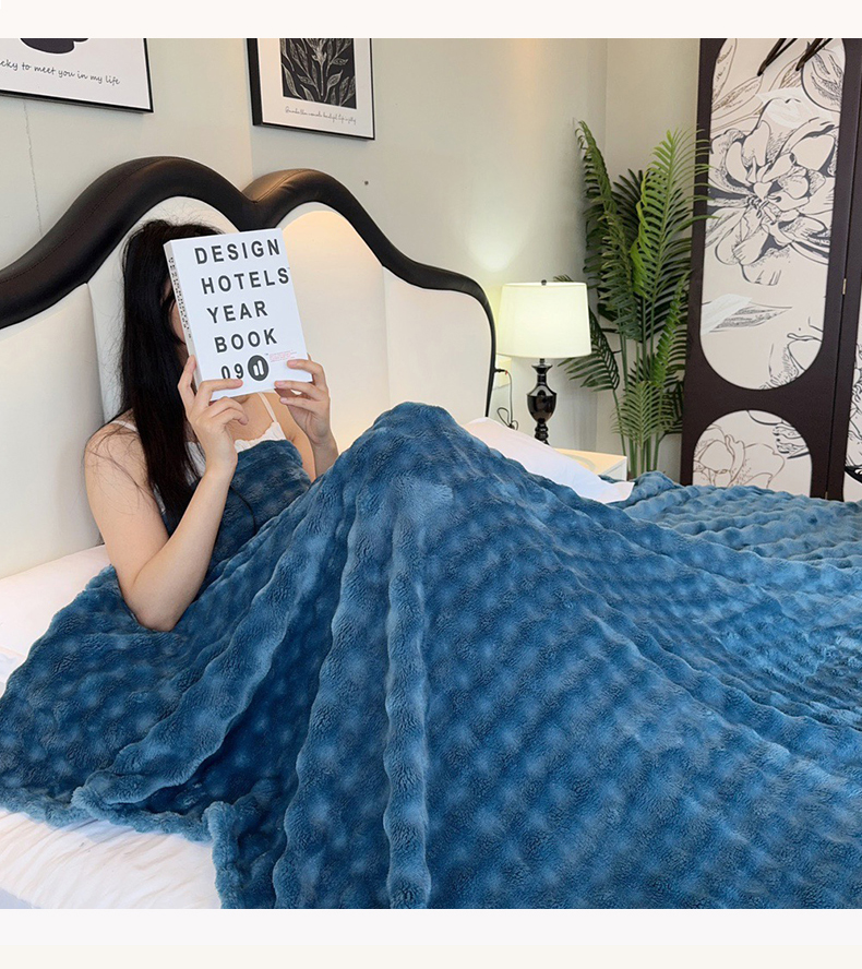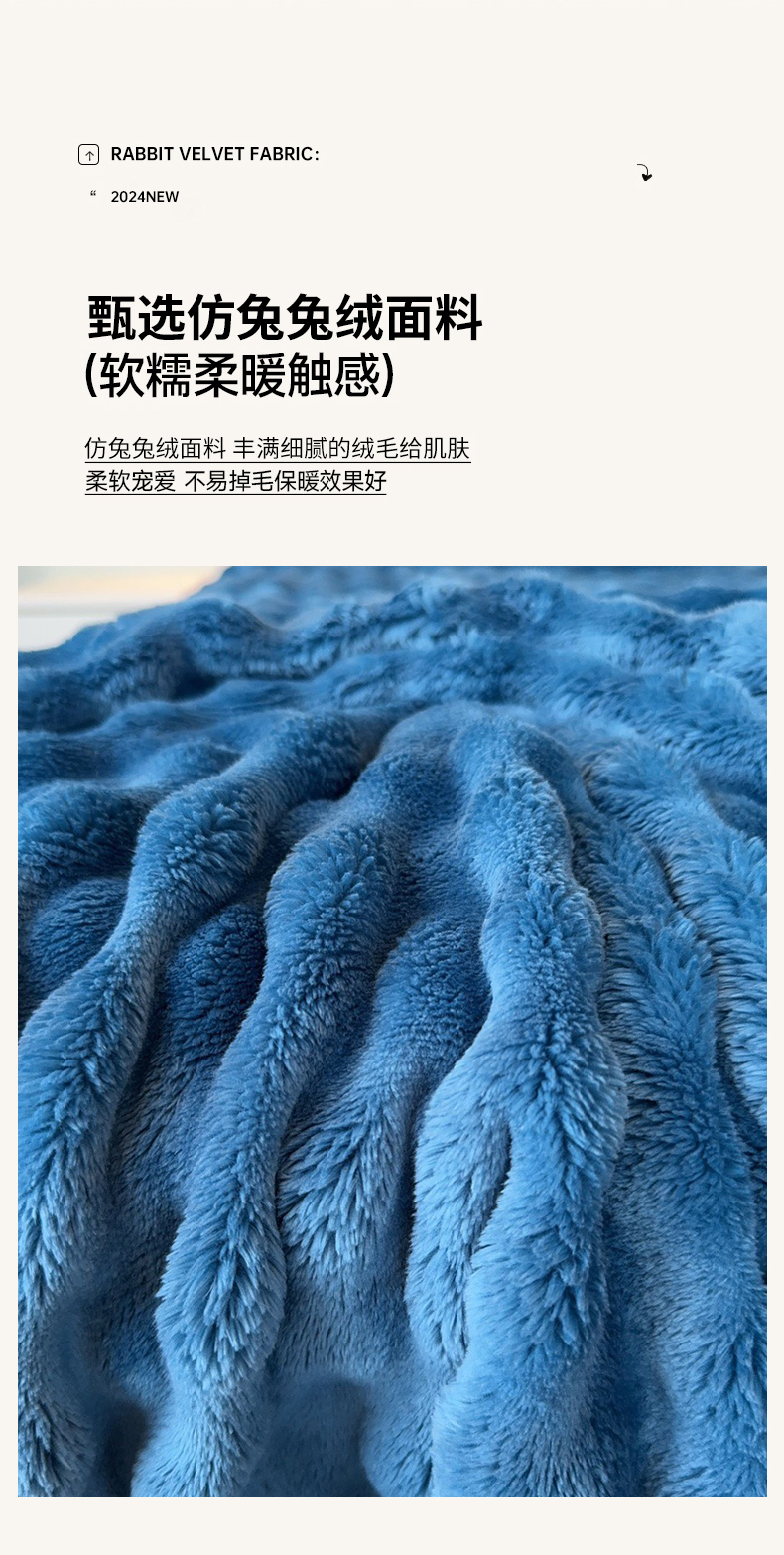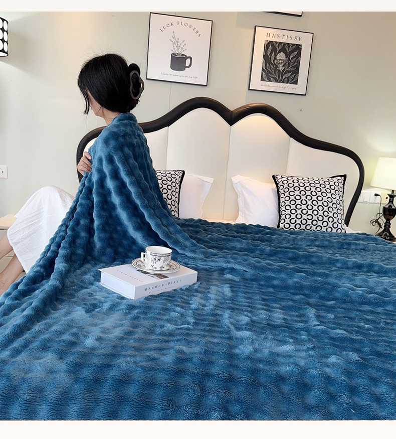 商品名称:兜米家居 2024新款纯色仿兔毛泡泡毛毯牛奶绒毛毯午睡毯 普鲁蓝
