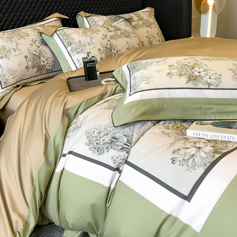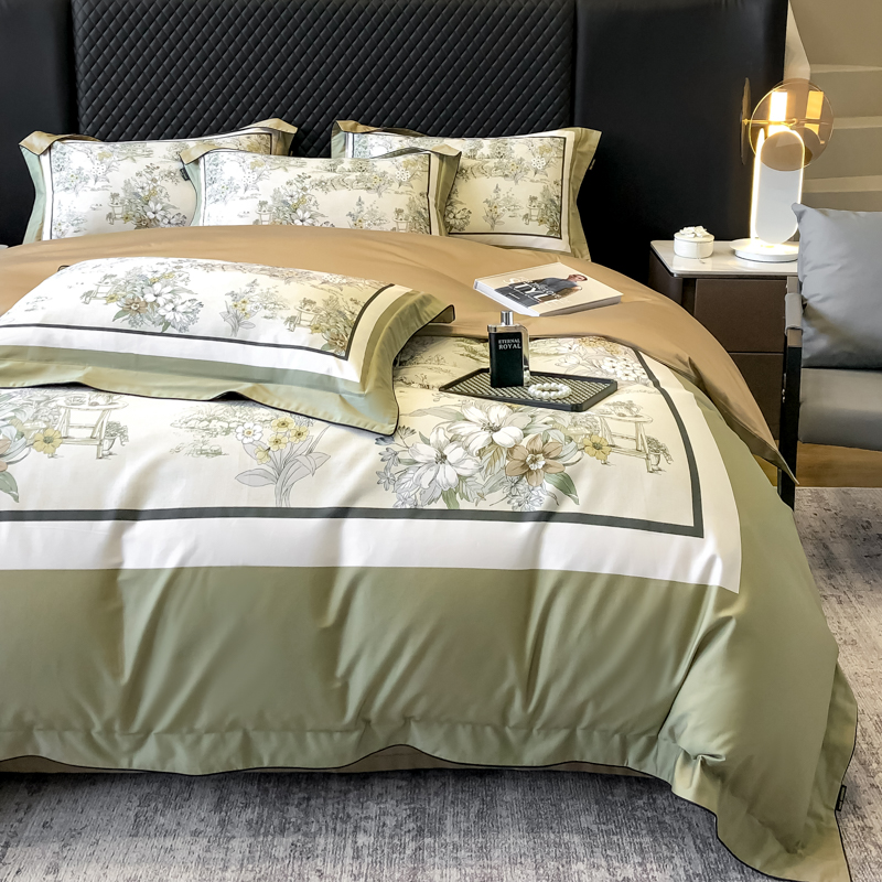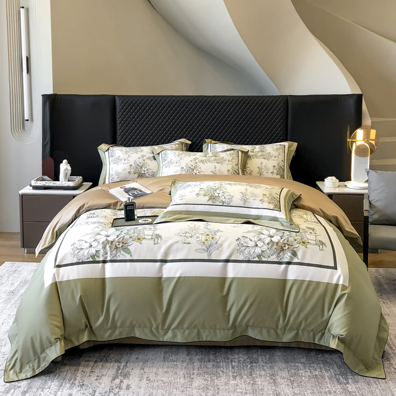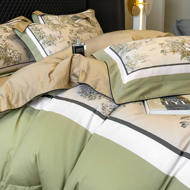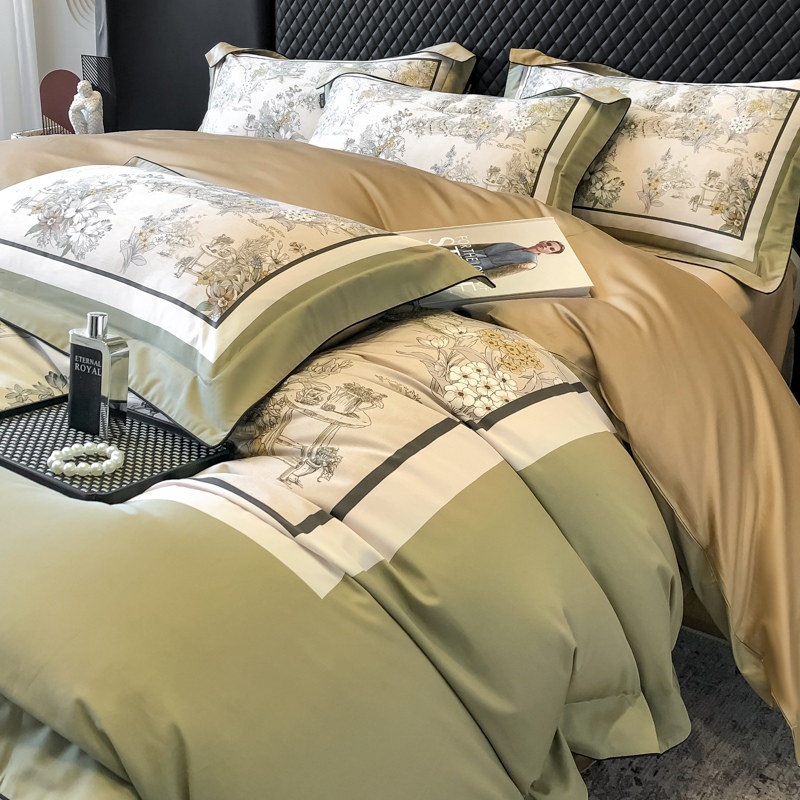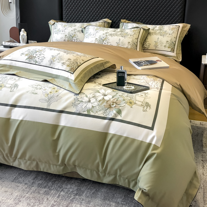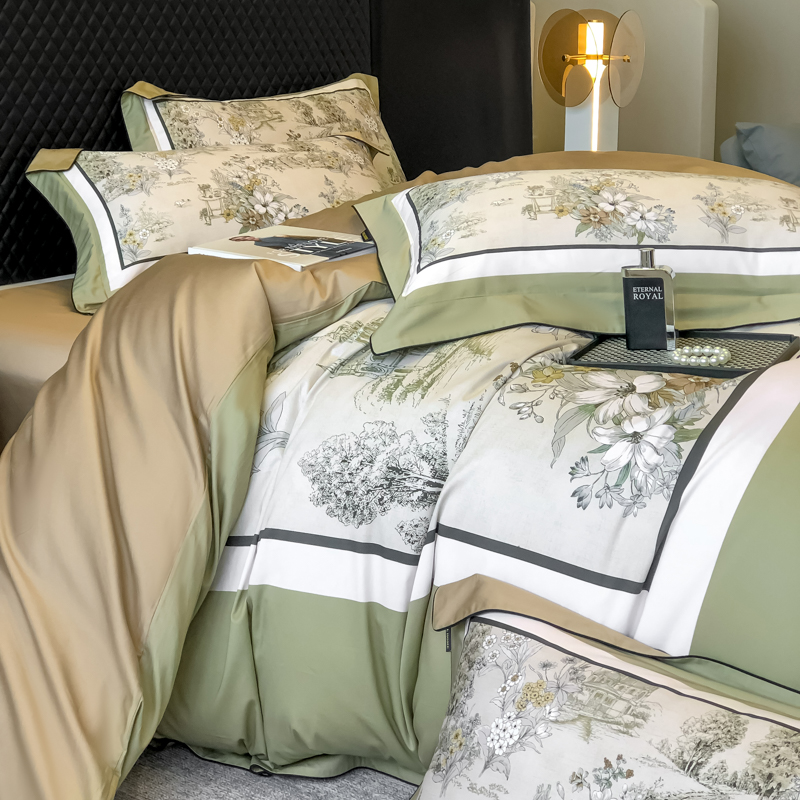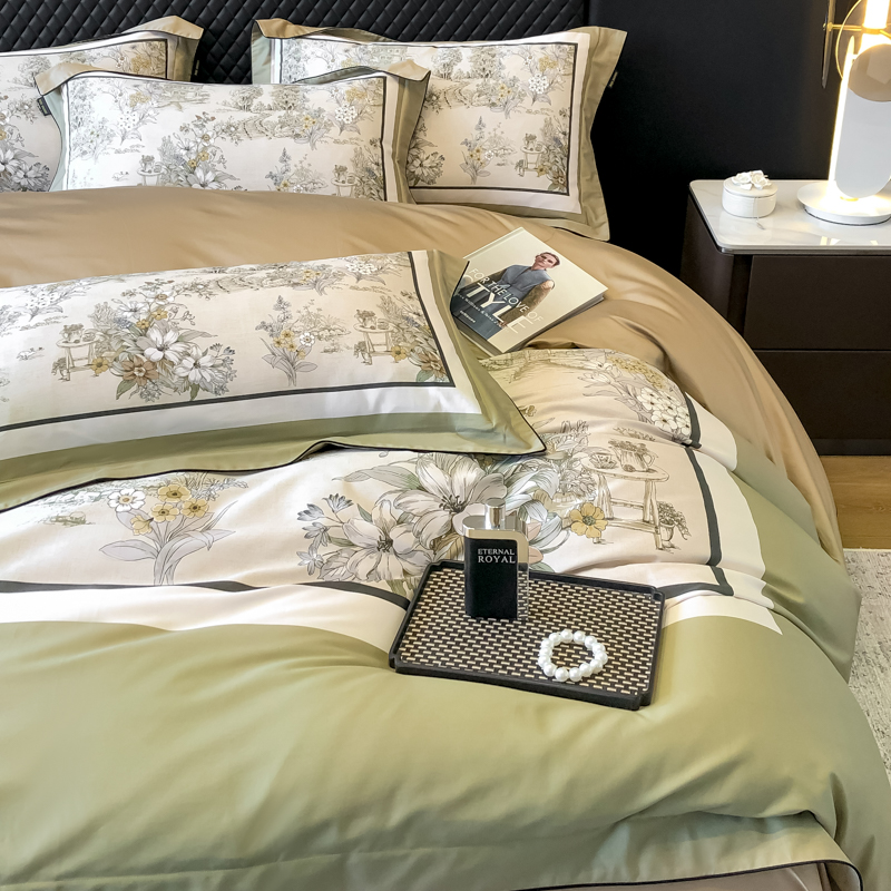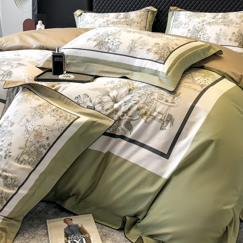 东方名伶 2024新款50S全棉数码印花长绒棉四件套 浮生若梦-绿