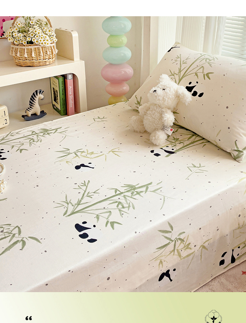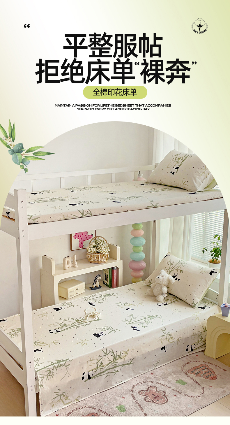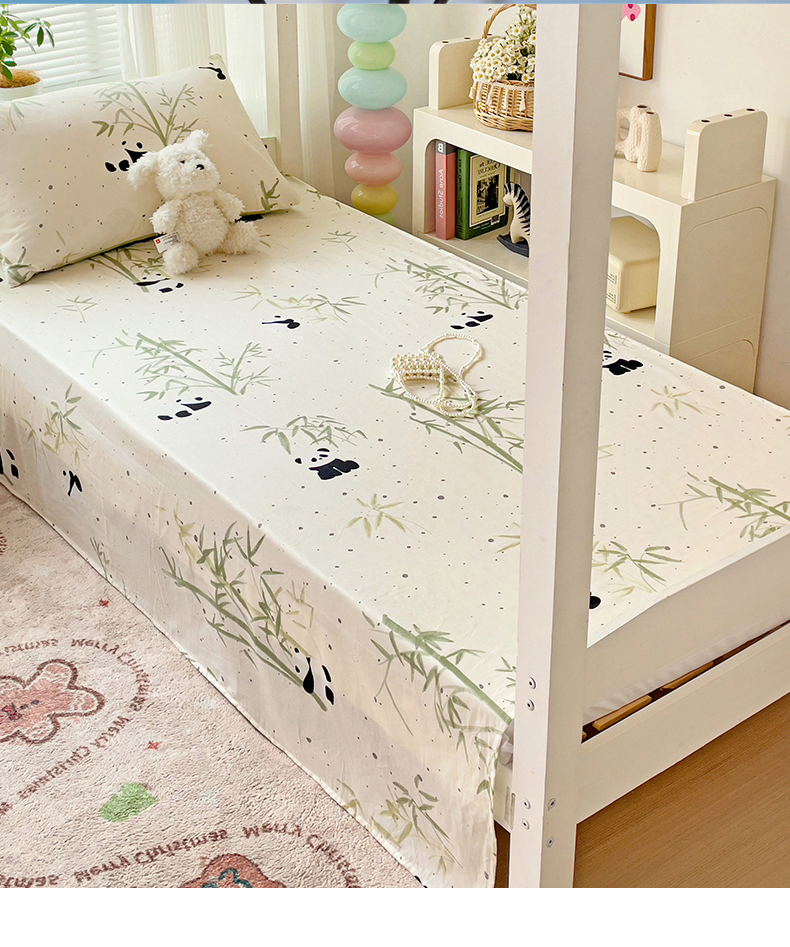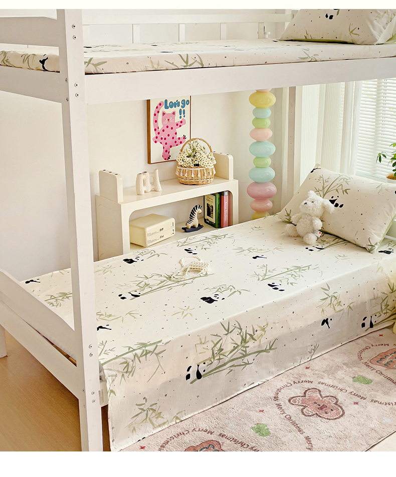• 91家纺网 家纺一手货源 找家纺 名兮家居 2024新款学生床上下铺全棉床单  熊猫家园