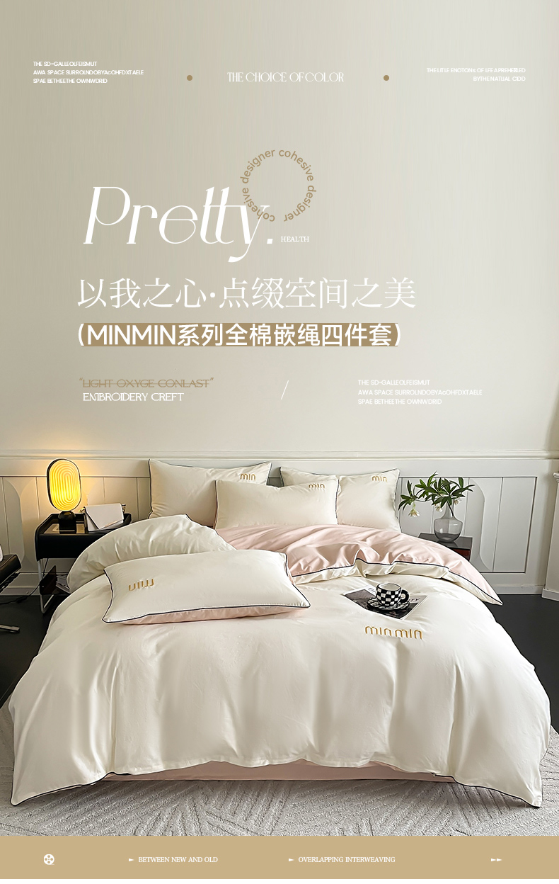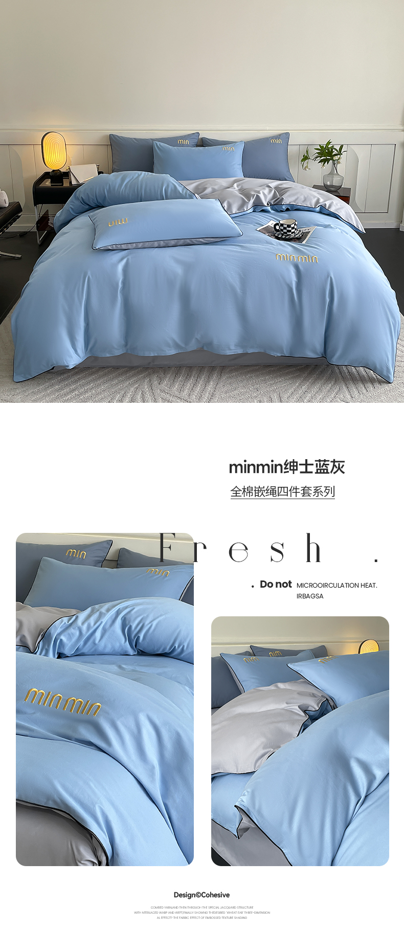 当前位置: 91家纺网 > 商品网购 > 床品套件 > 四件套 > 全棉活性四件套 > 澳梵家居 2024新款全棉嵌绳四件套--minmin系列 minmin莱茵蓝灰