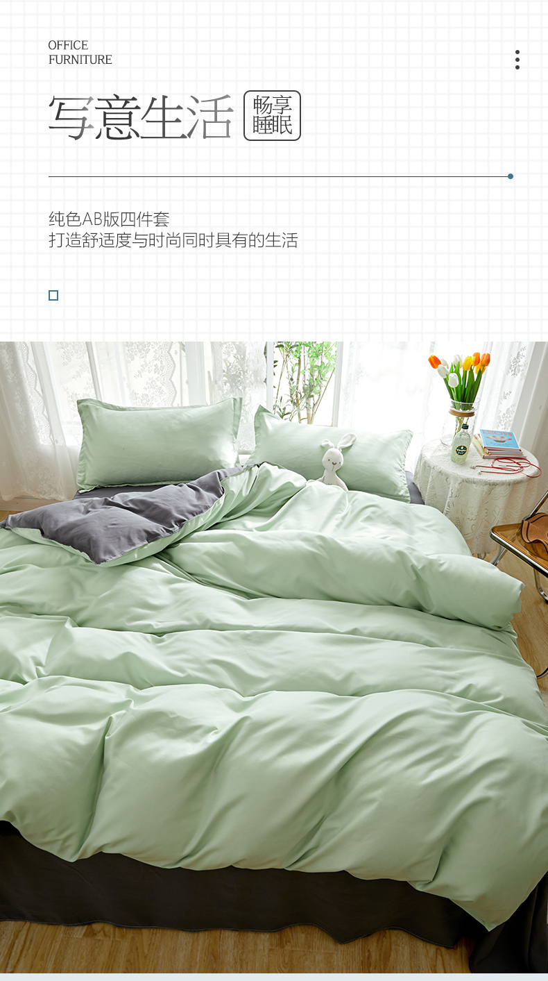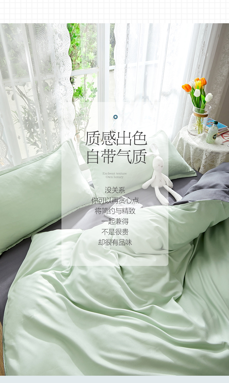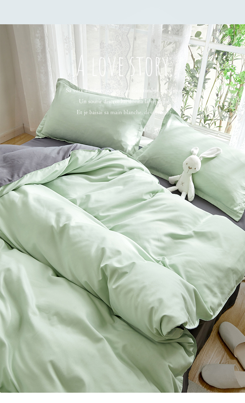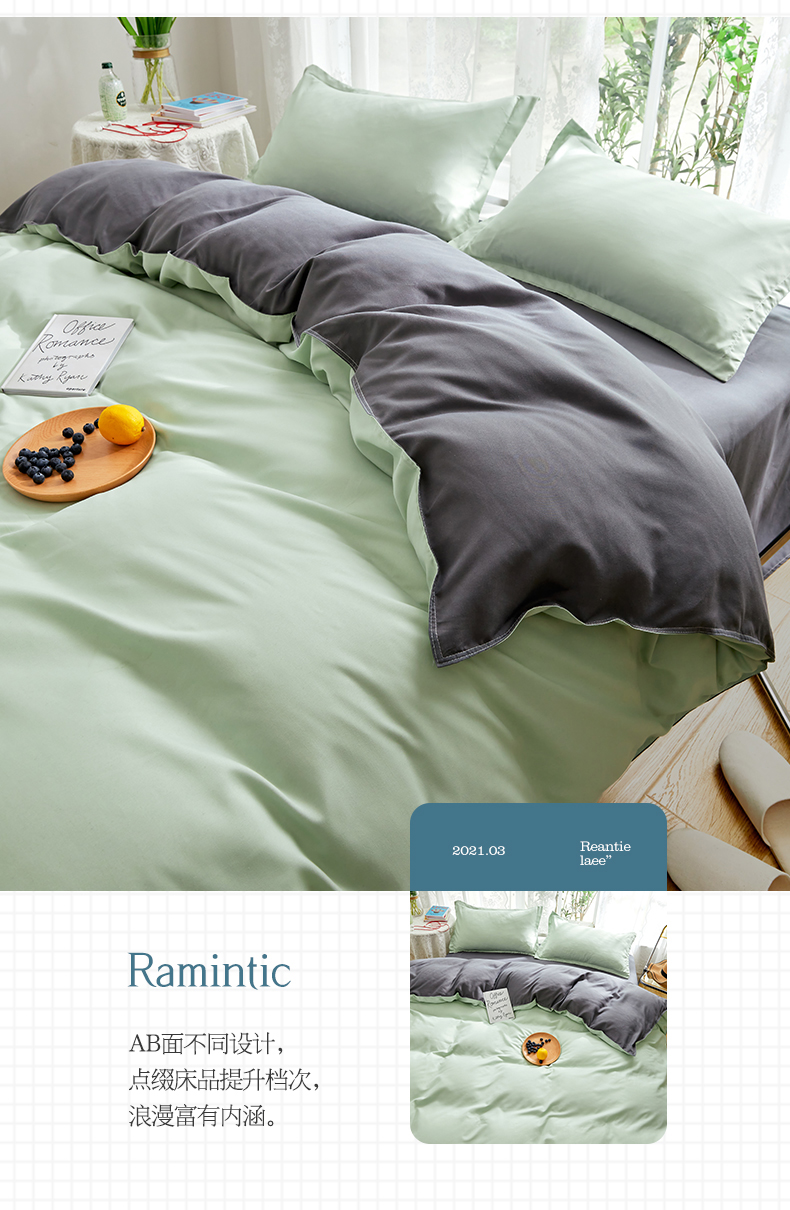 悦织湾家纺 2025新款纯色床单款芦荟棉四件套 豆绿深灰