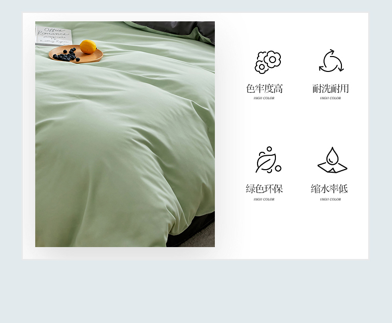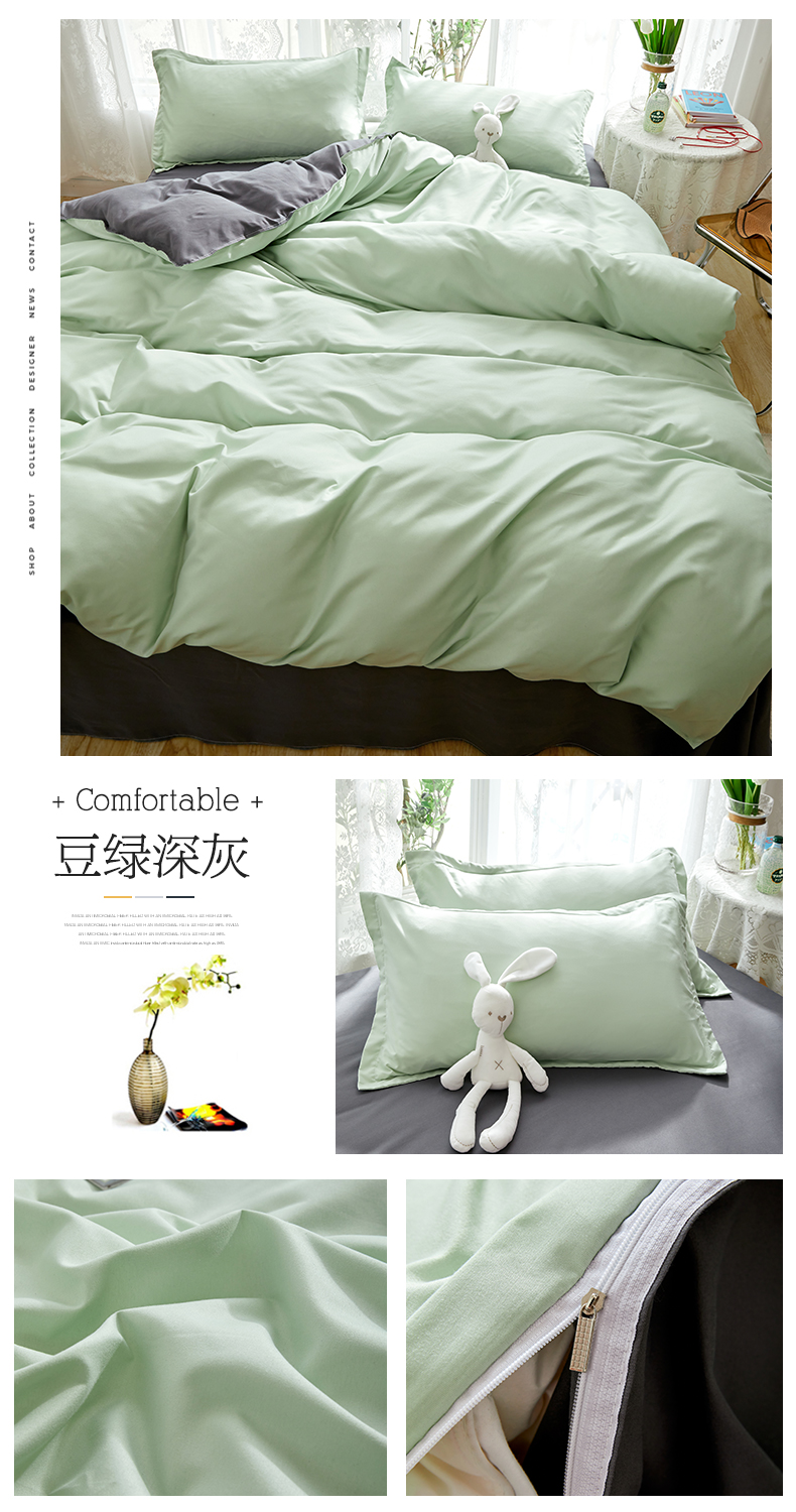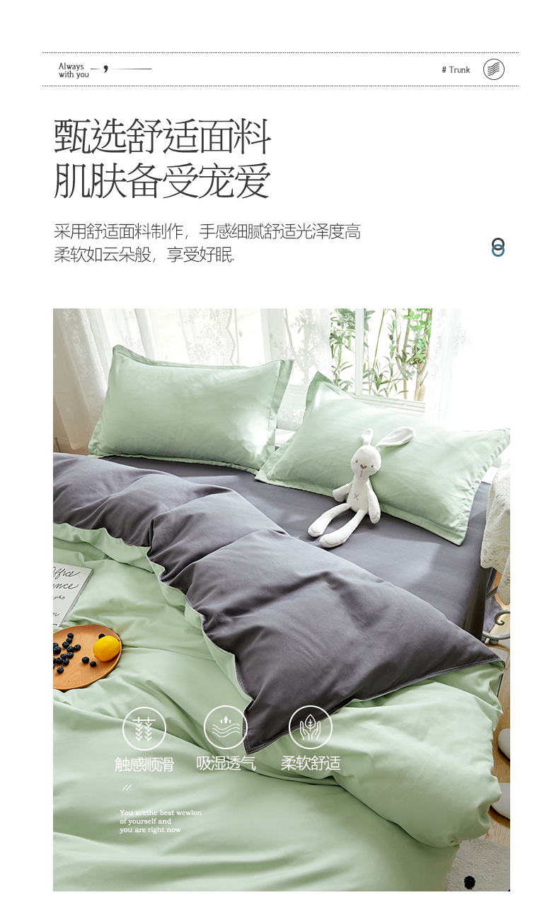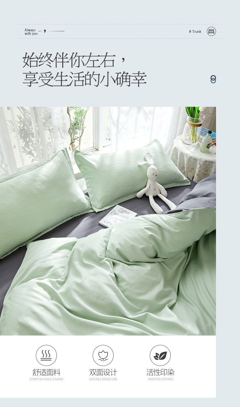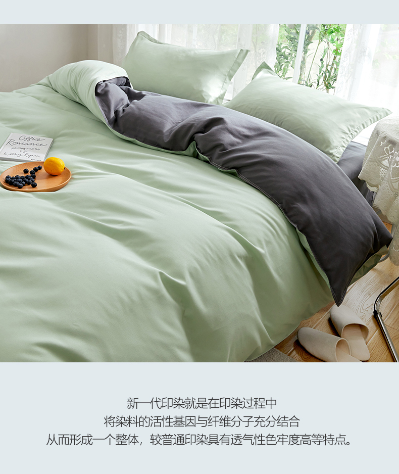 商品名称:悦织湾家纺 2025新款纯色床单款芦荟棉四件套 豆绿深灰