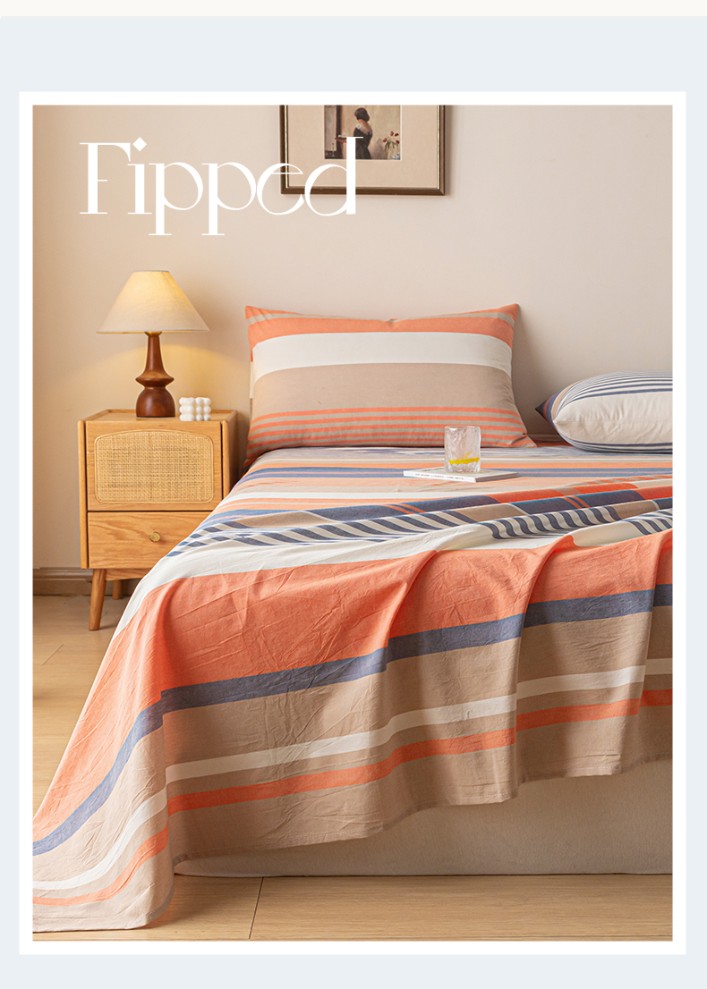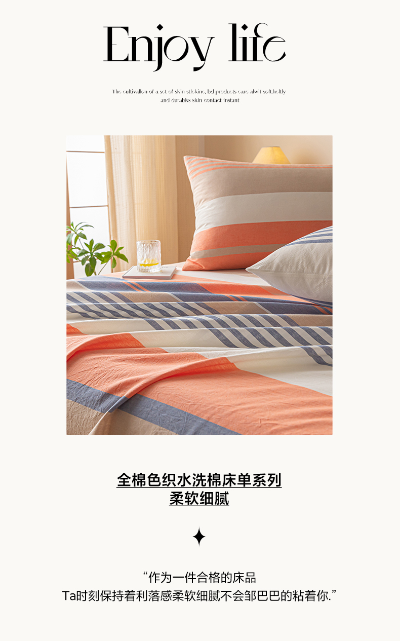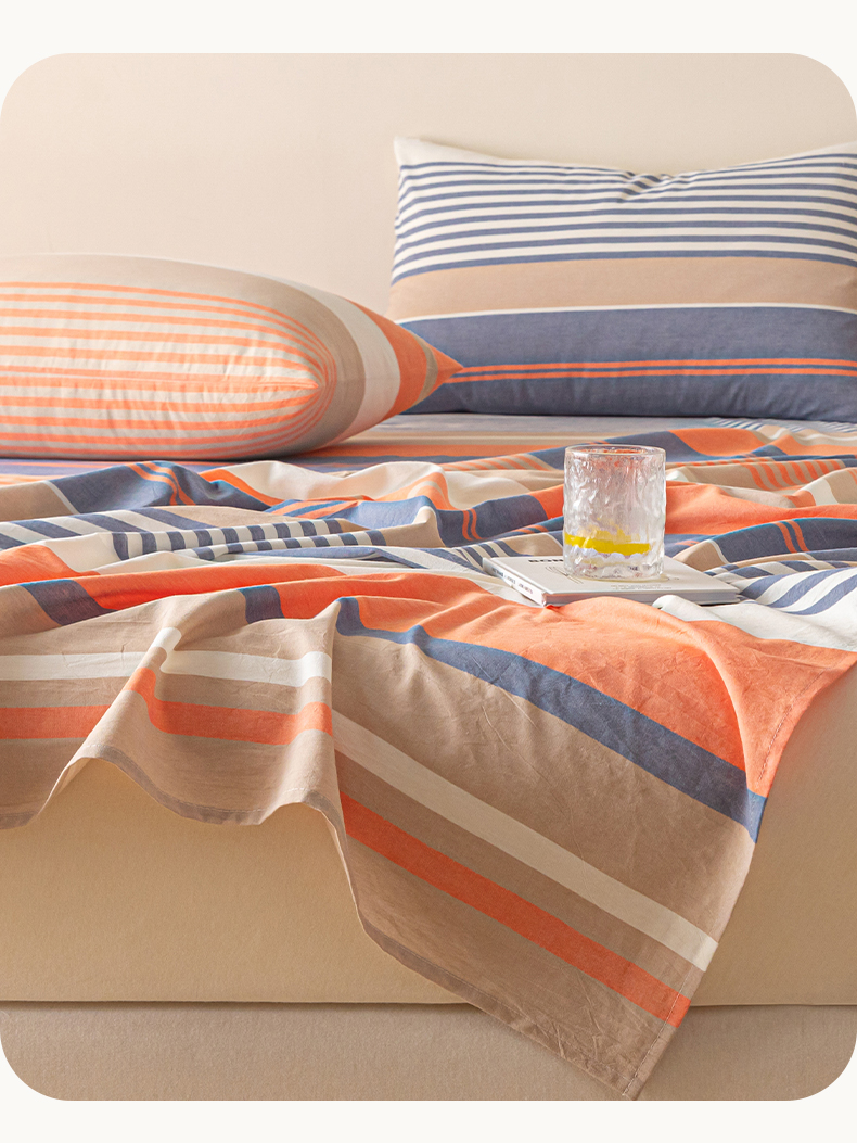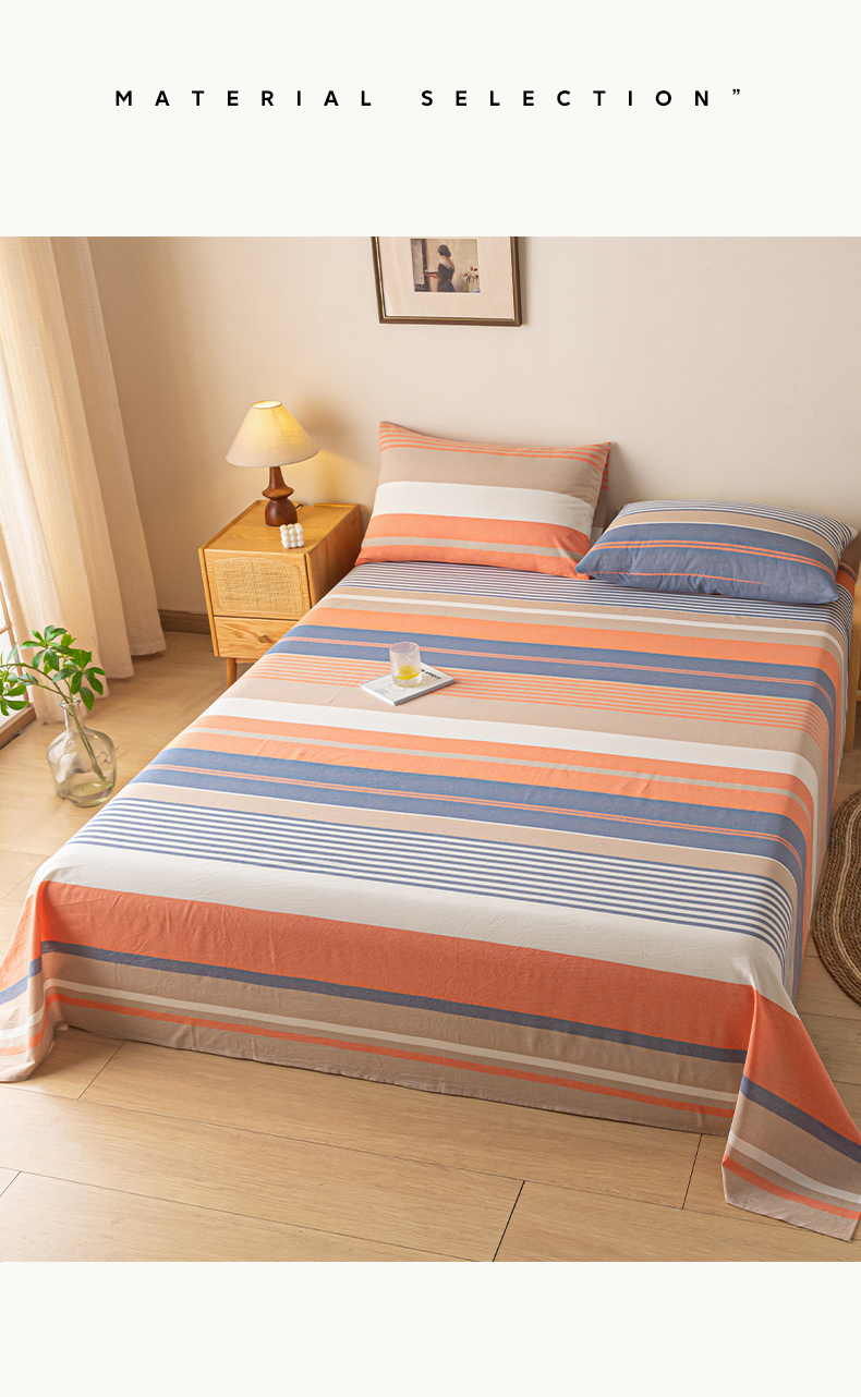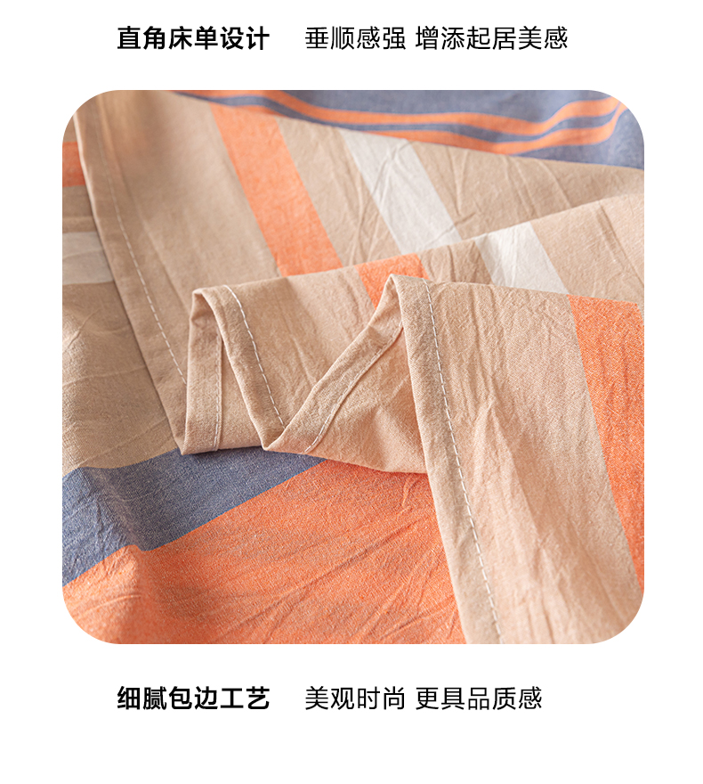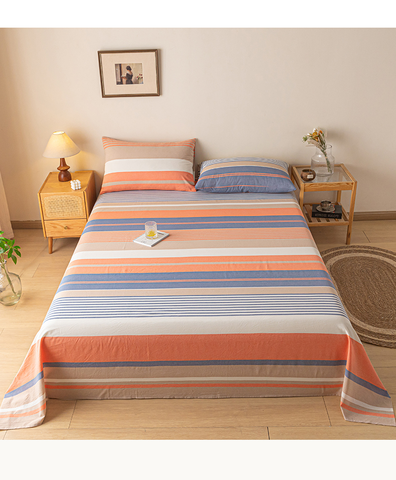 商品名称:卡伦家纺 2025新款全棉色织水洗棉床单学生宿舍单人双人床单系列橘兰咖条