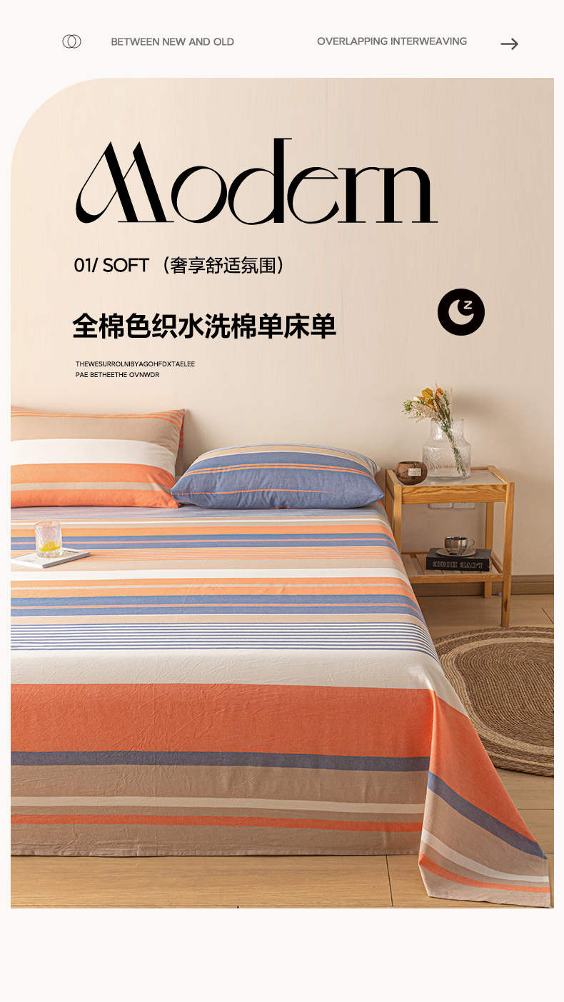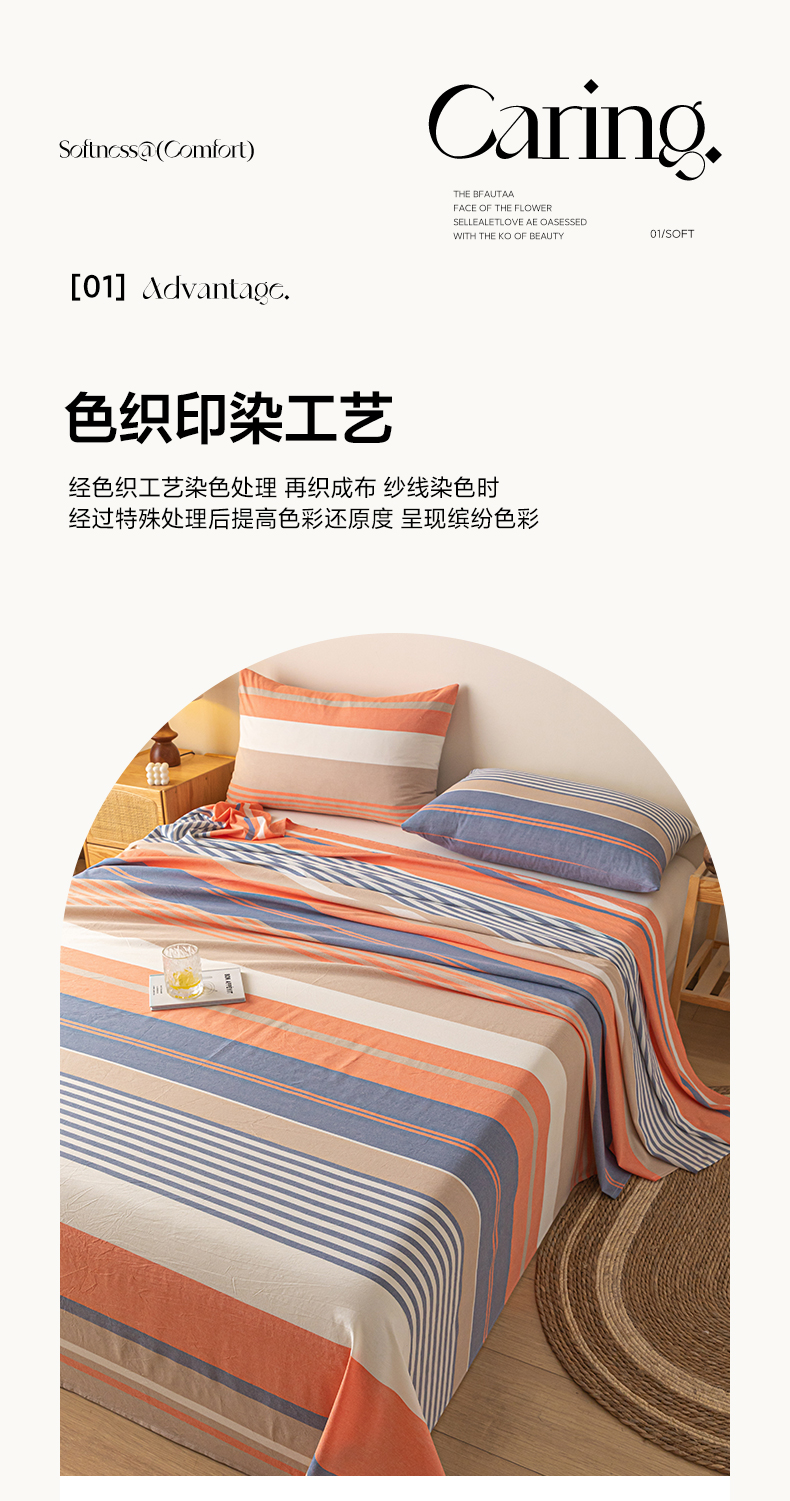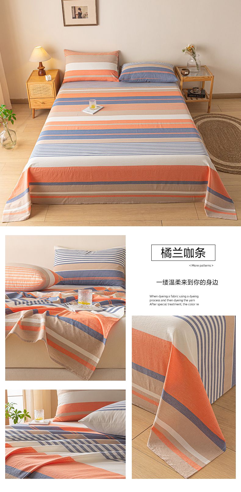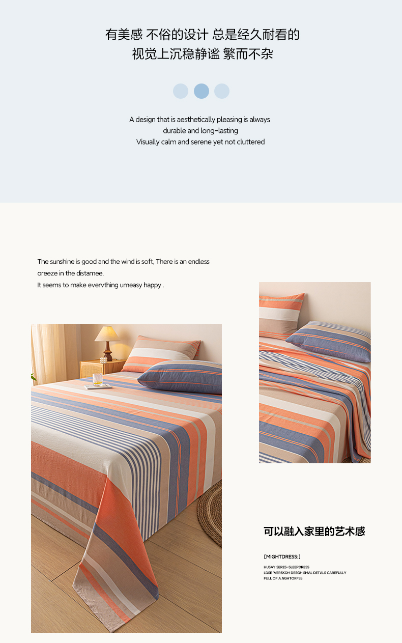 商品名称:卡伦家纺 2025新款全棉色织水洗棉床单学生宿舍单人双人床单系列橘兰咖条