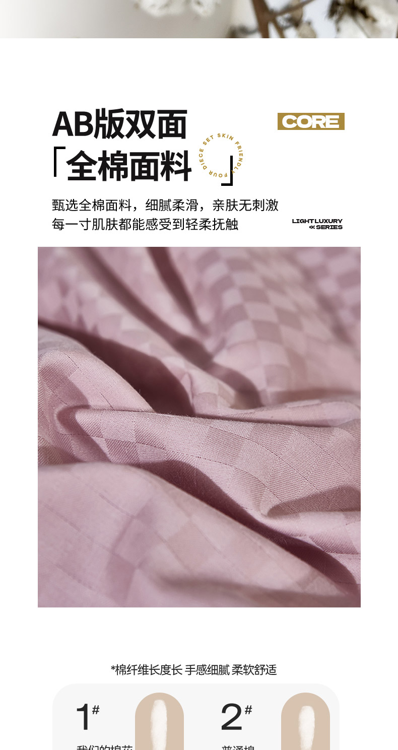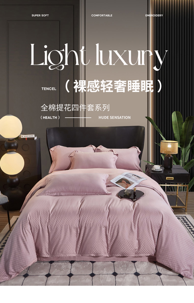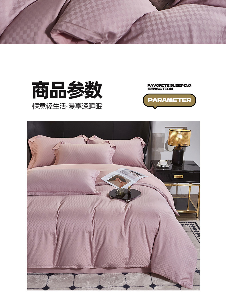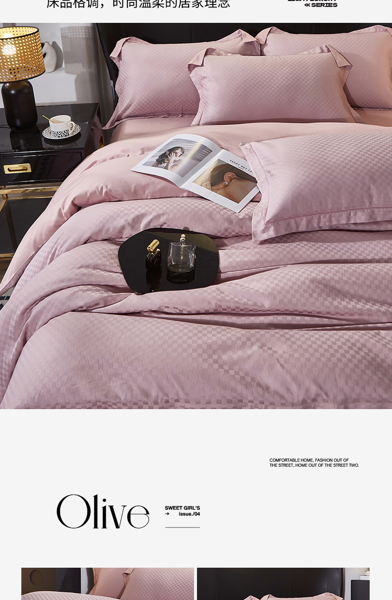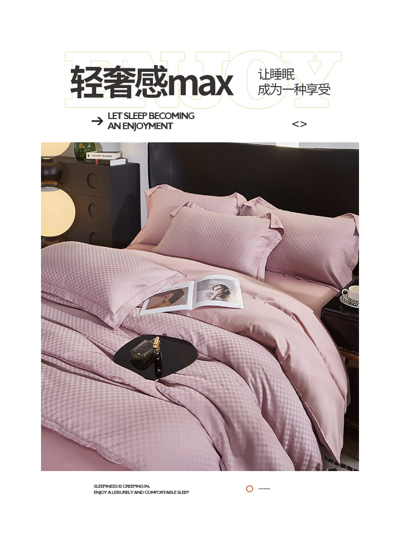 商品名称:雲归梦 2024新款全棉提花活性高支密轻奢四件套 阳阳格-烟紫