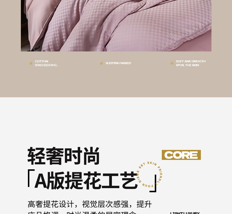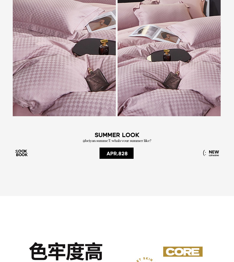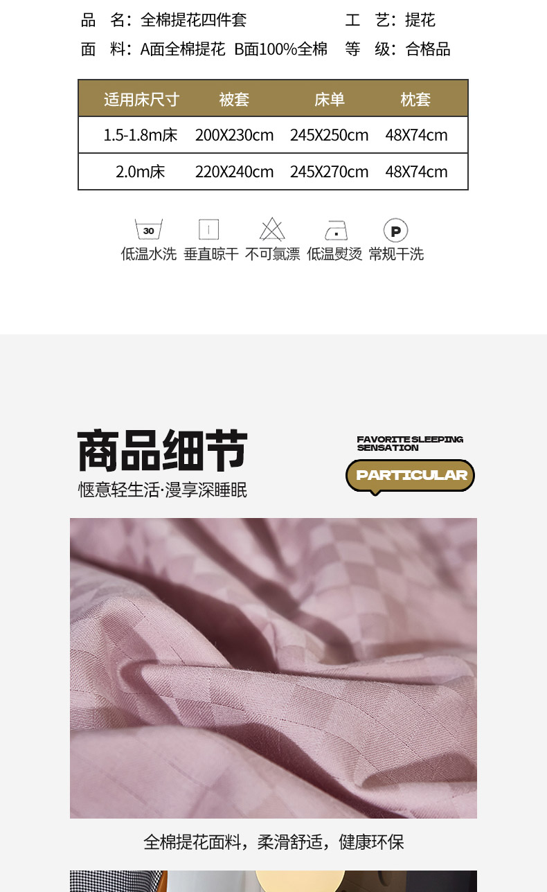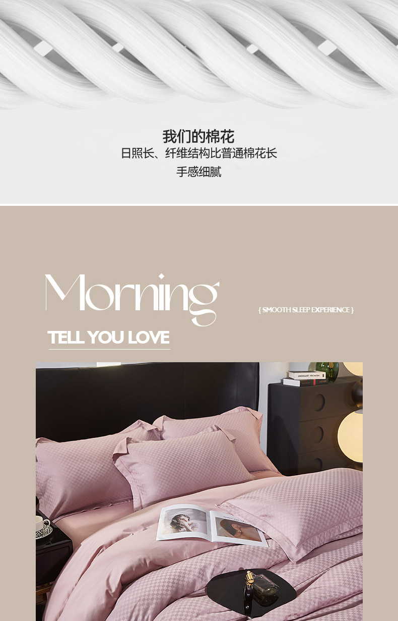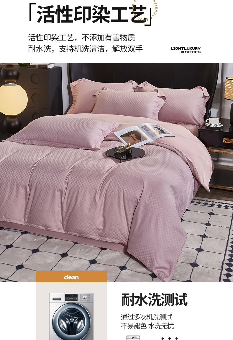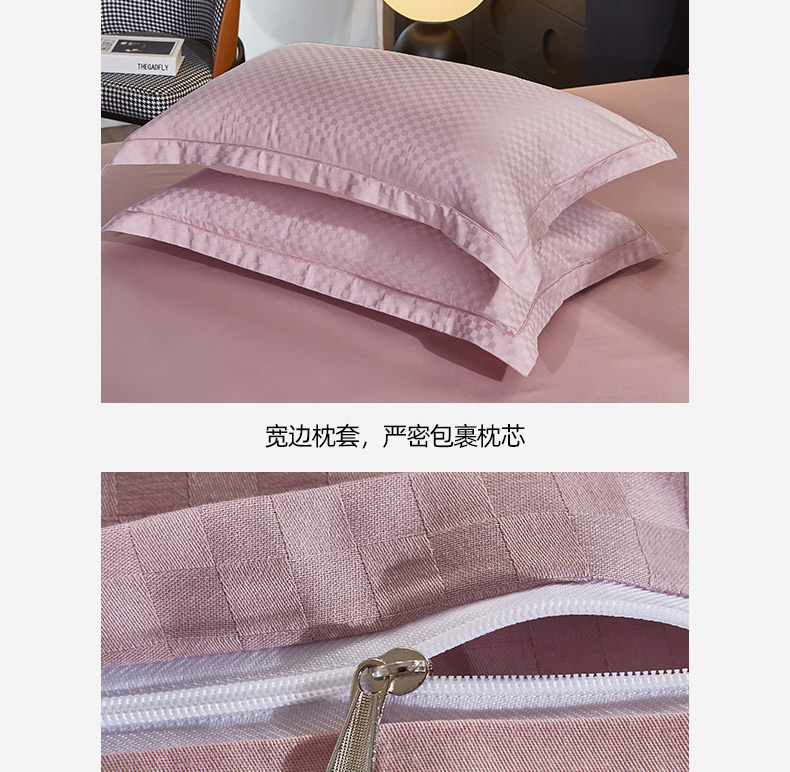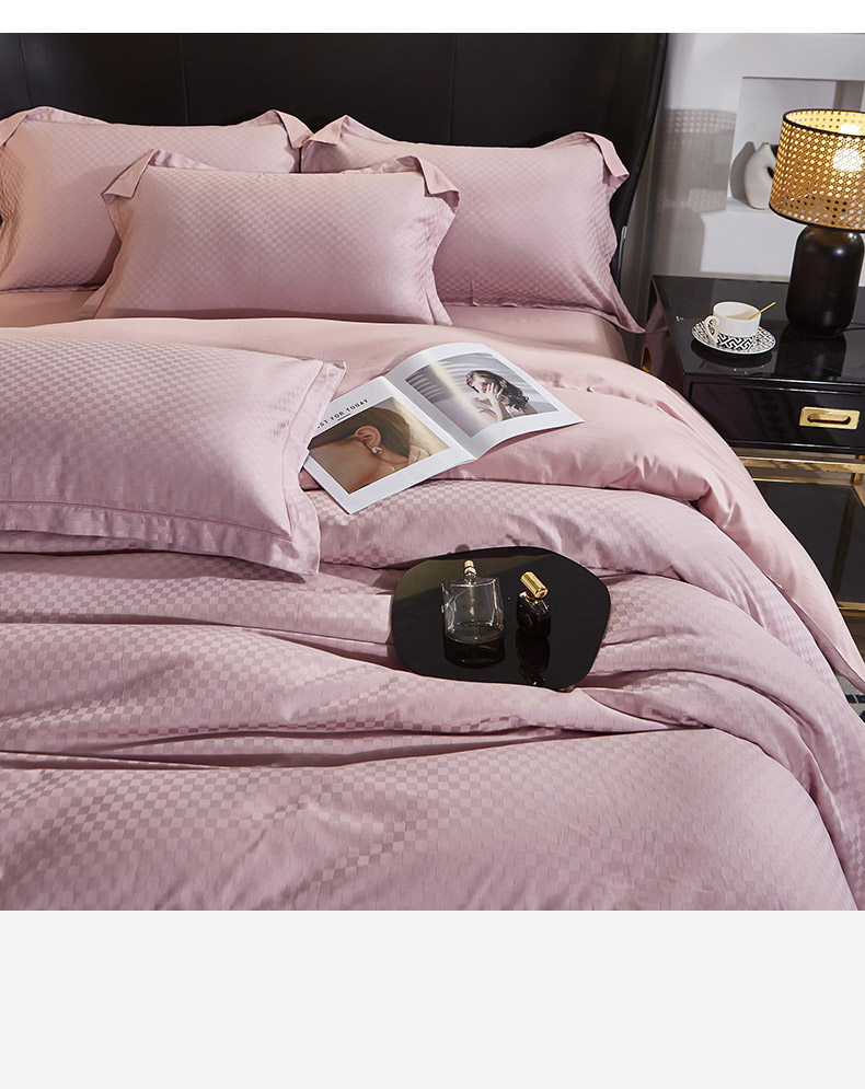 商品名称:雲归梦 2024新款全棉提花活性高支密轻奢四件套 阳阳格-烟紫