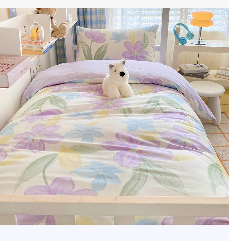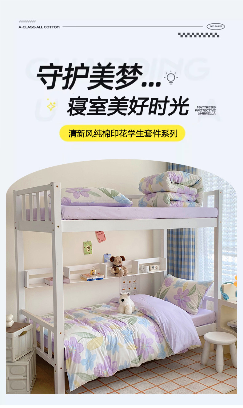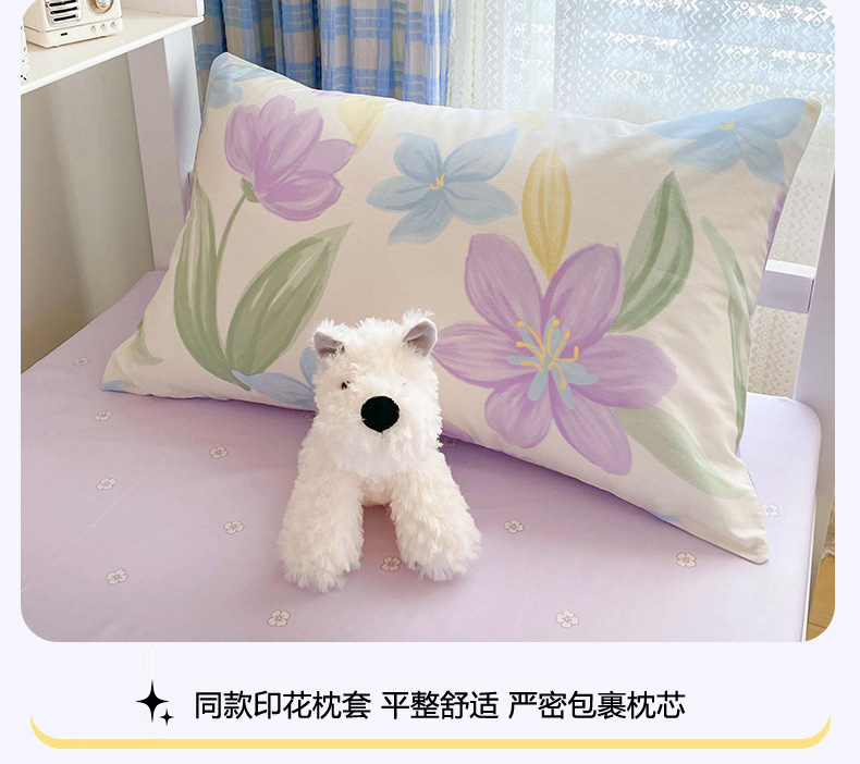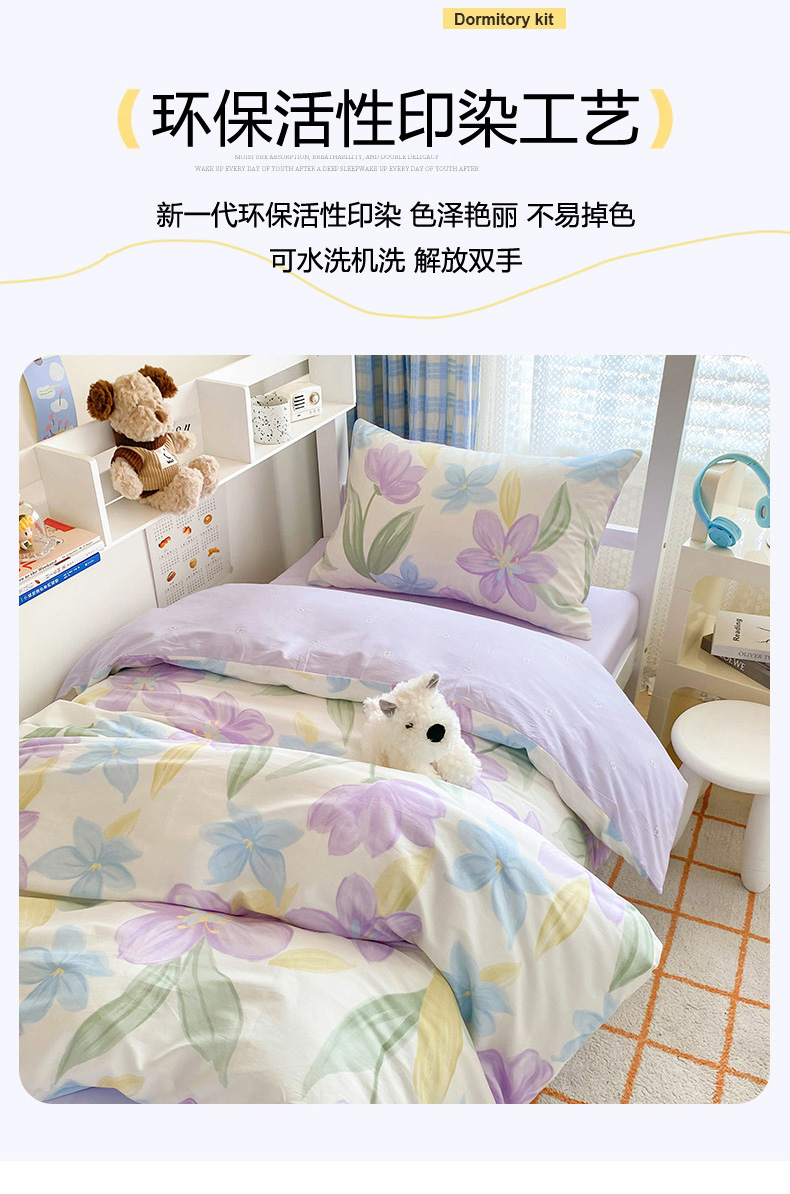 商品名称:倾慕家纺 2024新款清新风纯棉印花学生套件系列 花容