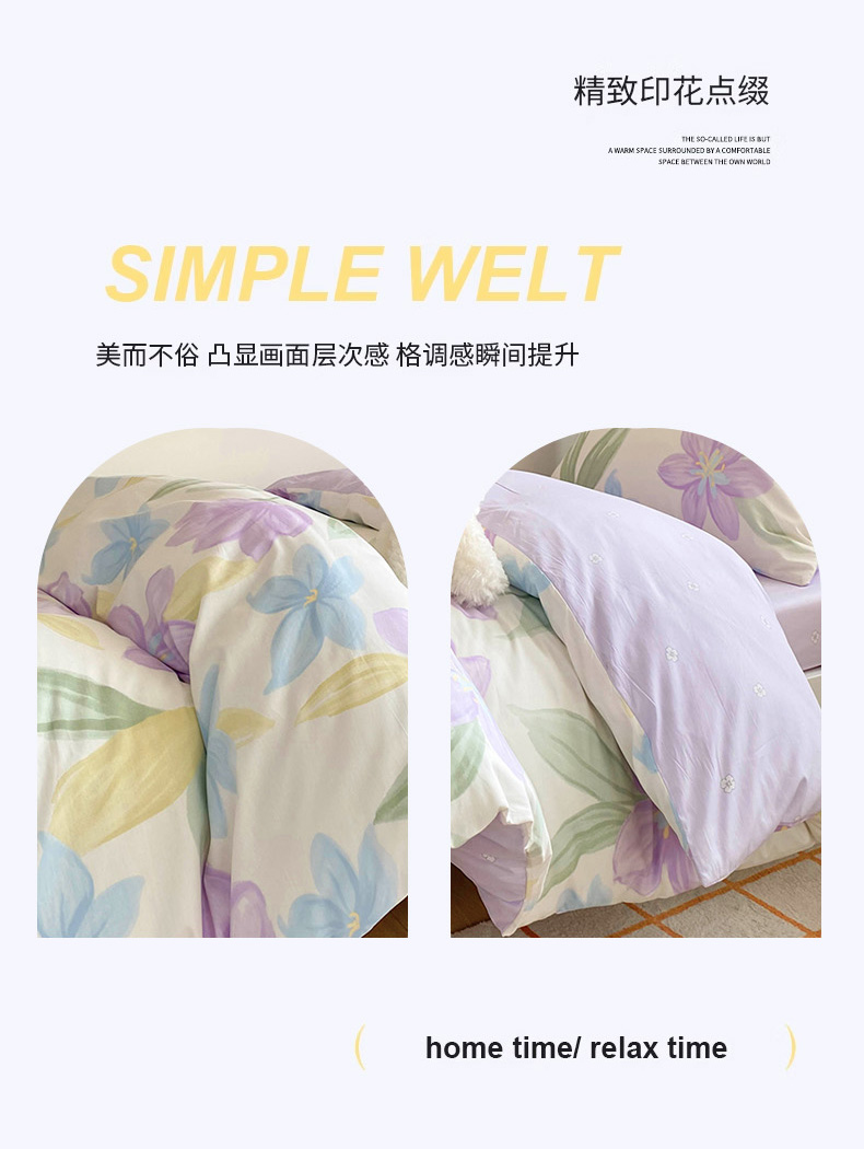 倾慕家纺 2024新款清新风纯棉印花学生套件系列 花容