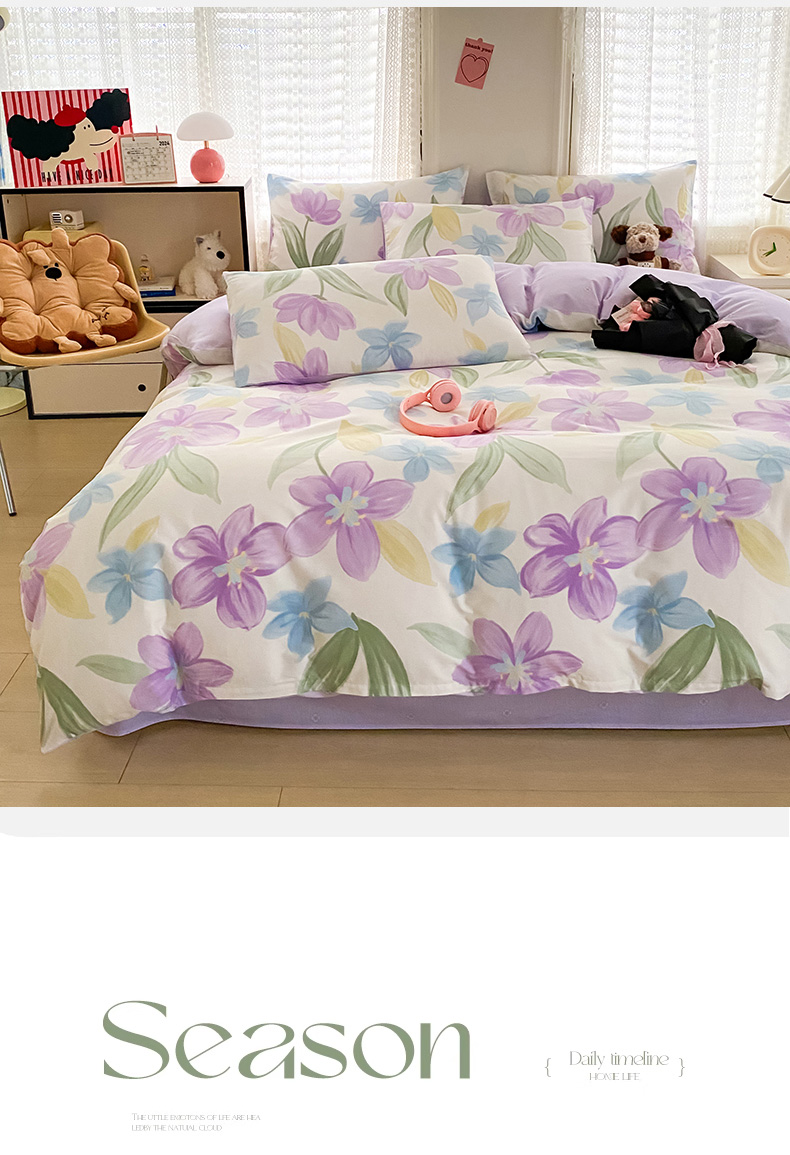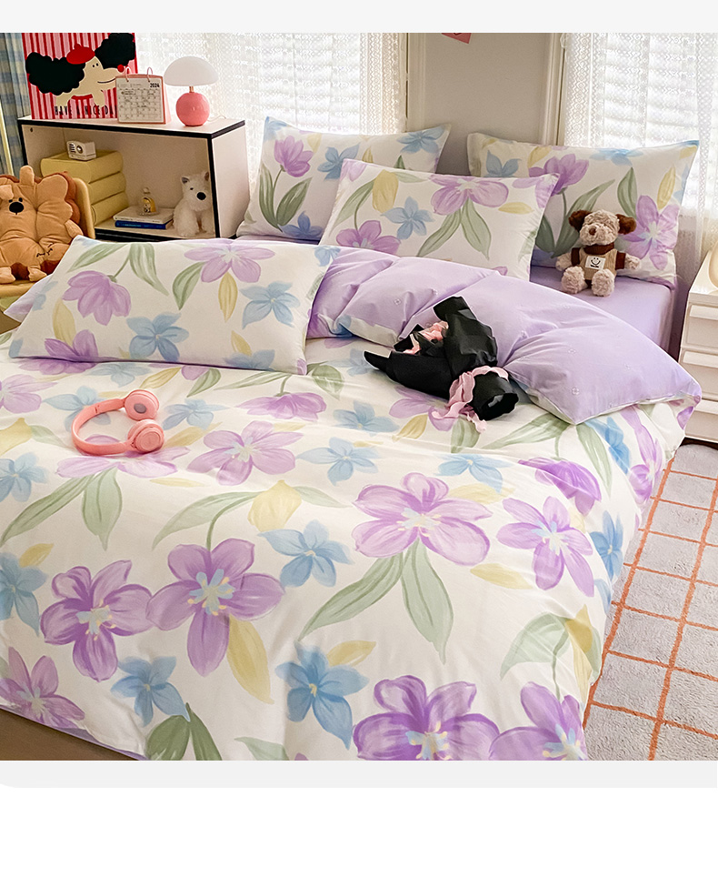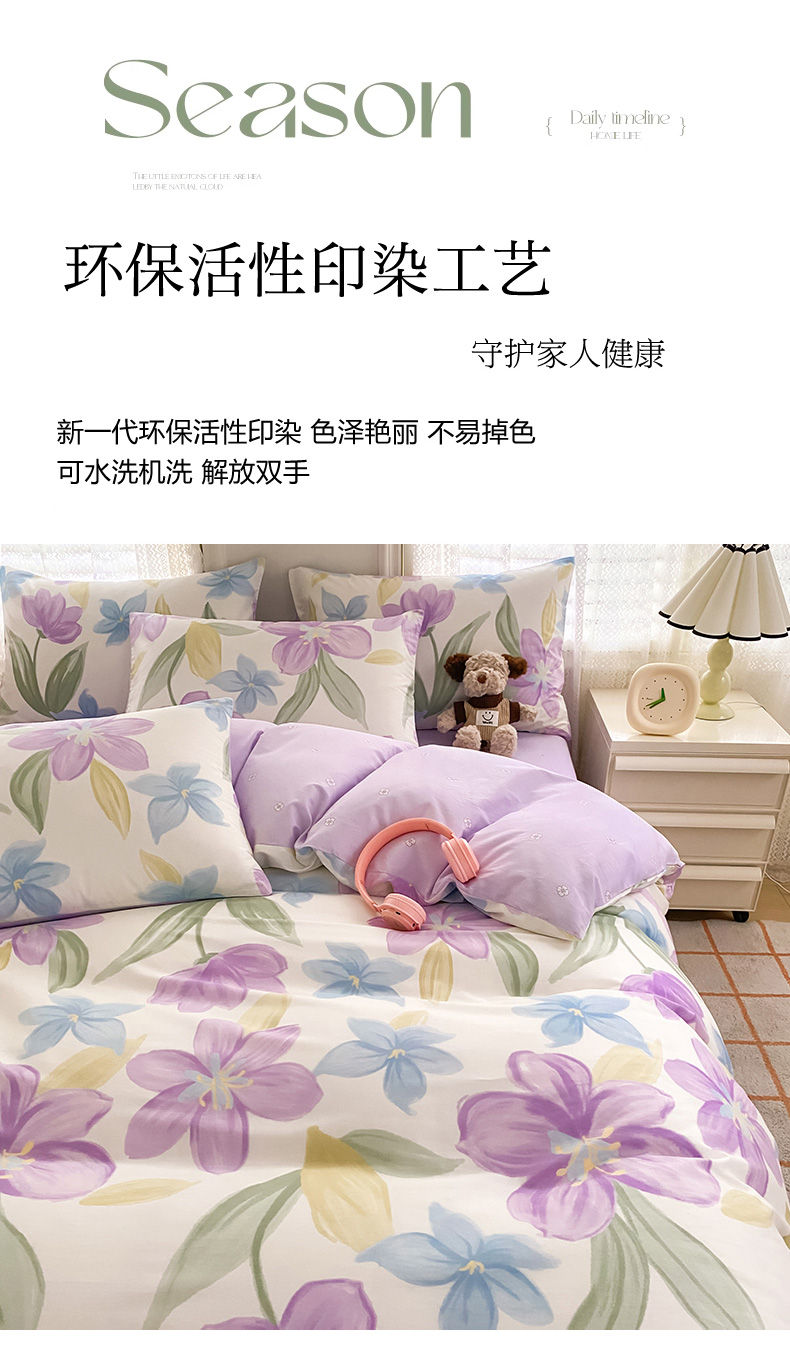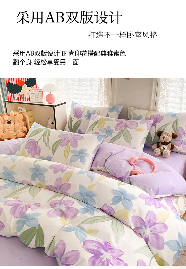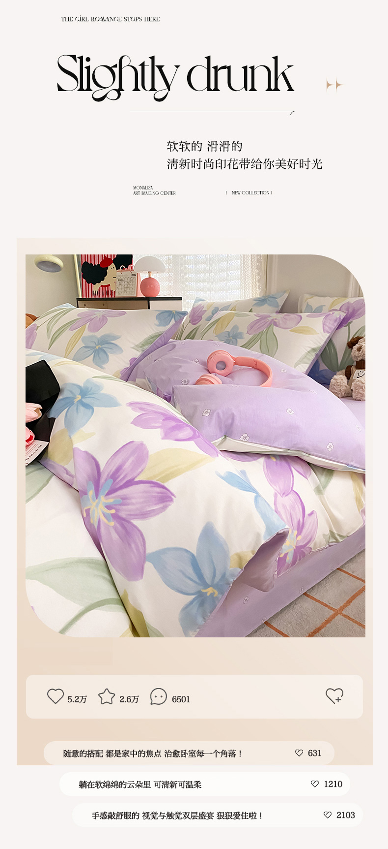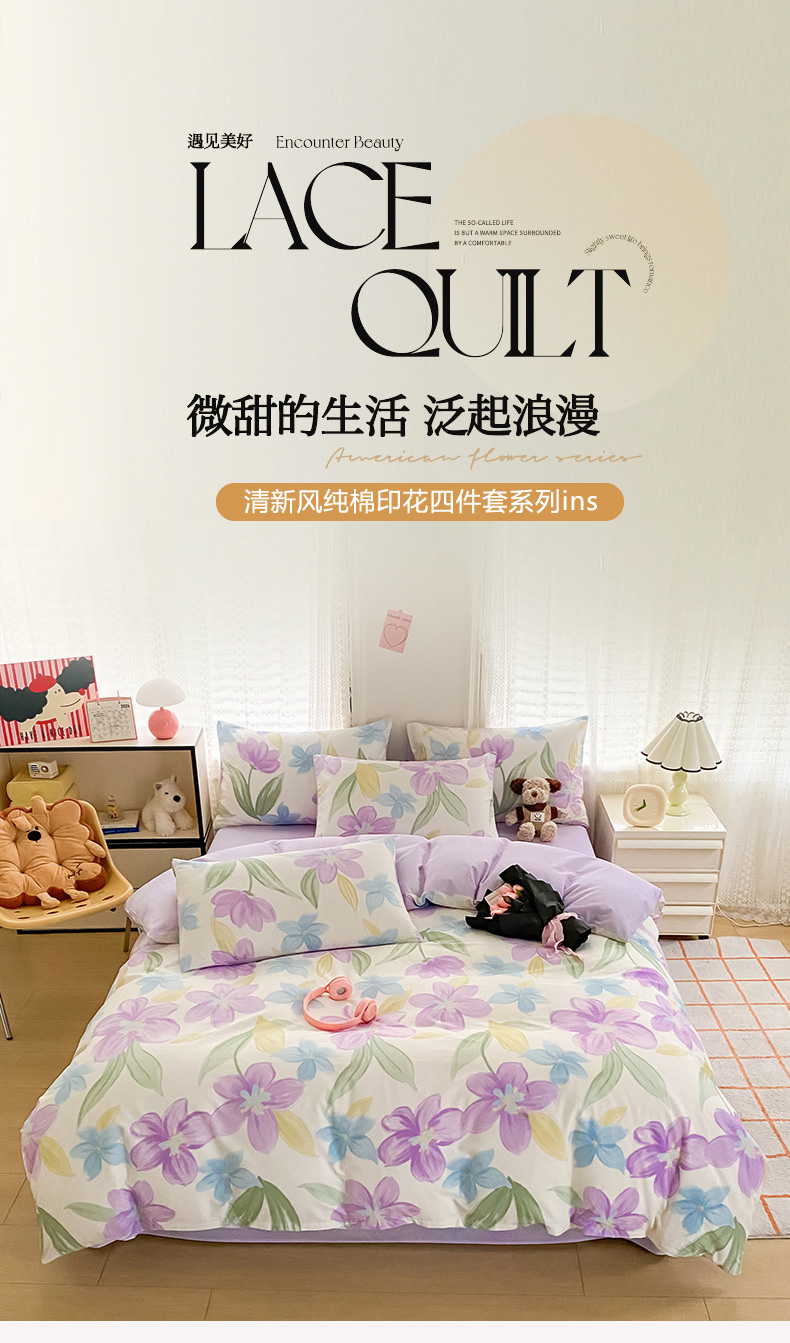倾慕家纺 2024新款ins清新风纯棉印花四件套系列 花容