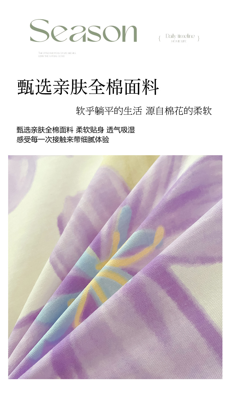 商品名称:倾慕家纺 2024新款ins清新风纯棉印花四件套系列 花容