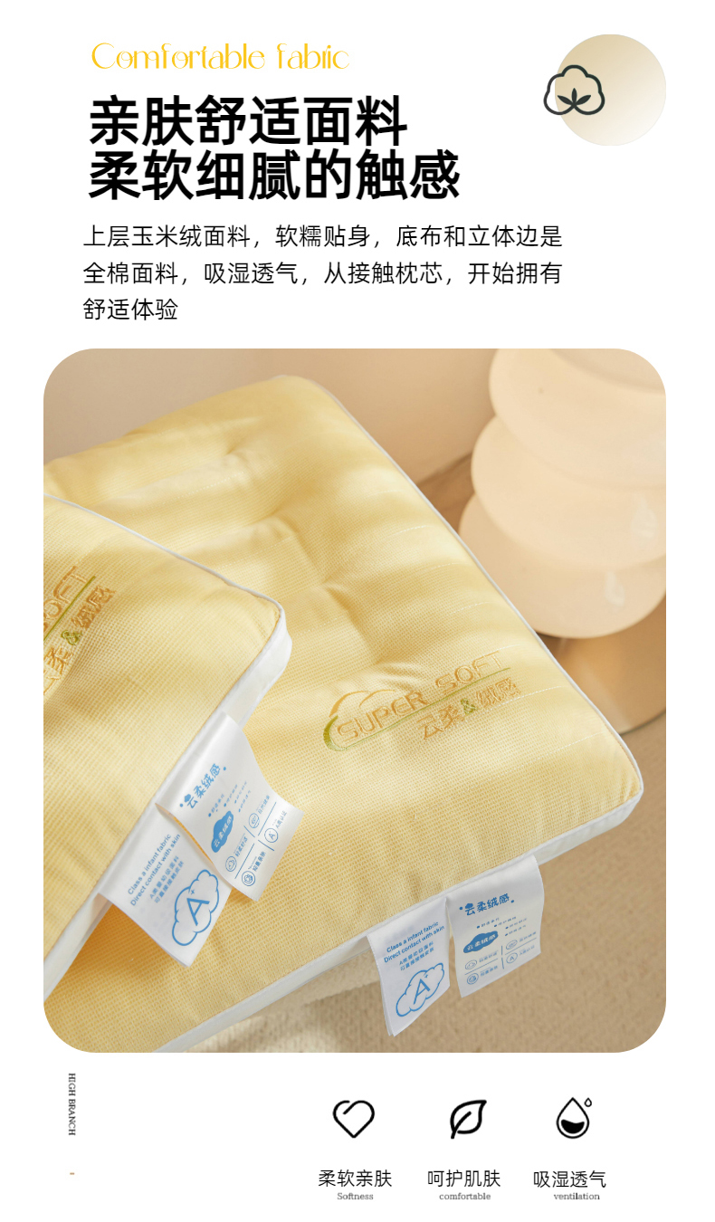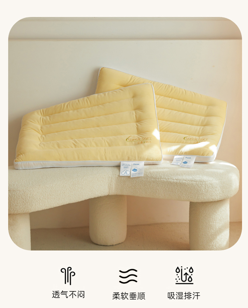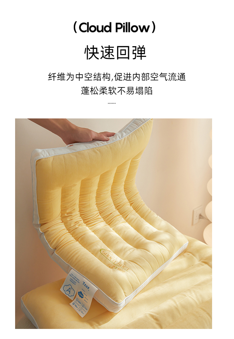 (总)皇冠之家枕芯 2025新款云柔绒感枕头枕芯,黄色,粉色,蓝色,灰色