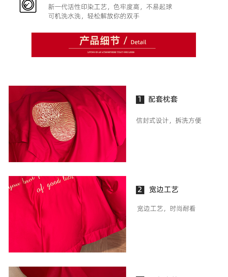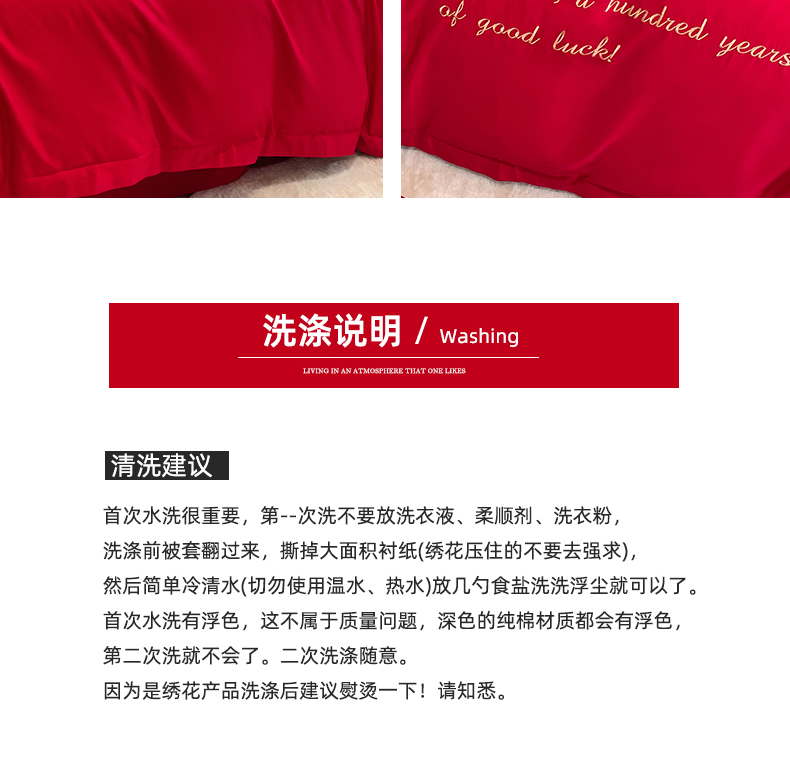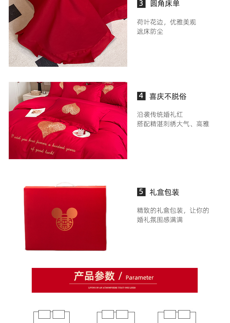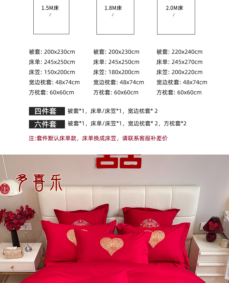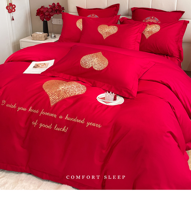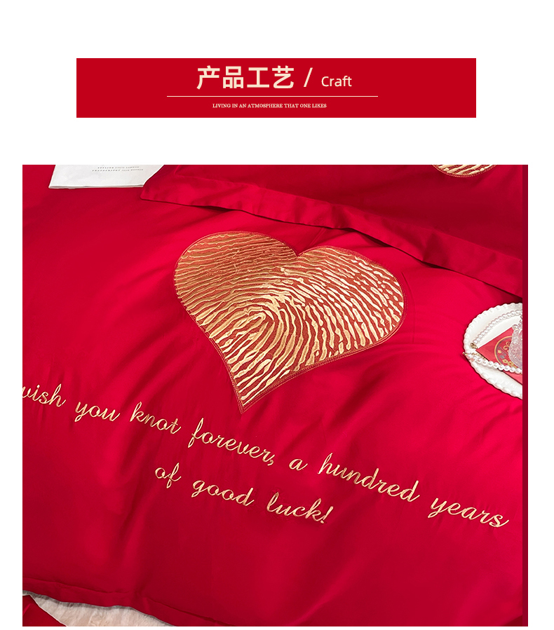 当前位置: 91家纺网 > 商品网购 > 床品套件 > 四件套 > 婚庆四件套 > 玉雅家纺 2025新款100支长绒棉高档提花刺绣婚庆四件套 心喜