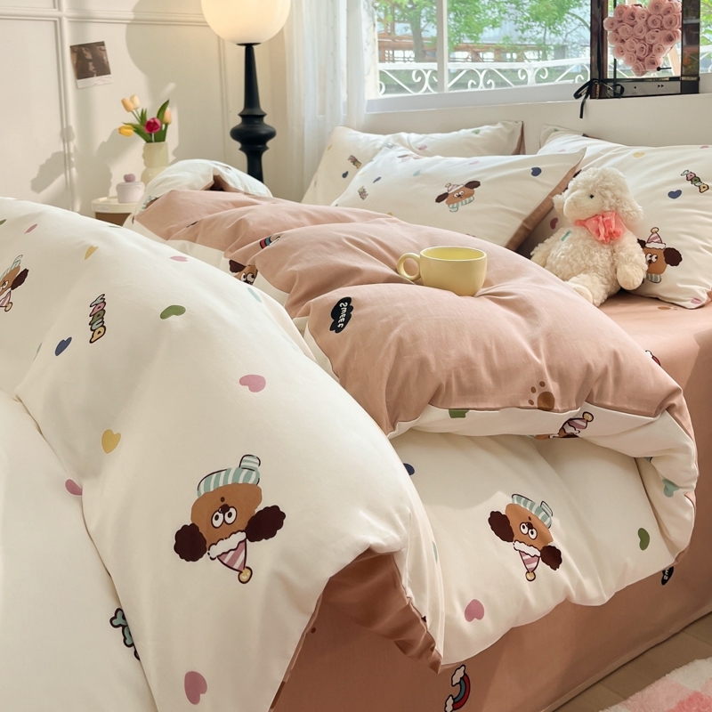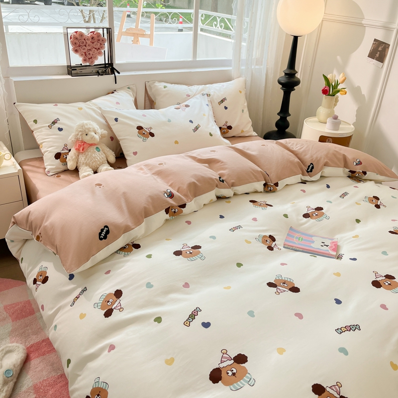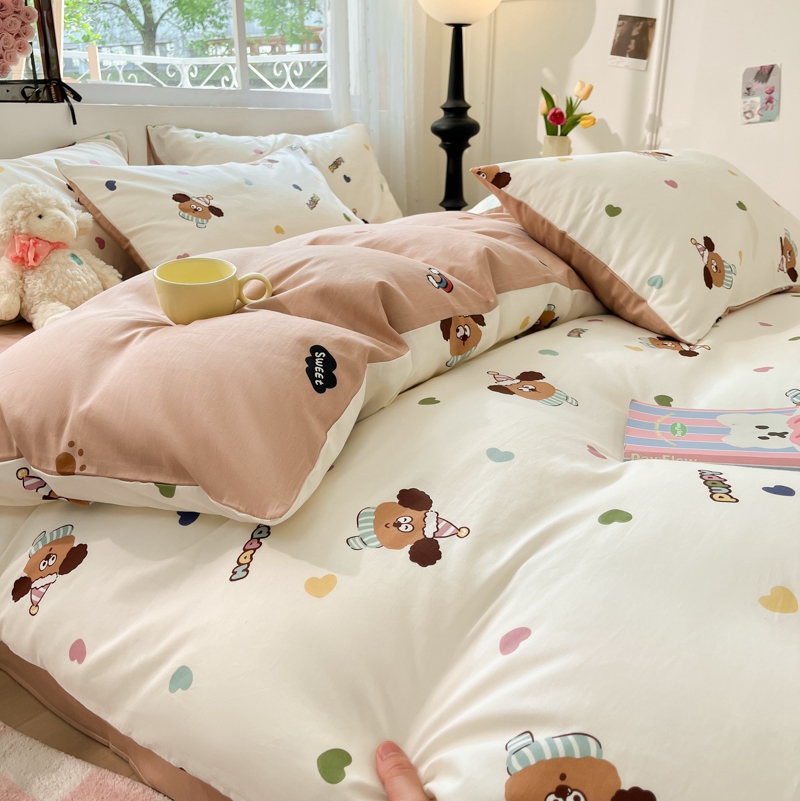 当前位置: 91家纺网 > 商品网购 > 床品套件 > 四件套 > 全棉普通四件套 > 慕尚家纺 2025新款全棉印花四件套 彩色爱心狗