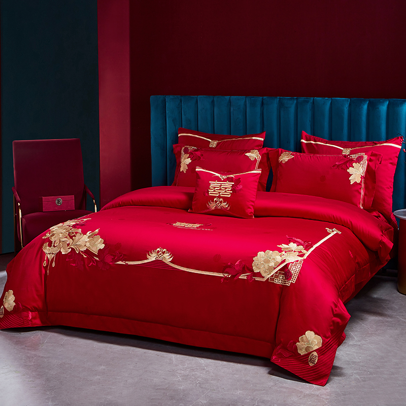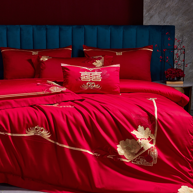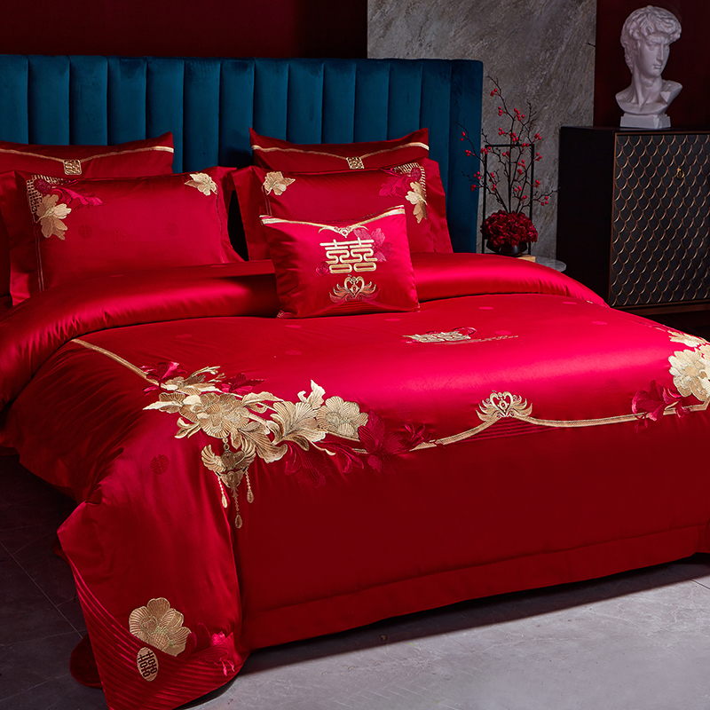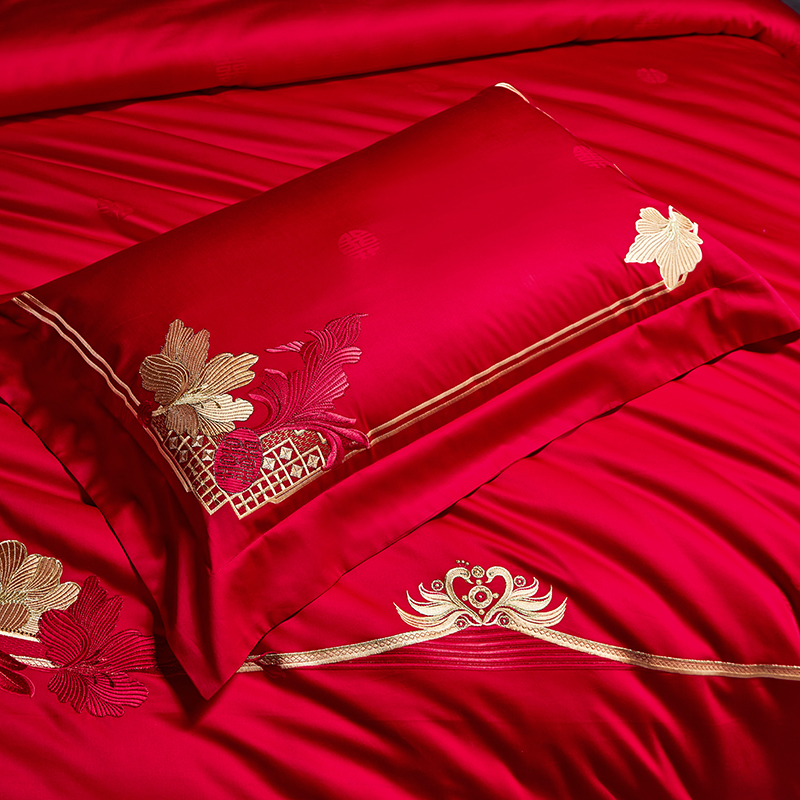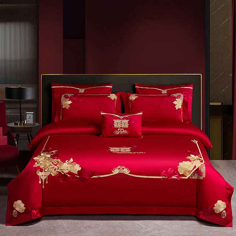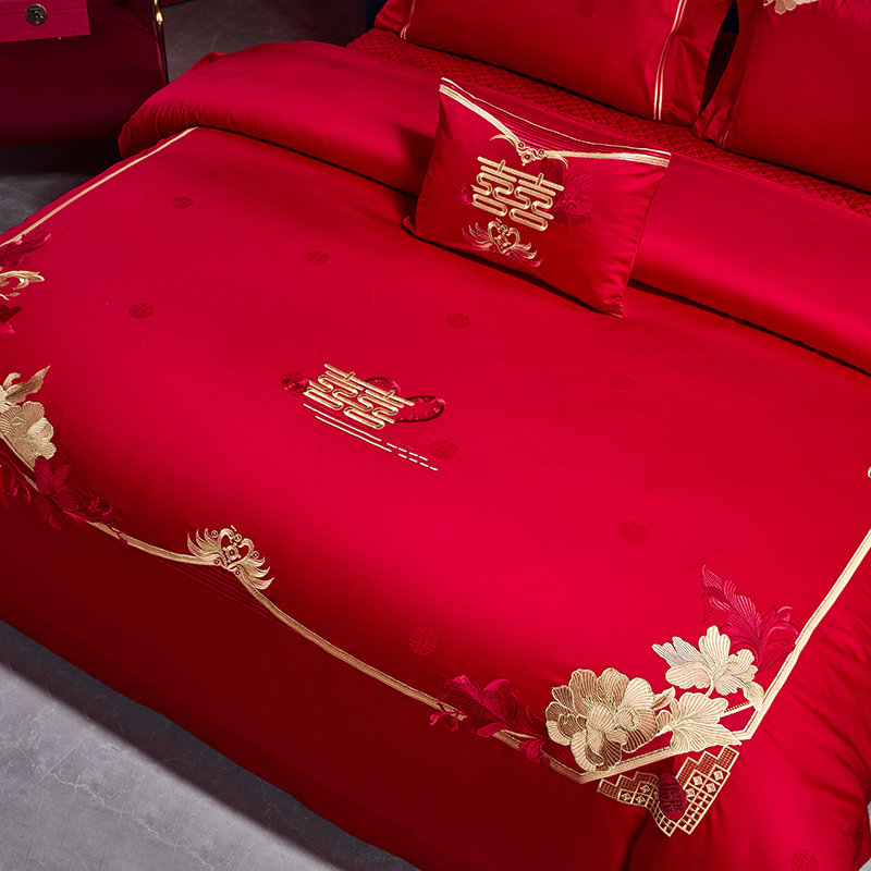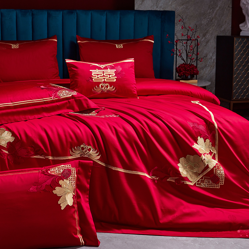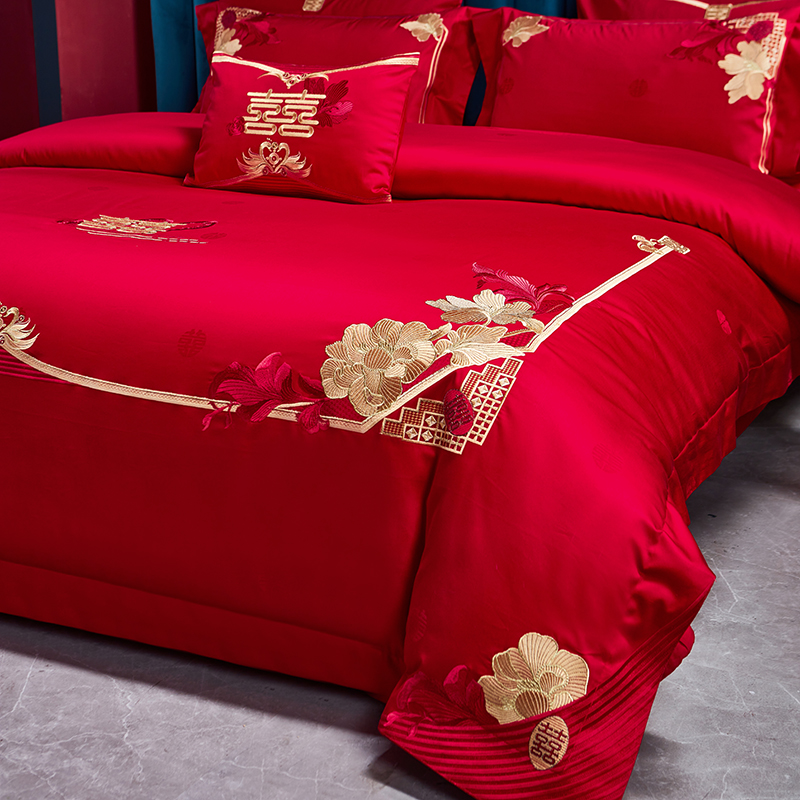 当前位置: 91家纺网 > 商品网购 > 床品套件 > 四件套 > 婚庆四件套 > 美娘阁 2025新款长绒棉贡缎提花款新中式古典韵味精美刺绣婚庆四件套多件套 繁花