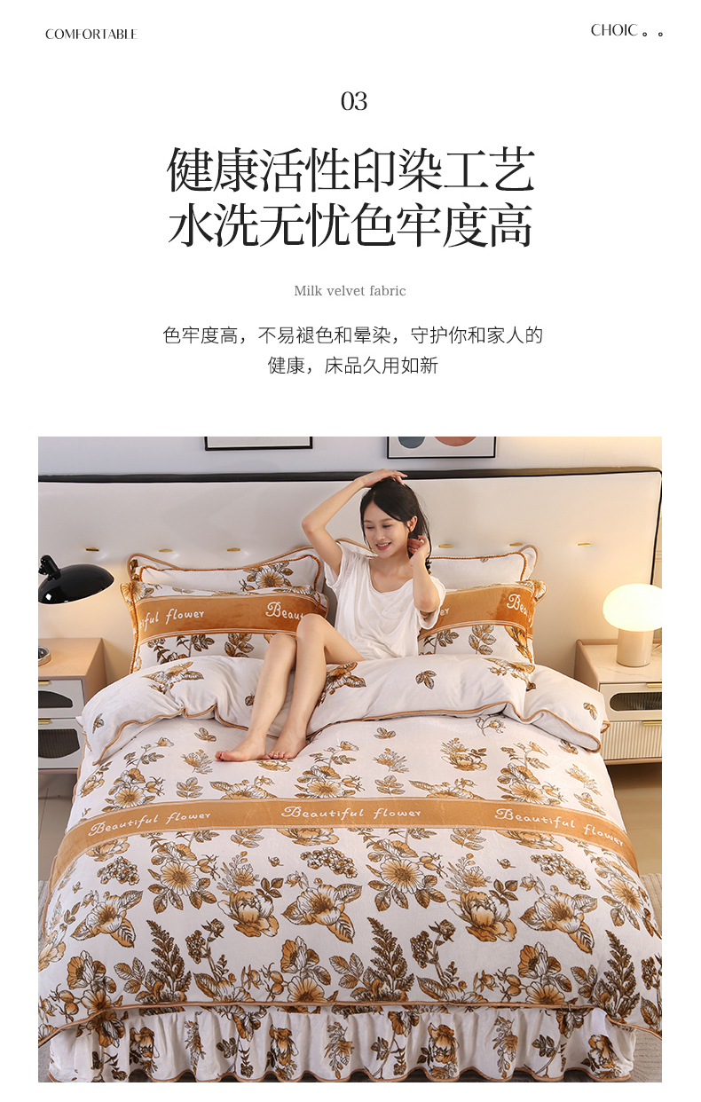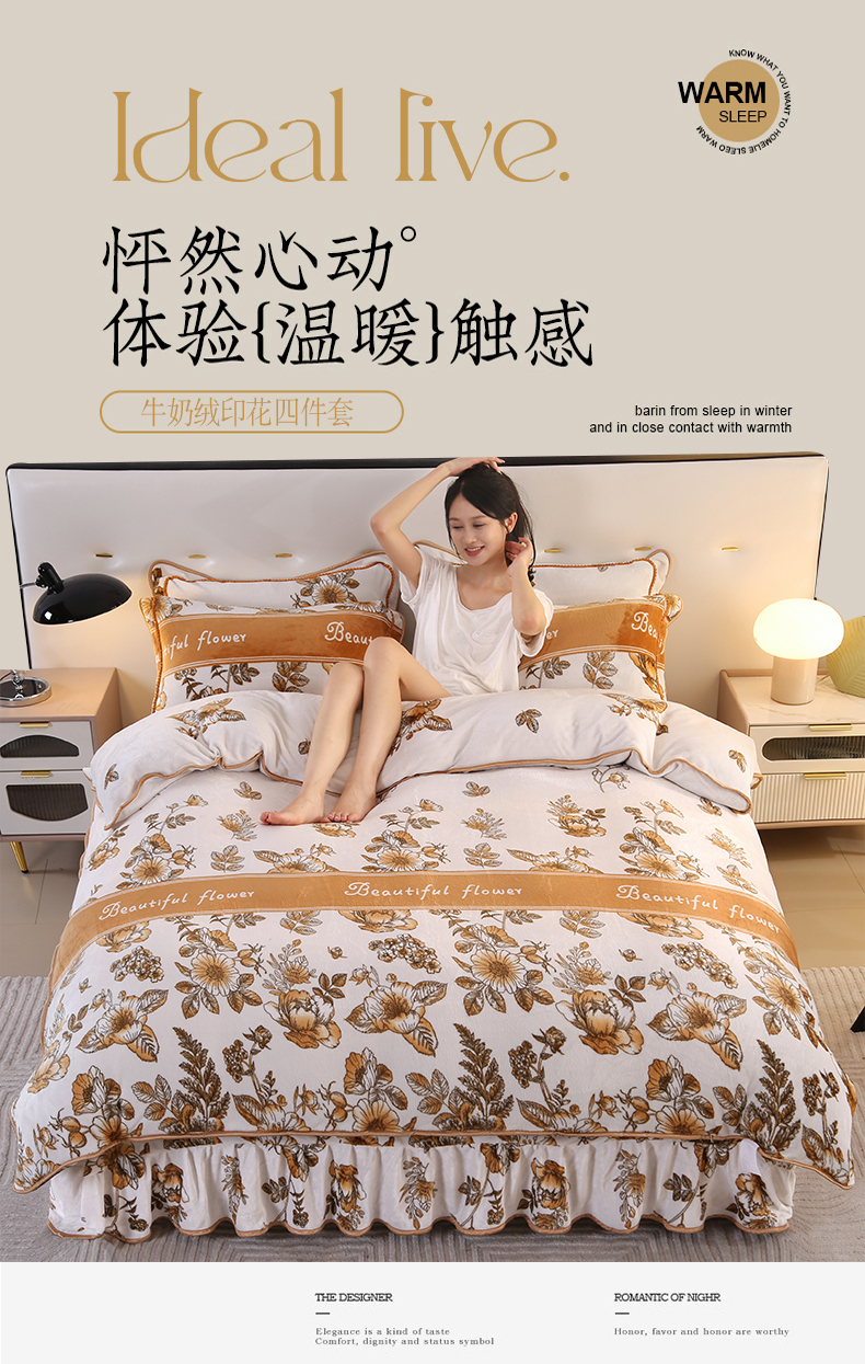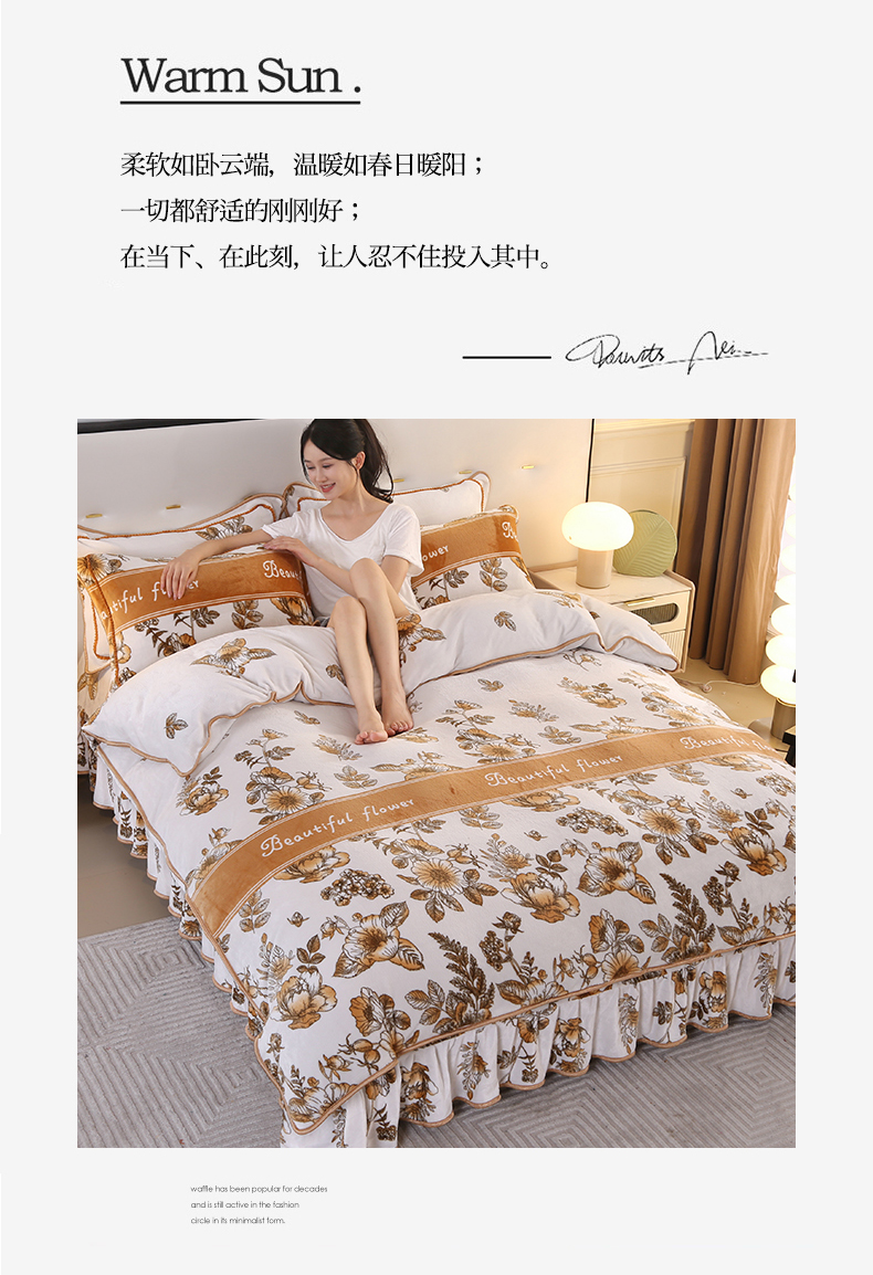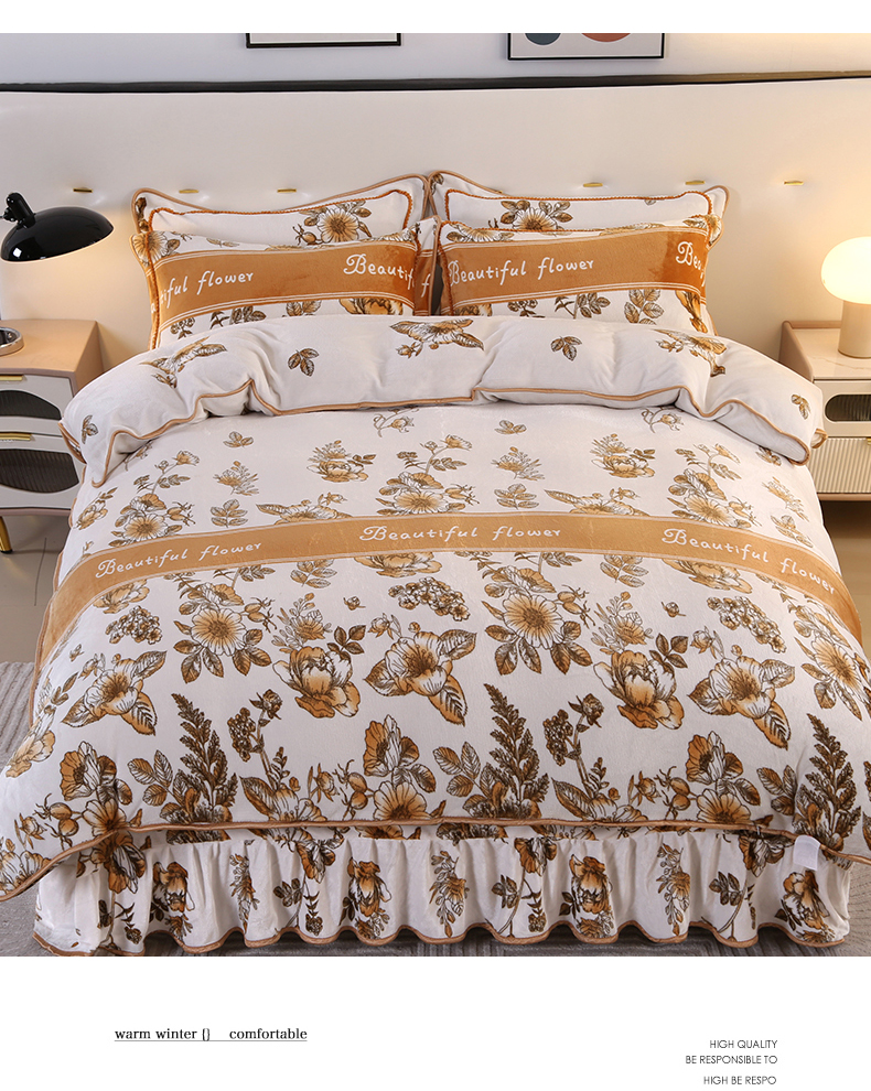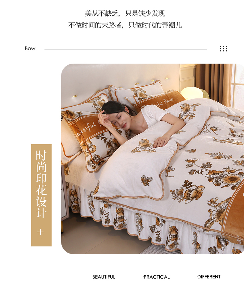 代芙家纺 7斤重牛奶绒金貂四件套抗静电法莱绒珊瑚绒床裙 花期