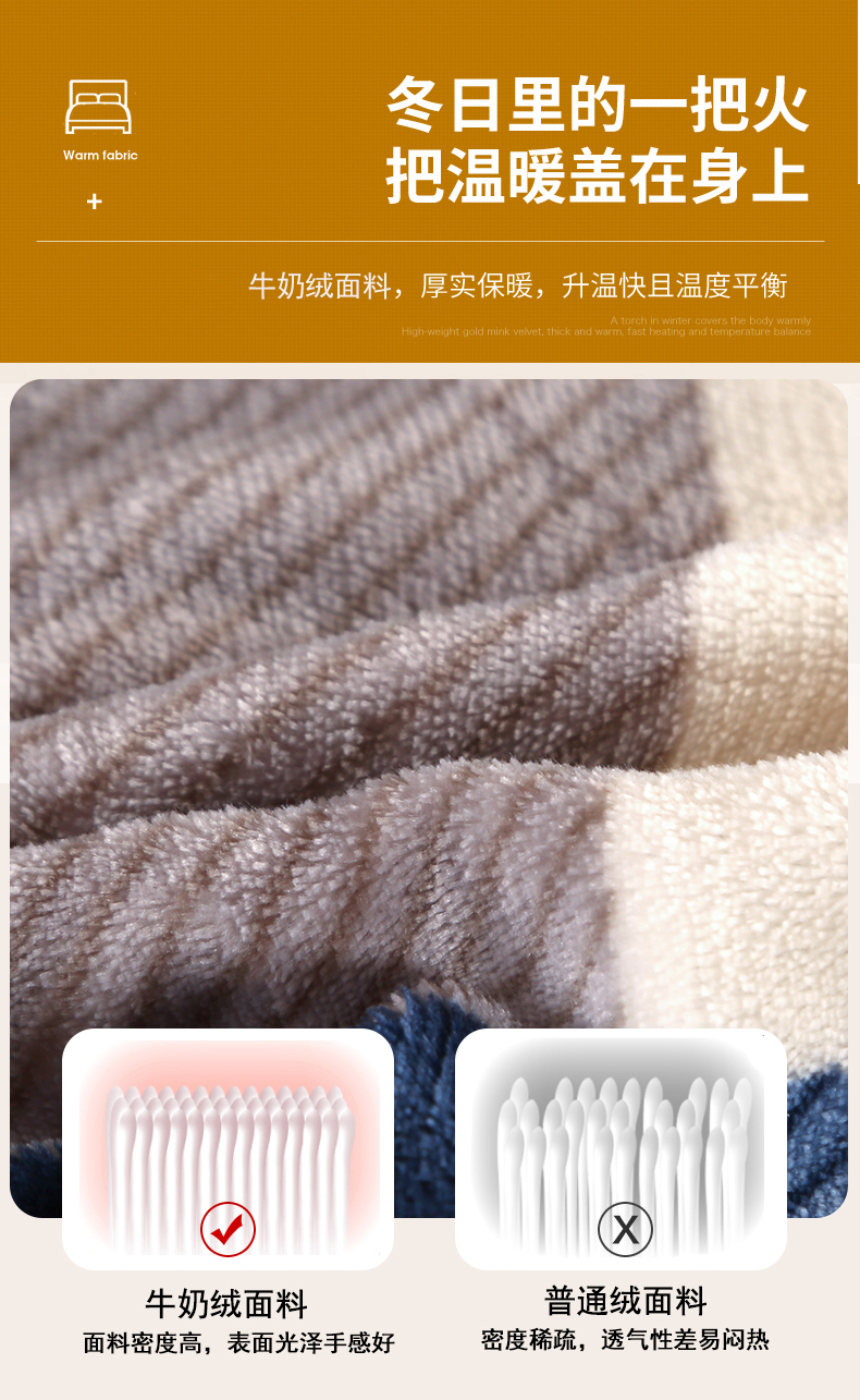 代芙家纺 7斤重牛奶绒金貂四件套抗静电法莱绒珊瑚绒床裙 蓝大格