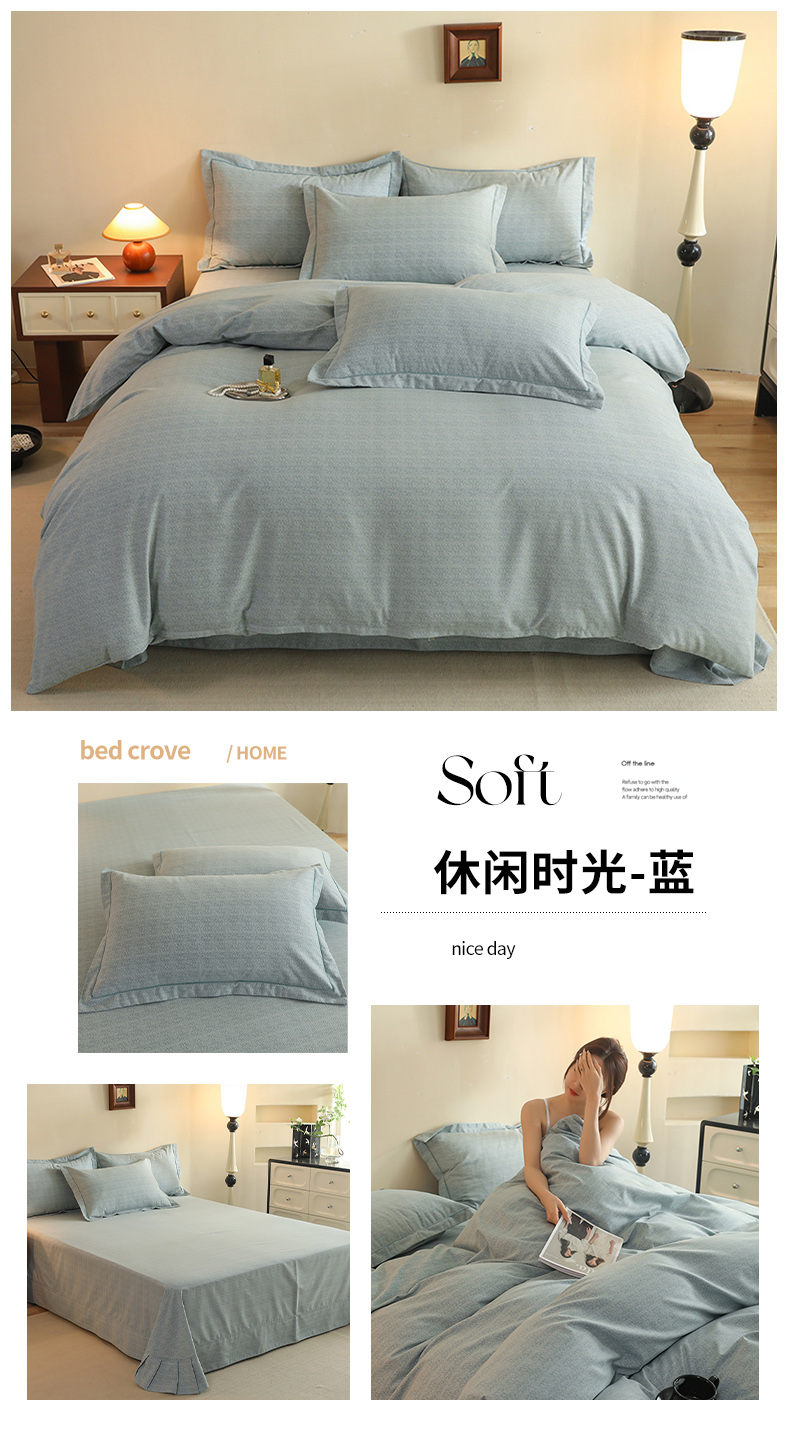 当前位置: 91家纺网 > 商品网购 > 床品套件 > 四件套 > 磨毛活性四件套 > 巧玲珑 2024新款新疆棉亲肤四件套 休闲时光-蓝