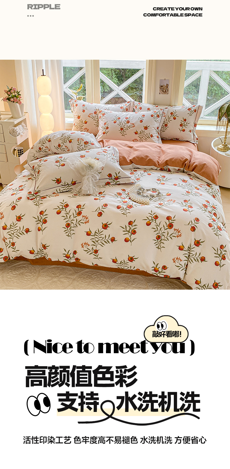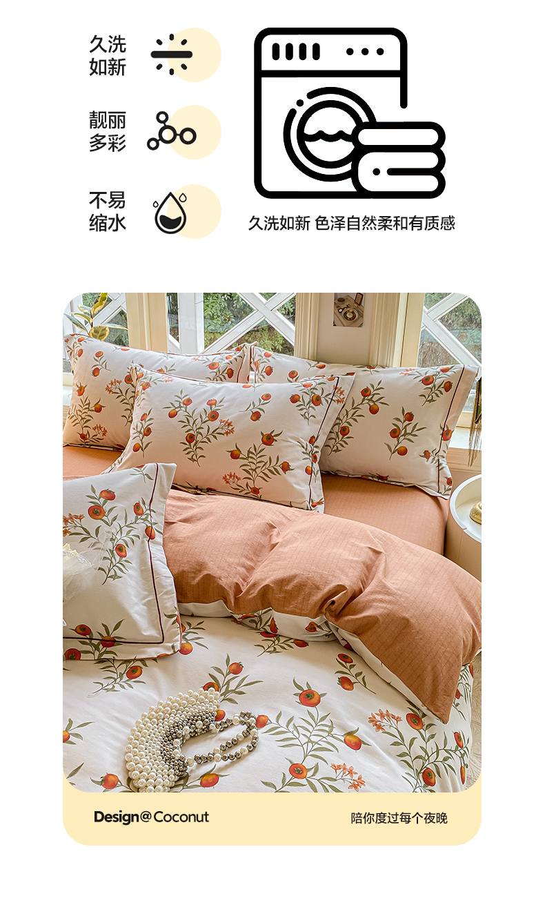 商品名称:宜家坊 2024全棉ins风小清新加厚磨毛【提供质检报告】 好柿连连