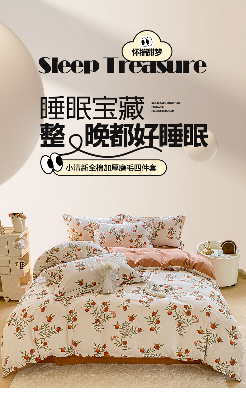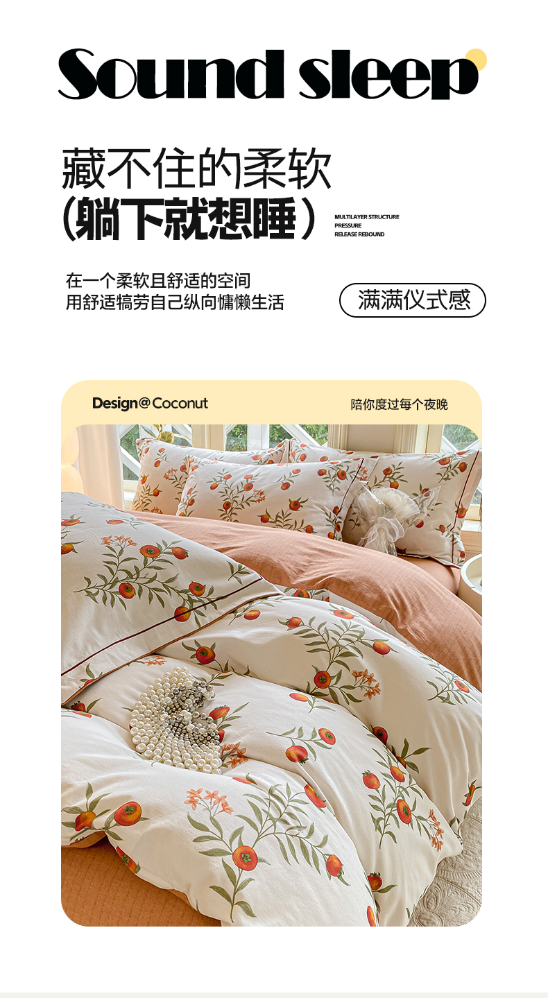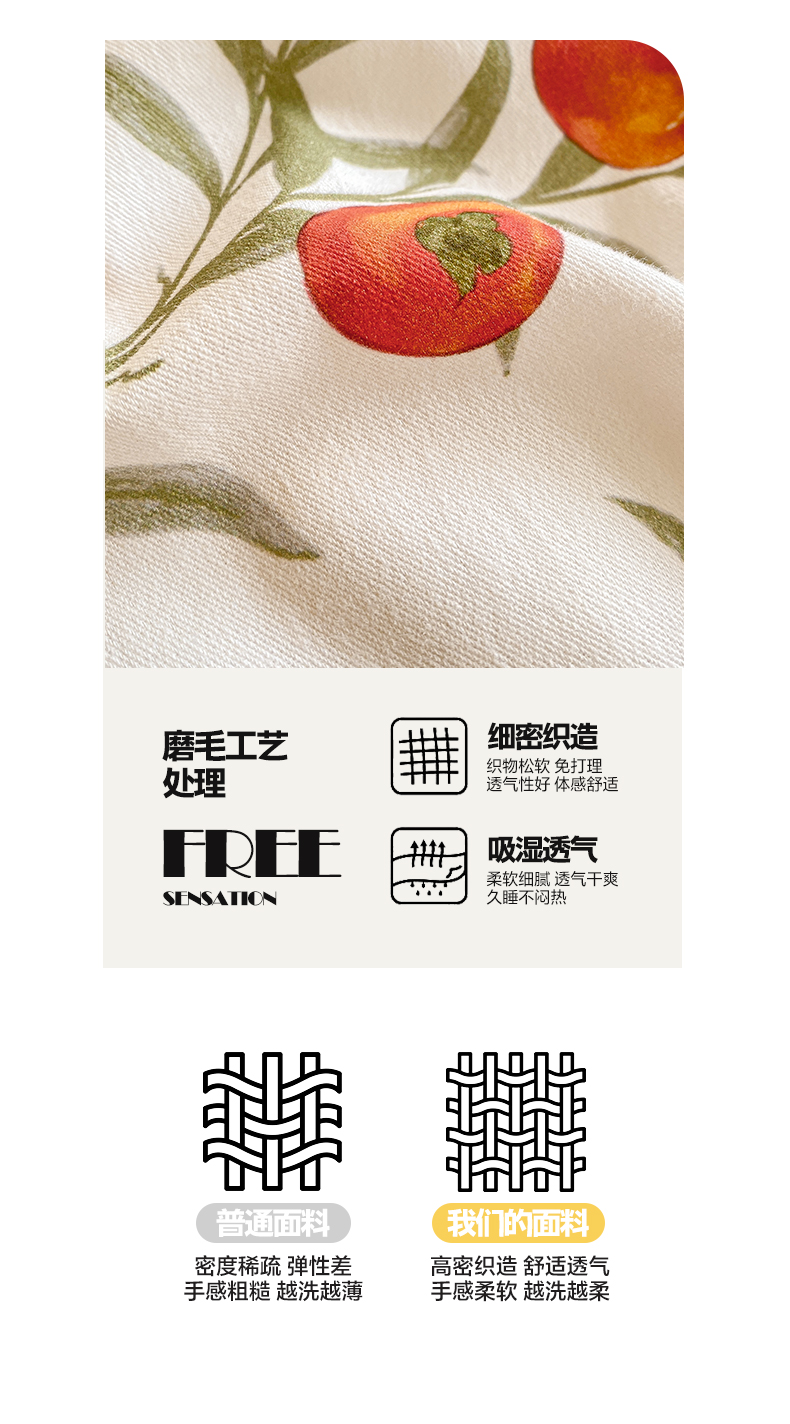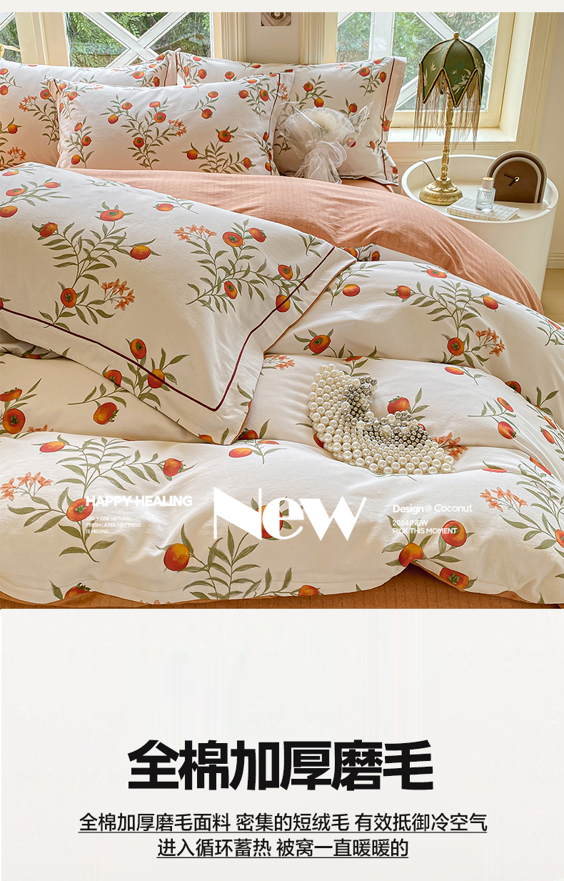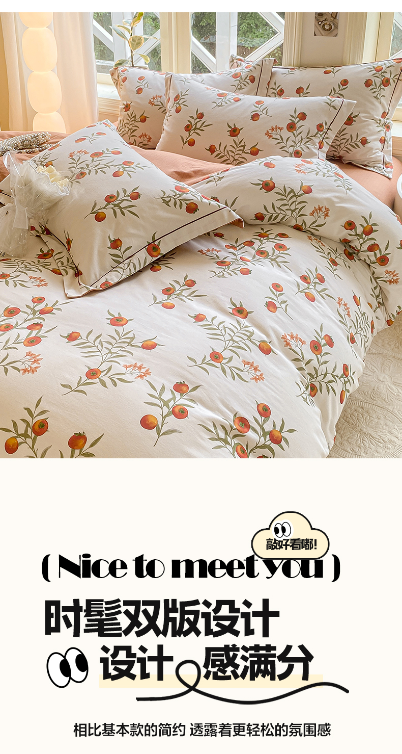 宜家坊 2024全棉ins风小清新加厚磨毛【提供质检报告】 好柿连连