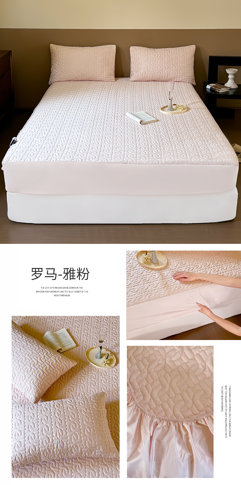 商品名称:三味舒屋 2024新款50支澳棉夹棉轻奢床笠 罗马-雅粉