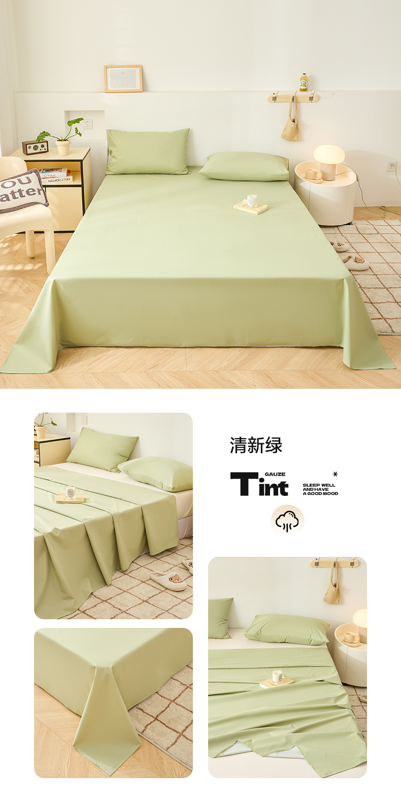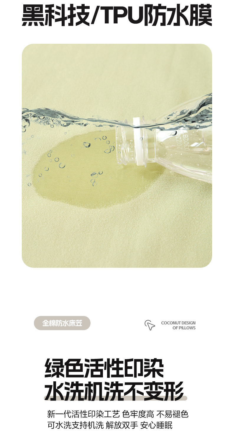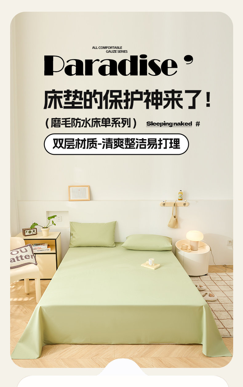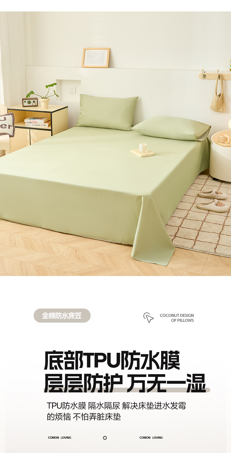 商品名称:火星时代网供 2024新款跨境外贸TPU防水床单单件儿童老人防失禁隔尿垫纯白色床罩套可水洗机洗 清新绿
