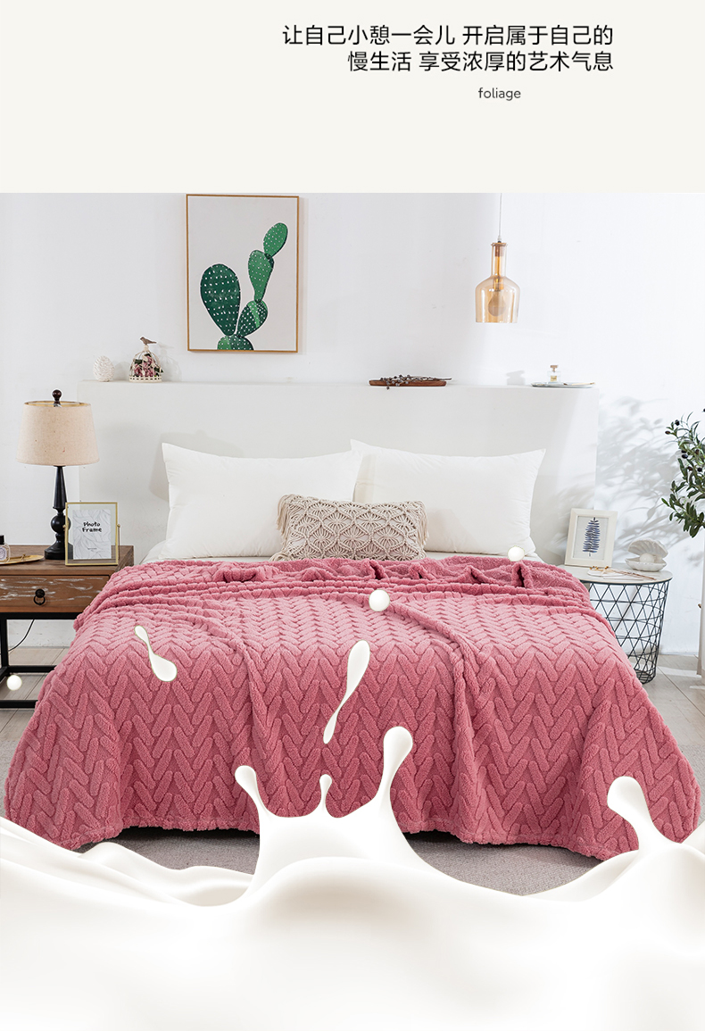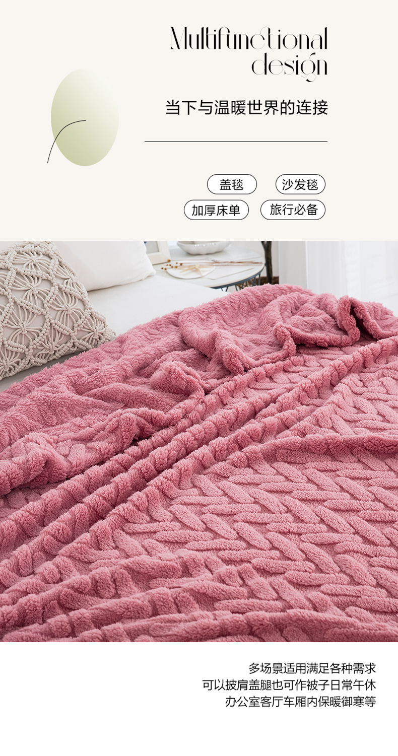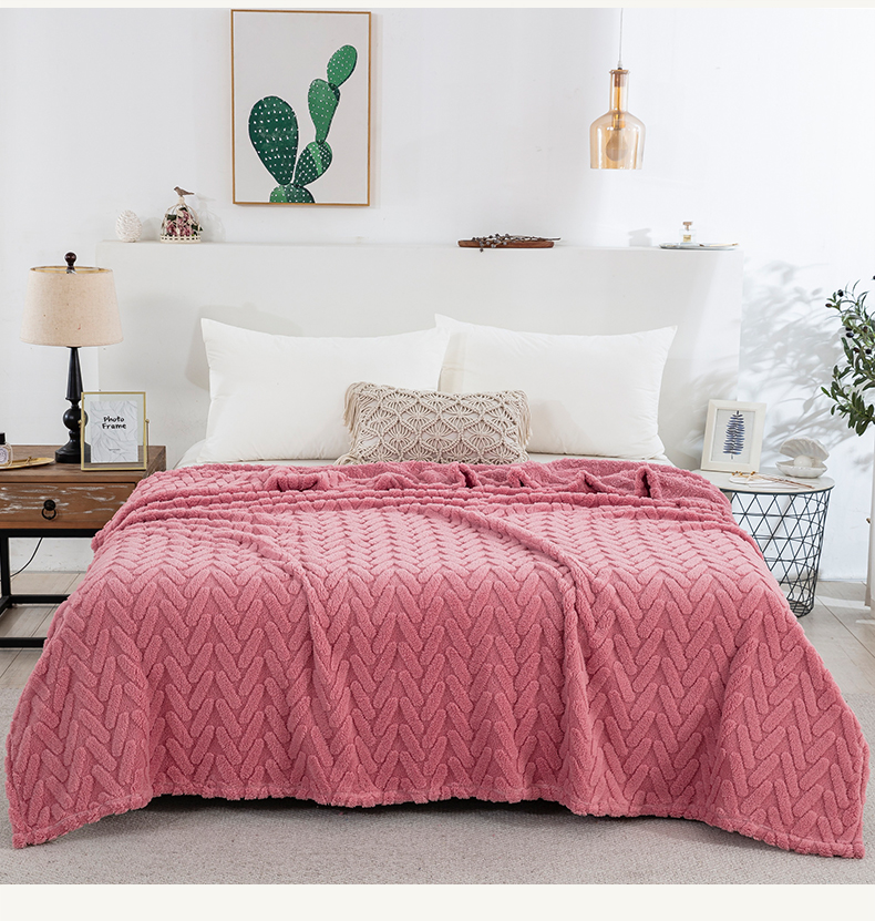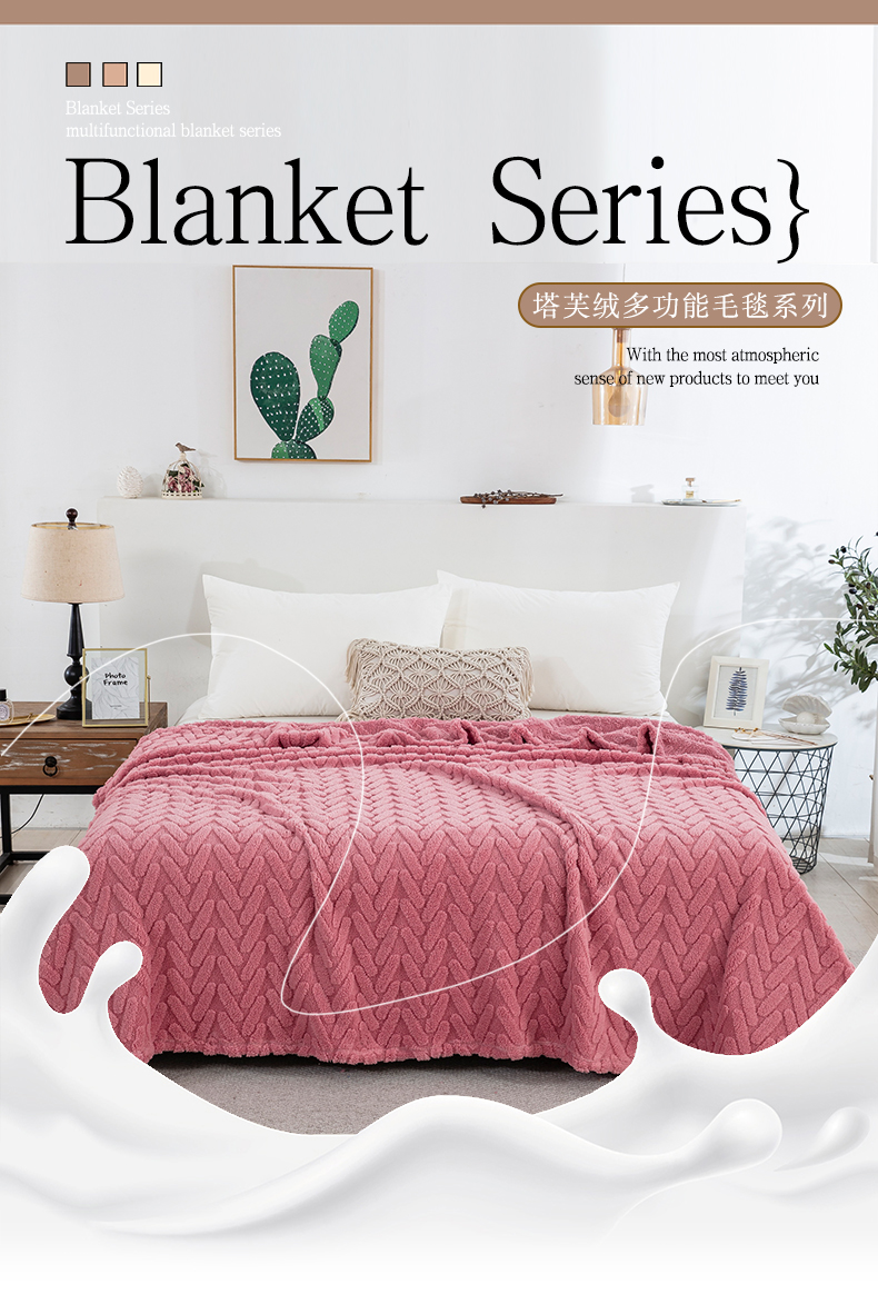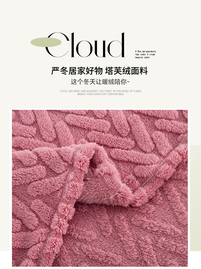 商品名称:一左一右 2024秋冬新款高克重单层双面提花塔芙绒毛毯舒棉绒毯多功能毯子外贸跨境电商 玫瑰粉