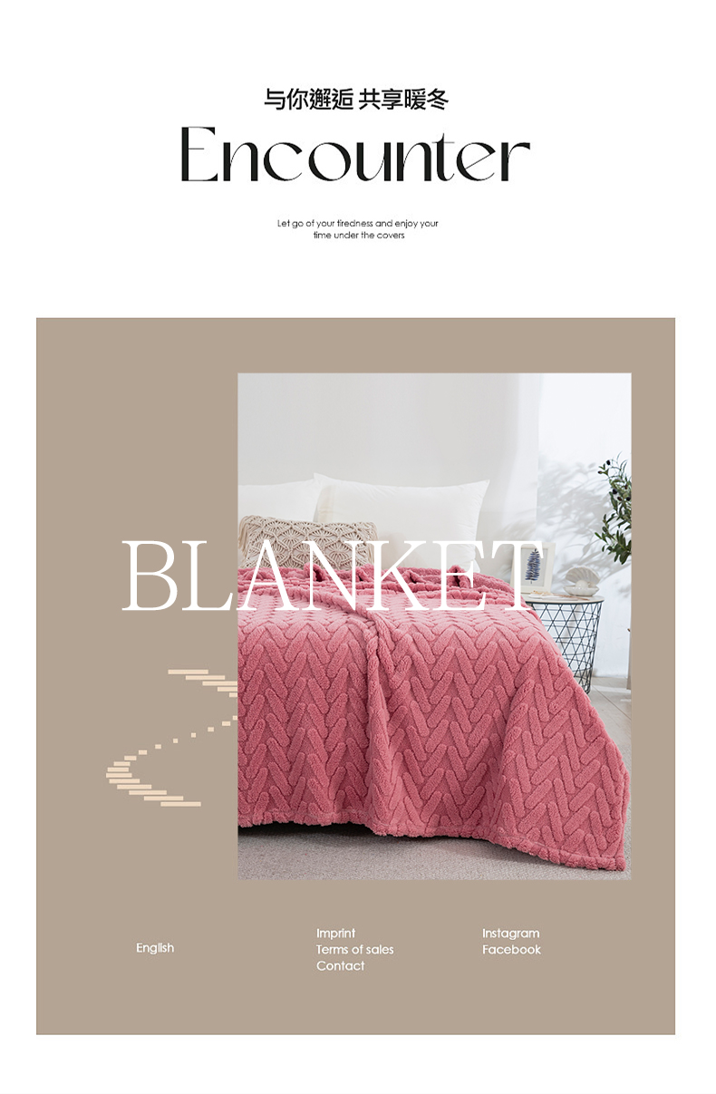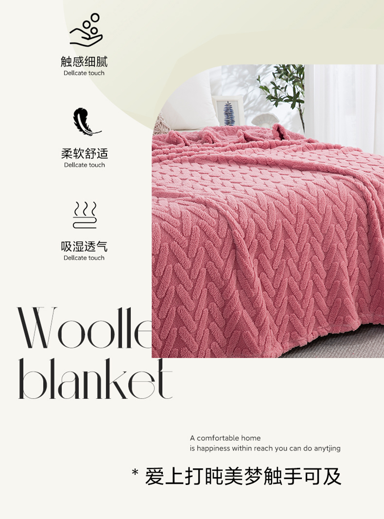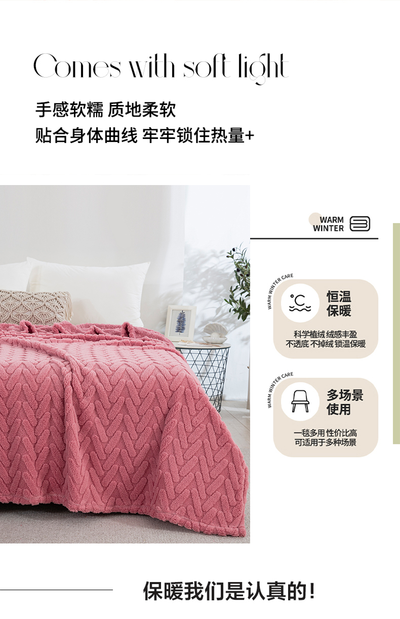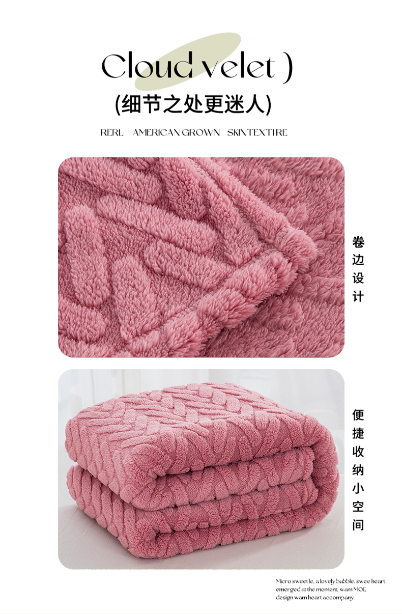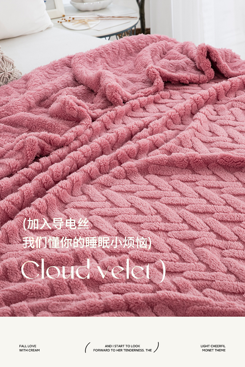 商品名称:一左一右 2024秋冬新款高克重单层双面提花塔芙绒毛毯舒棉绒毯多功能毯子外贸跨境电商 玫瑰粉