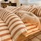 启程家纺 2024新款无印风A类牛奶绒四件套 条纹-米驼
