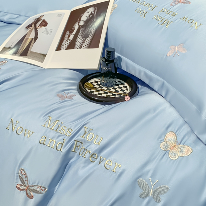 梧桐家居 2024新款冰丝四件套-蝴蝶 蝴蝶-天蓝