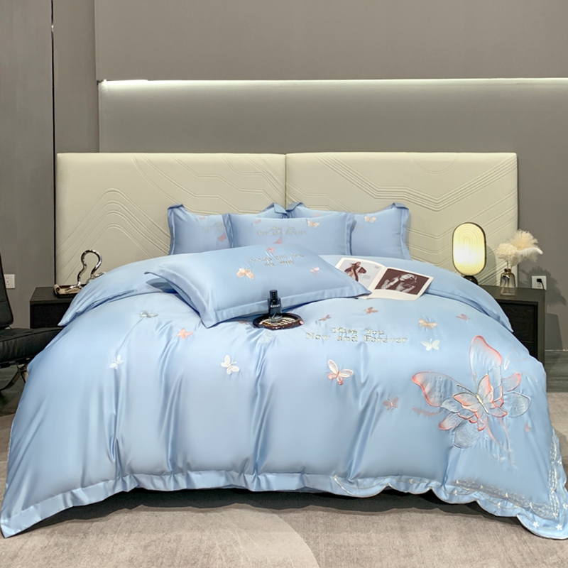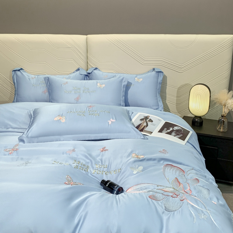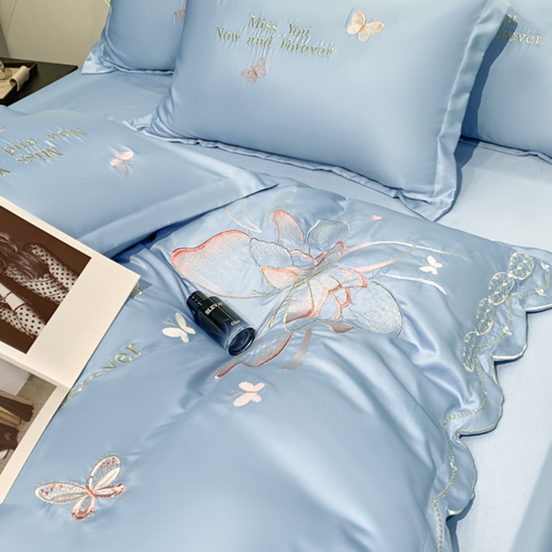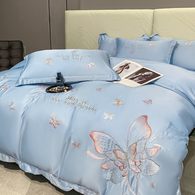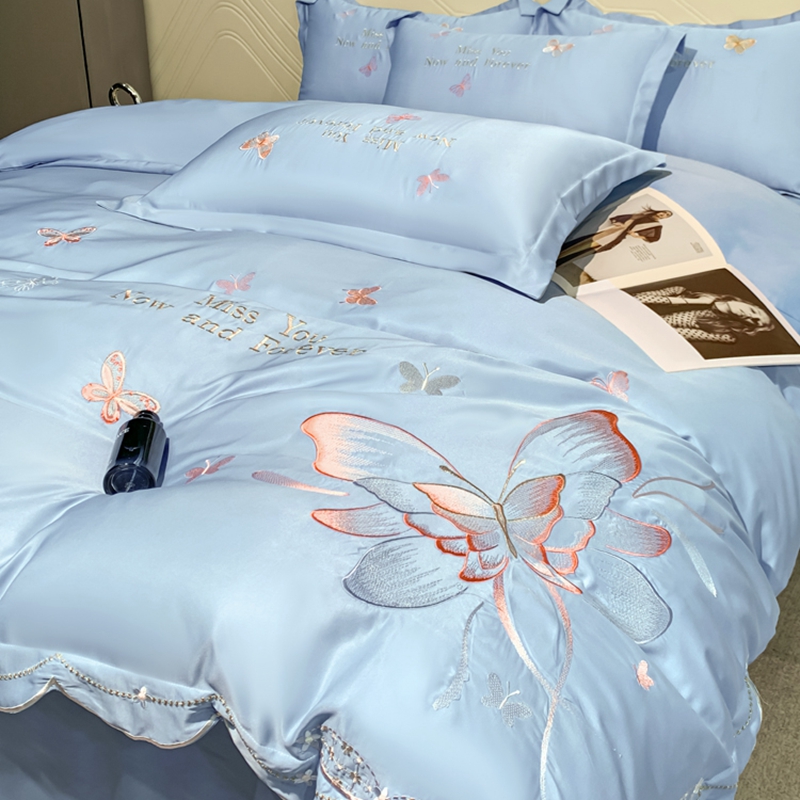 商品名称:梧桐家居 2024新款冰丝四件套-蝴蝶 蝴蝶-天蓝