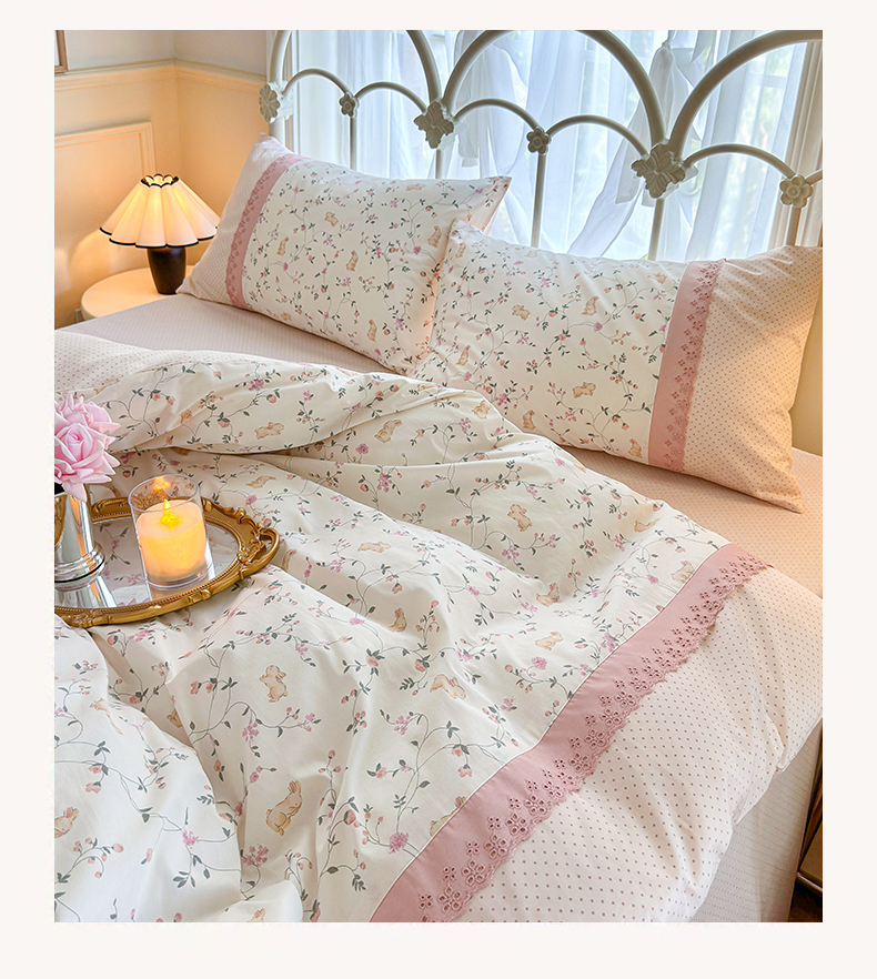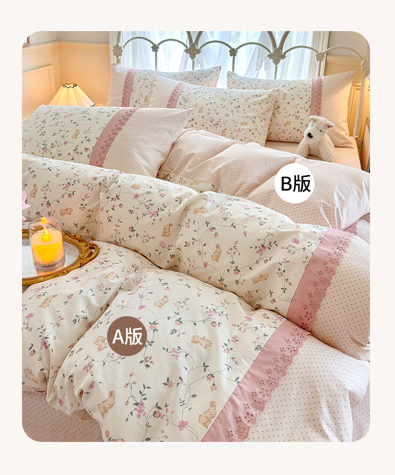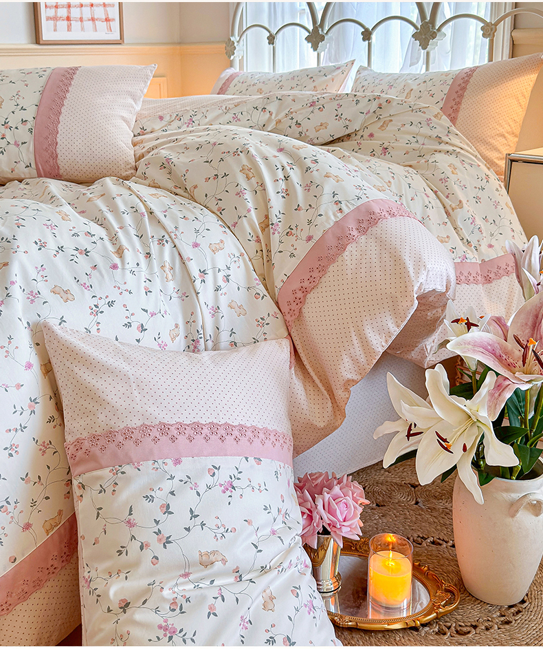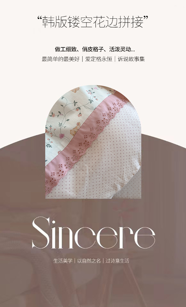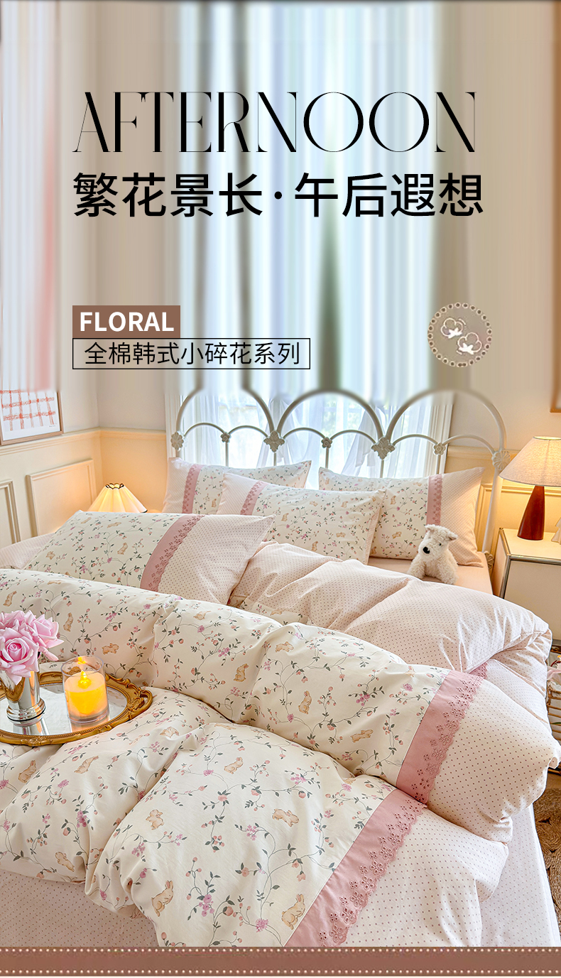 (总)安莱生活 2026年新品全棉纯棉小碎花刺绣花边款四件套-小碎花系列,花漾粉,花梦紫,凯特花园,漫语花,泡芙花园