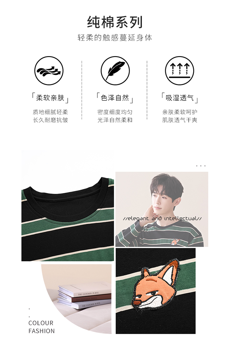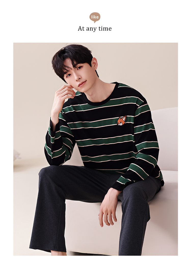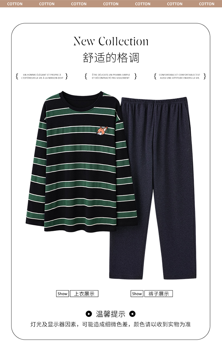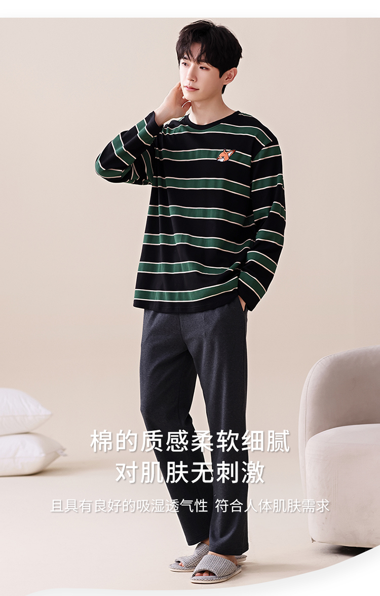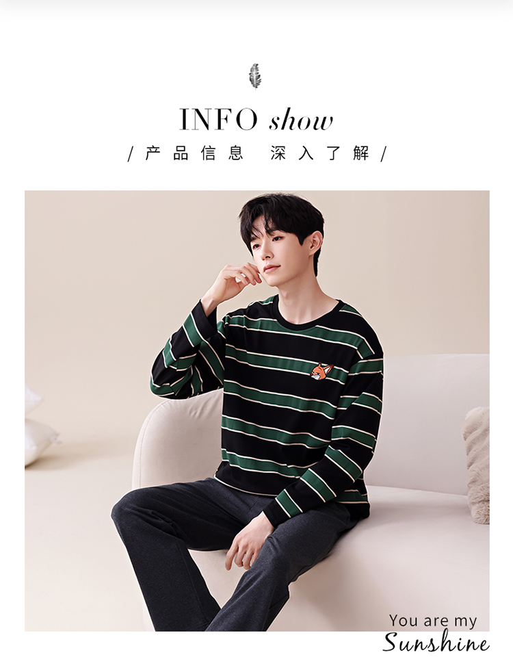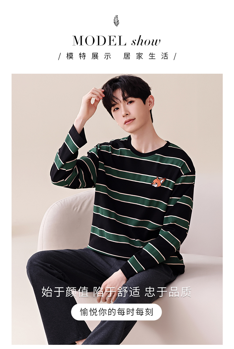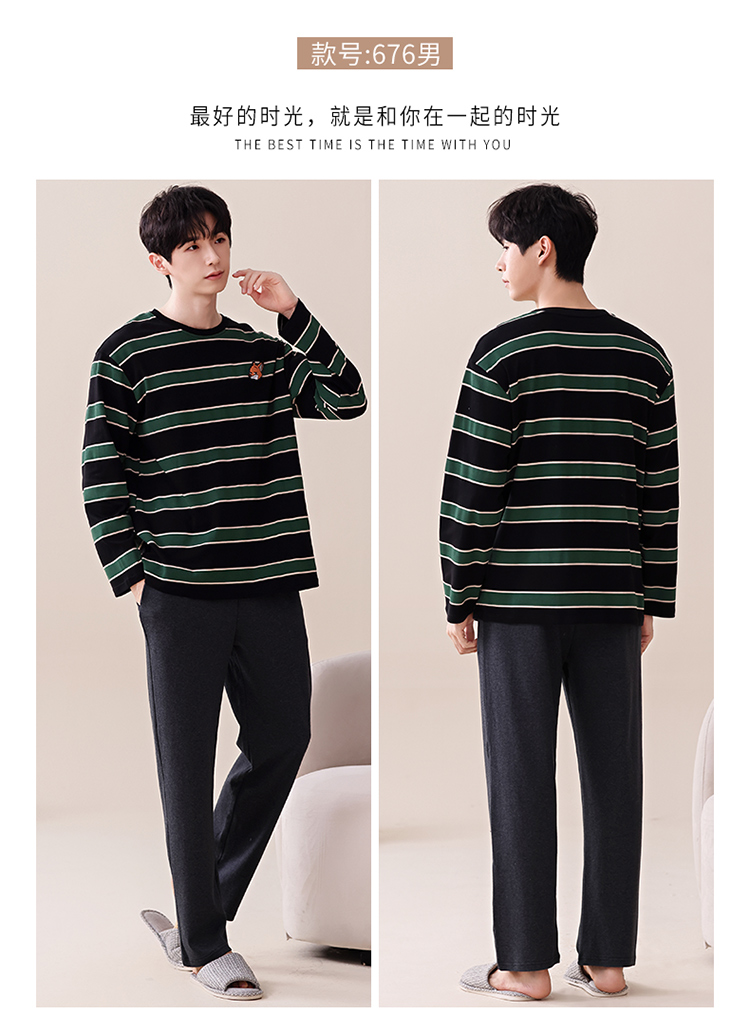 商品名称:春秋季纯棉圆领睡衣男士卡通长袖家居服夏季青少年休闲可外穿套装 676男