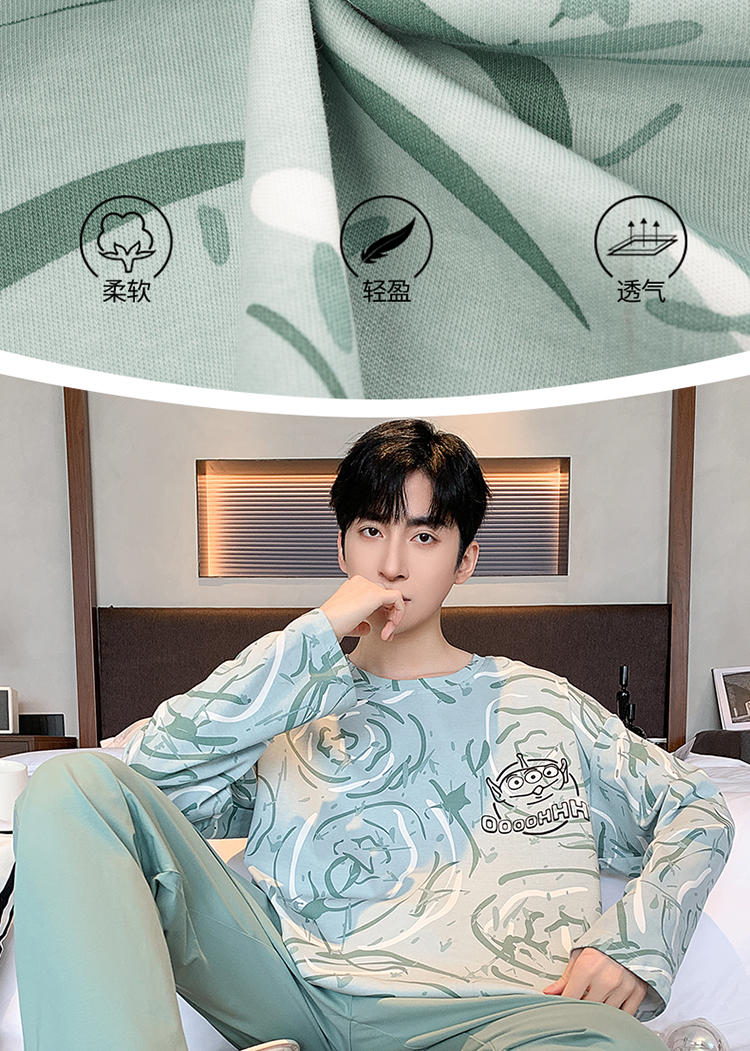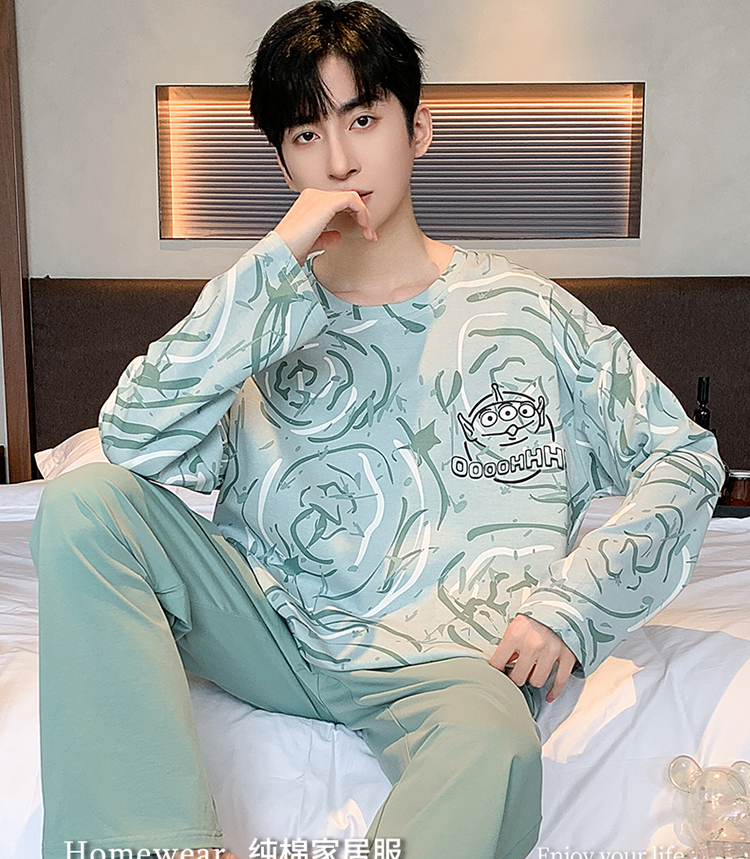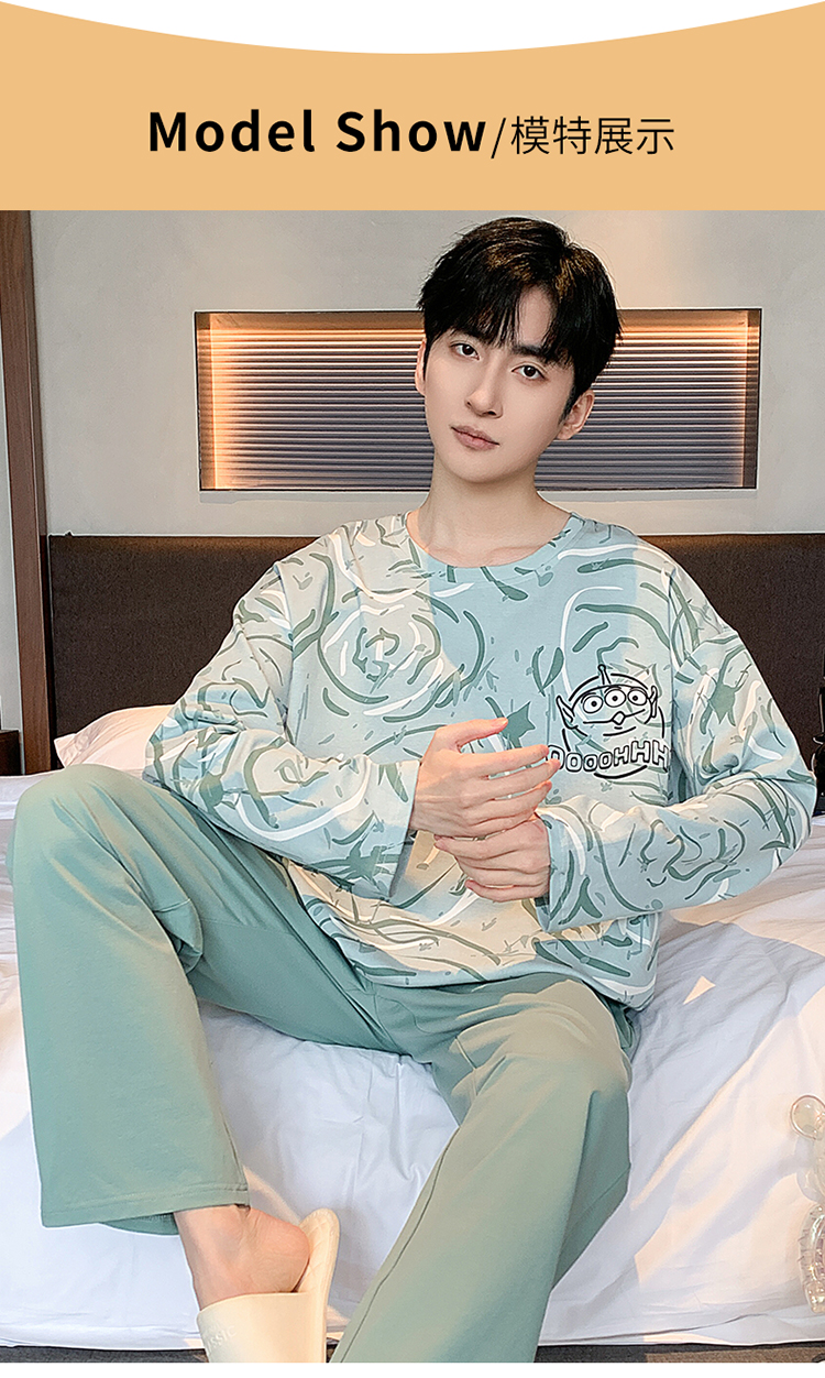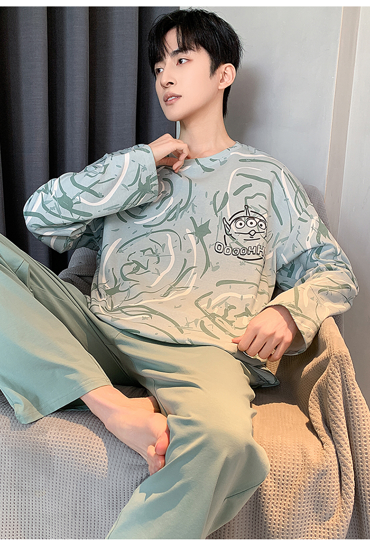 春秋季纯棉圆领睡衣男士卡通长袖家居服夏季青少年休闲可外穿套装 89328