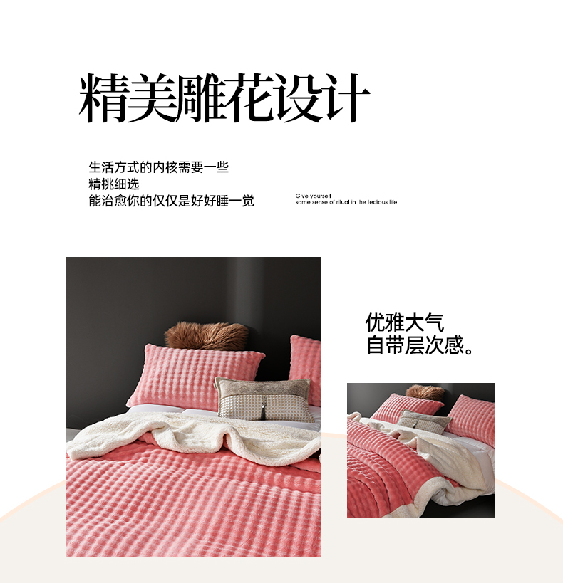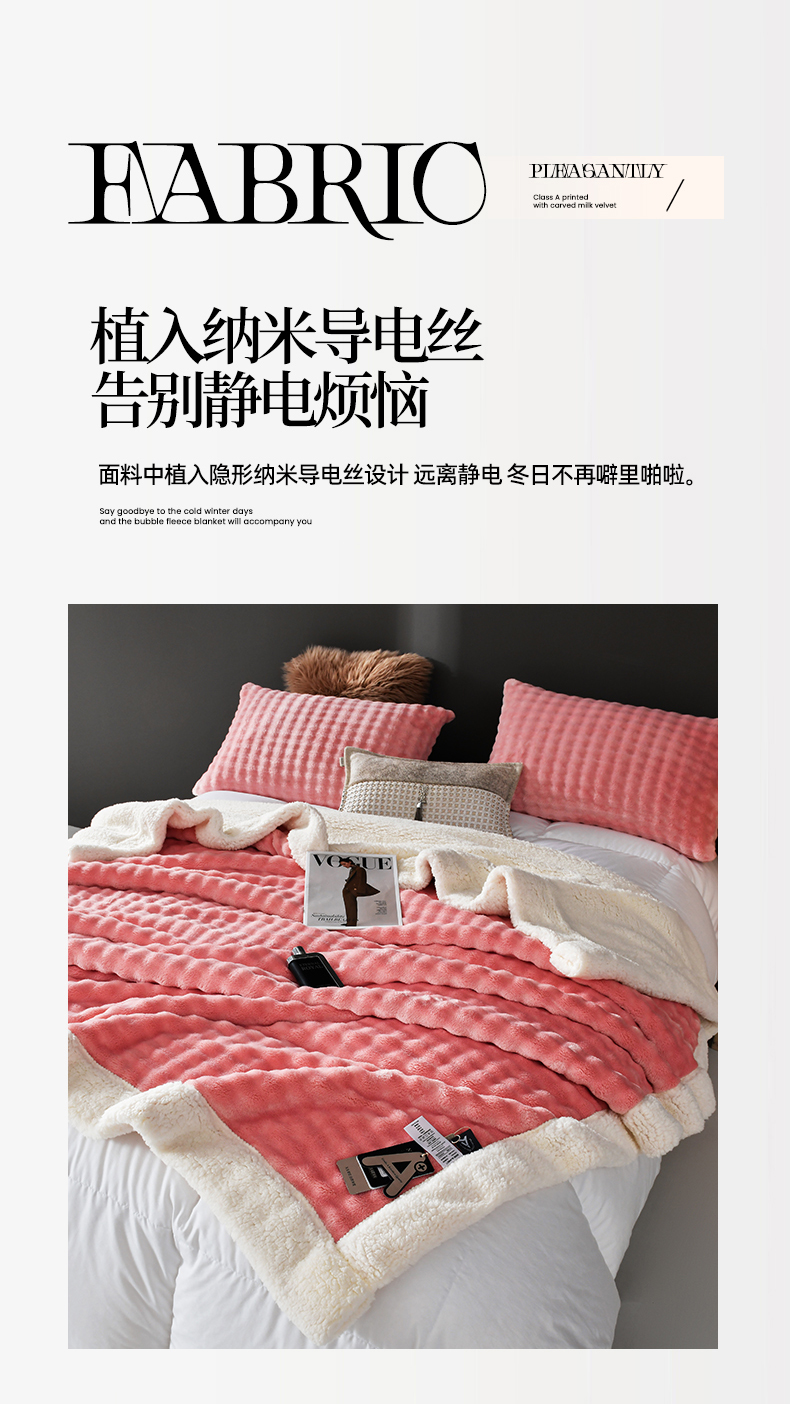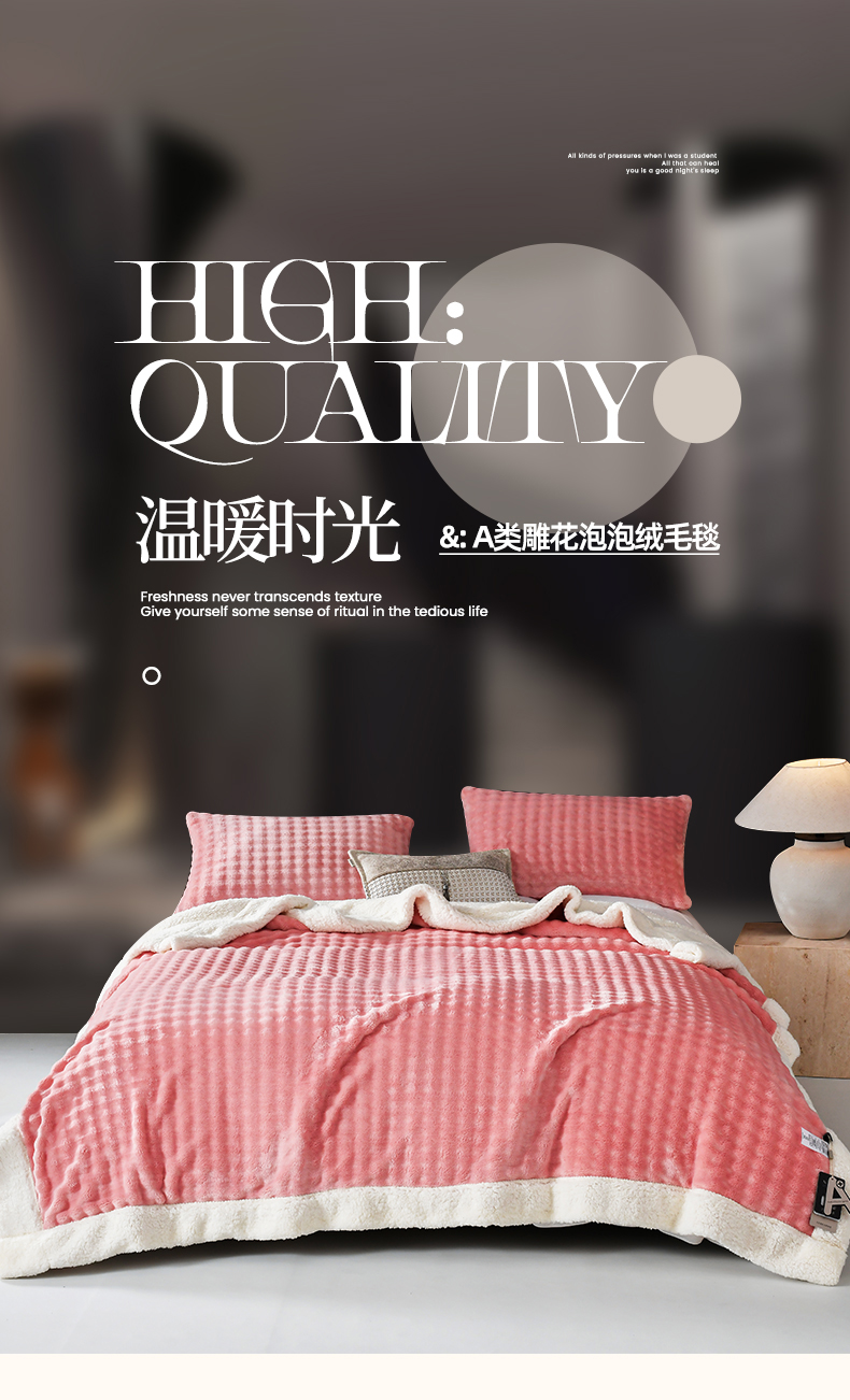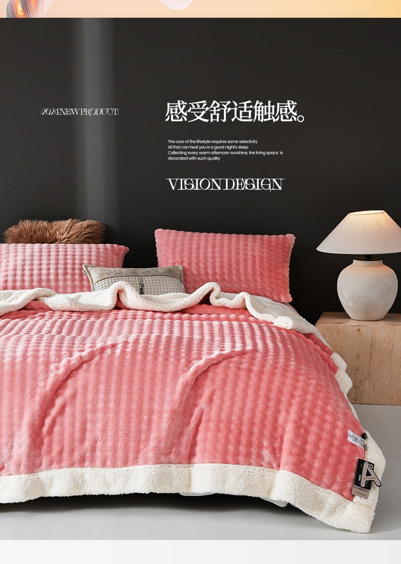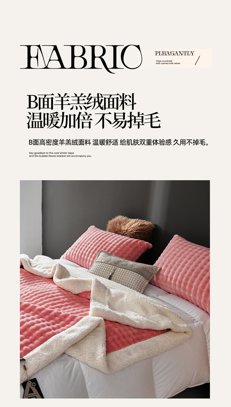 网客家纺 2024新款雕花绒泡泡绒羊羔绒毛毯 橡皮粉