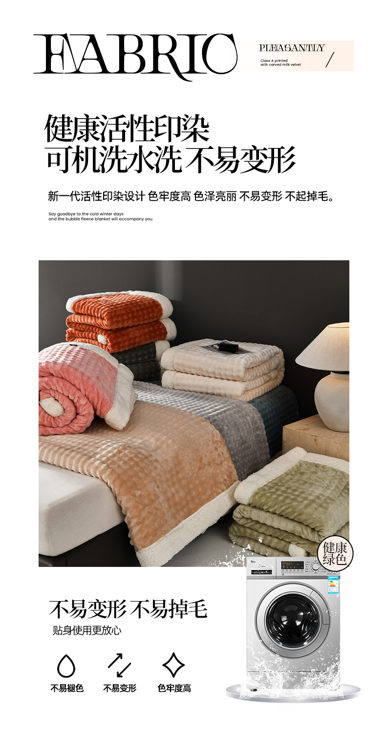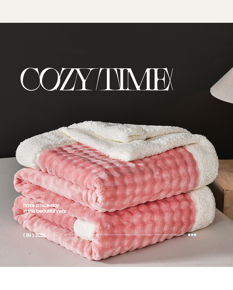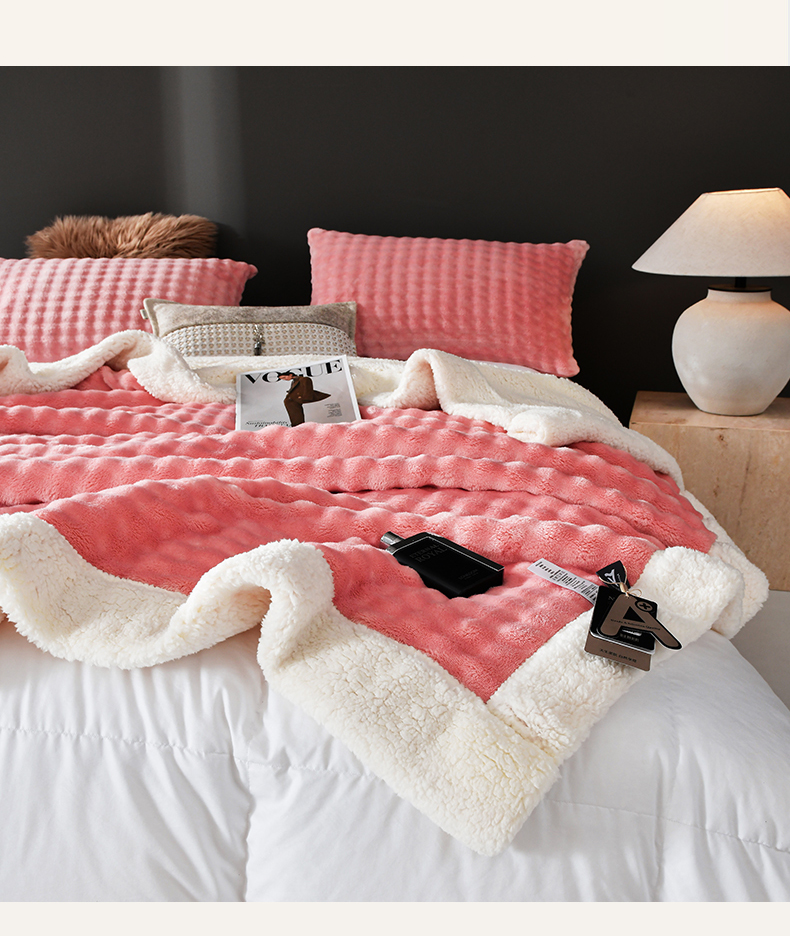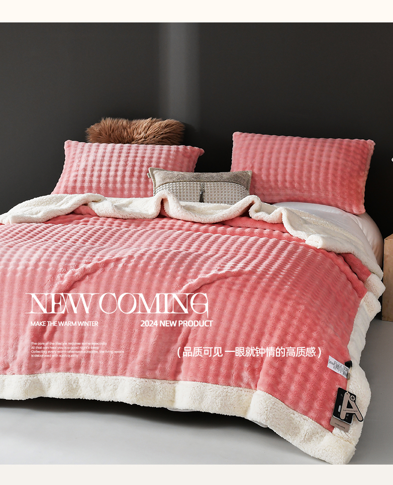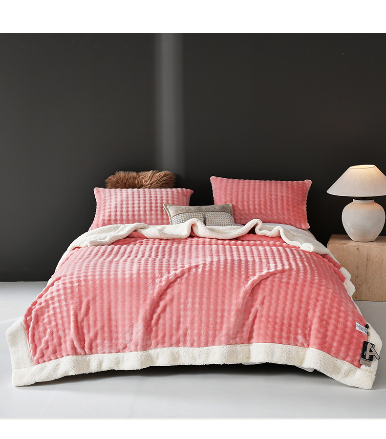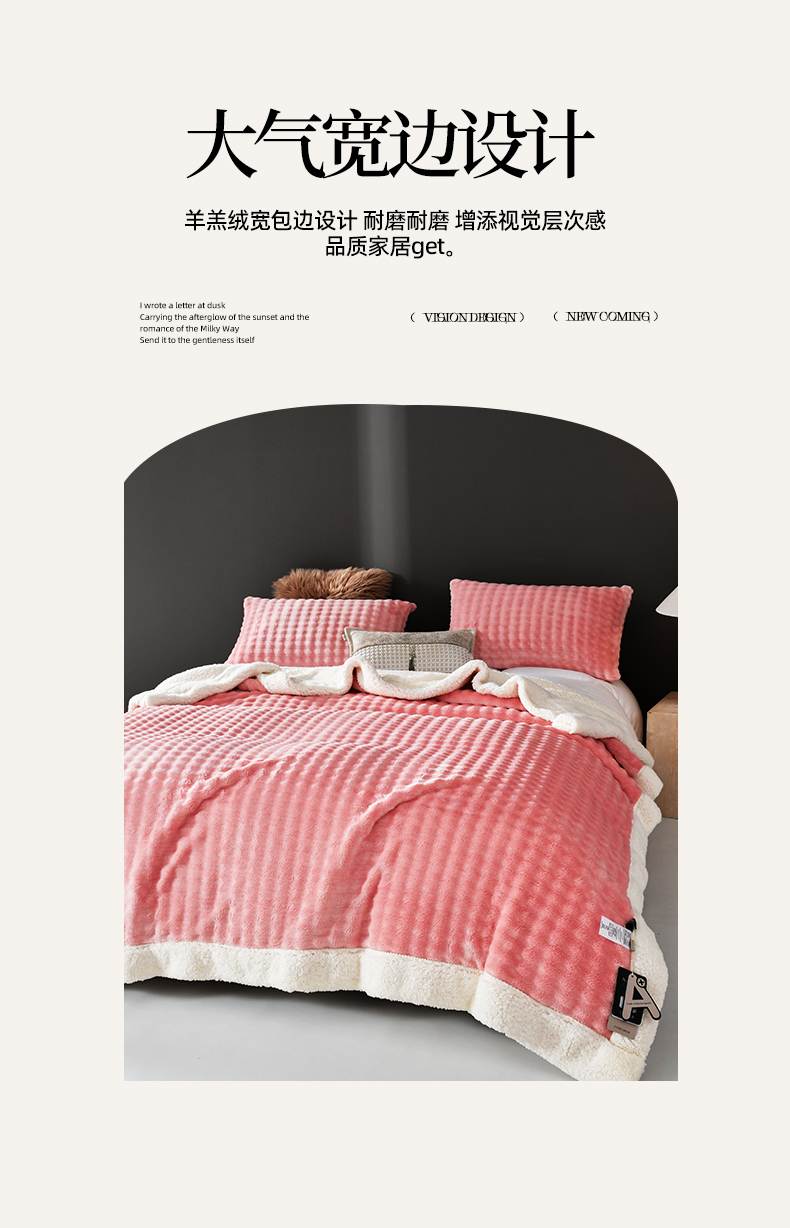 网客家纺 2024新款雕花绒泡泡绒羊羔绒毛毯 橡皮粉