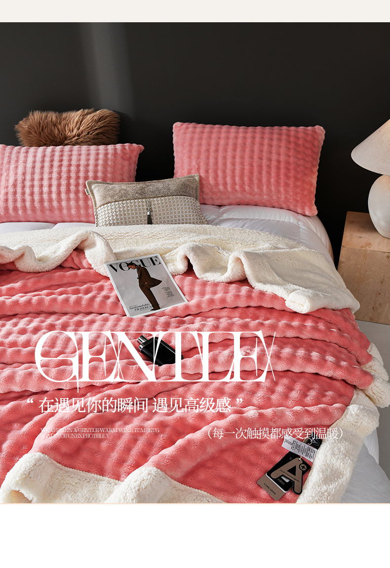 商品名称:网客家纺 2024新款雕花绒泡泡绒羊羔绒毛毯 橡皮粉