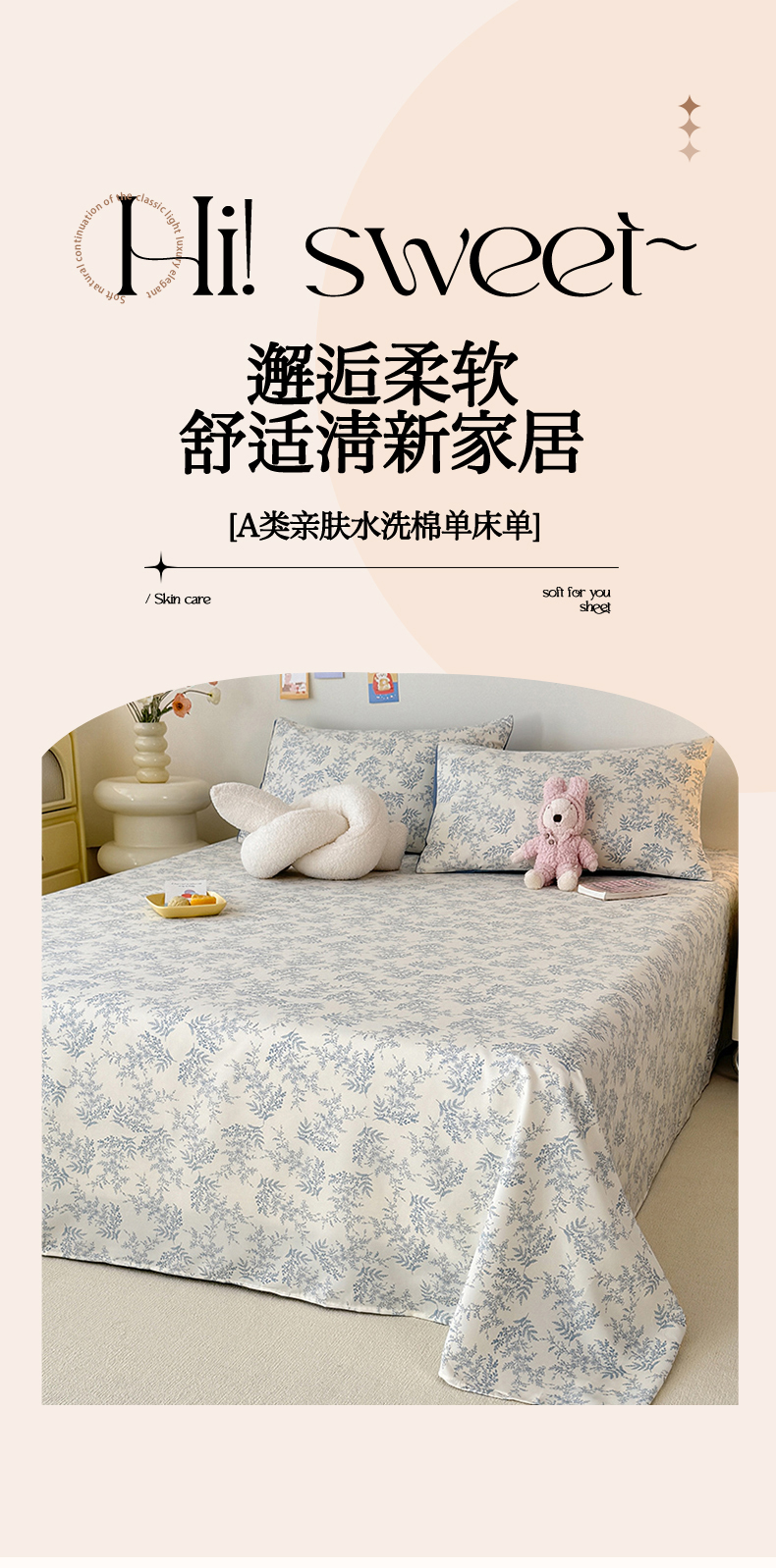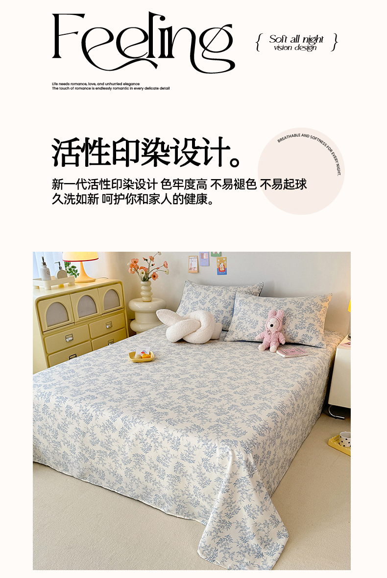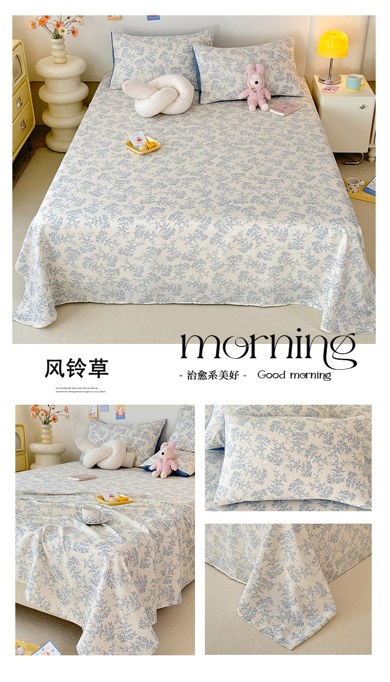 商品名称:妖妖家纺 2024新款超柔软糯水洗云朵棉印花单床单 风铃草