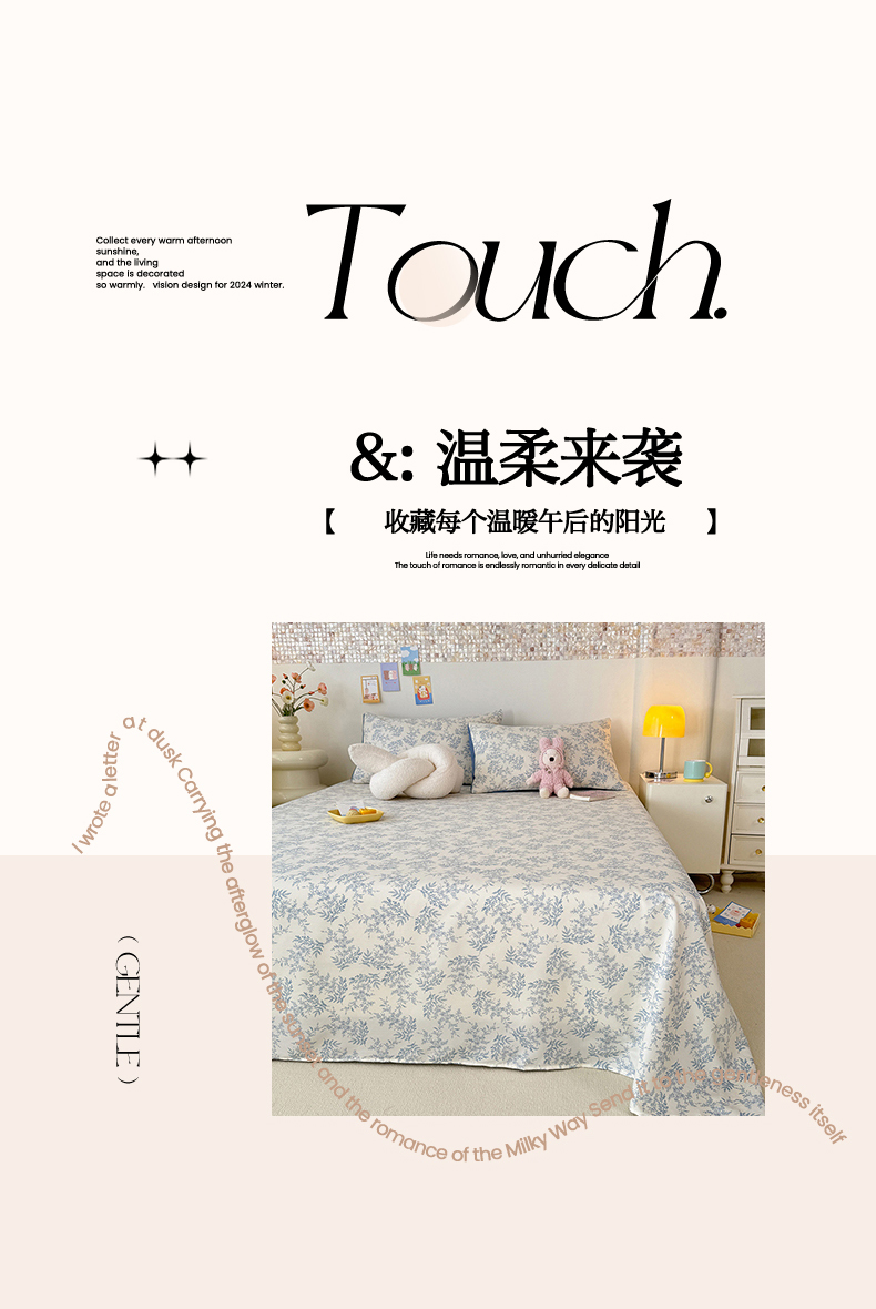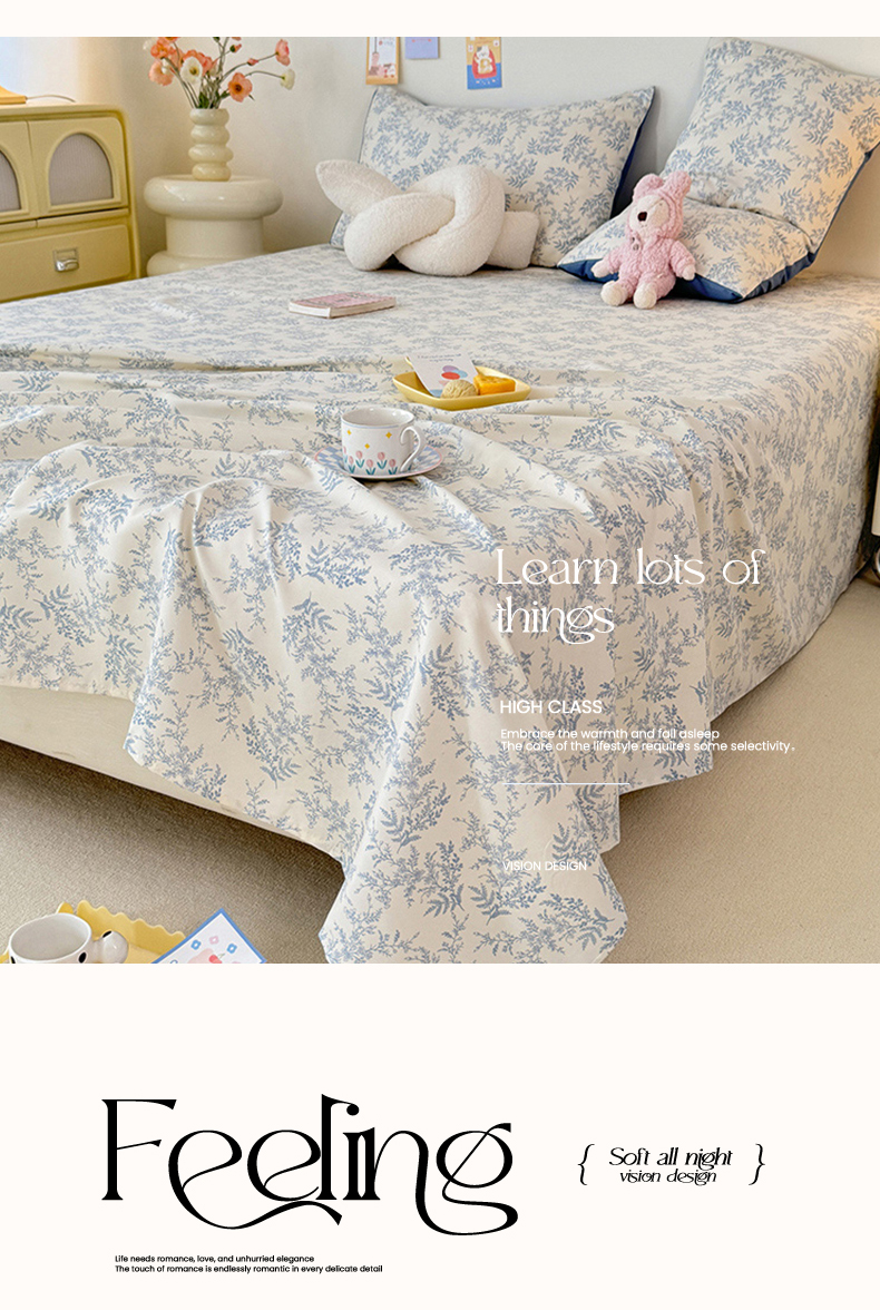 妖妖家纺 2024新款超柔软糯水洗云朵棉印花单床单 风铃草