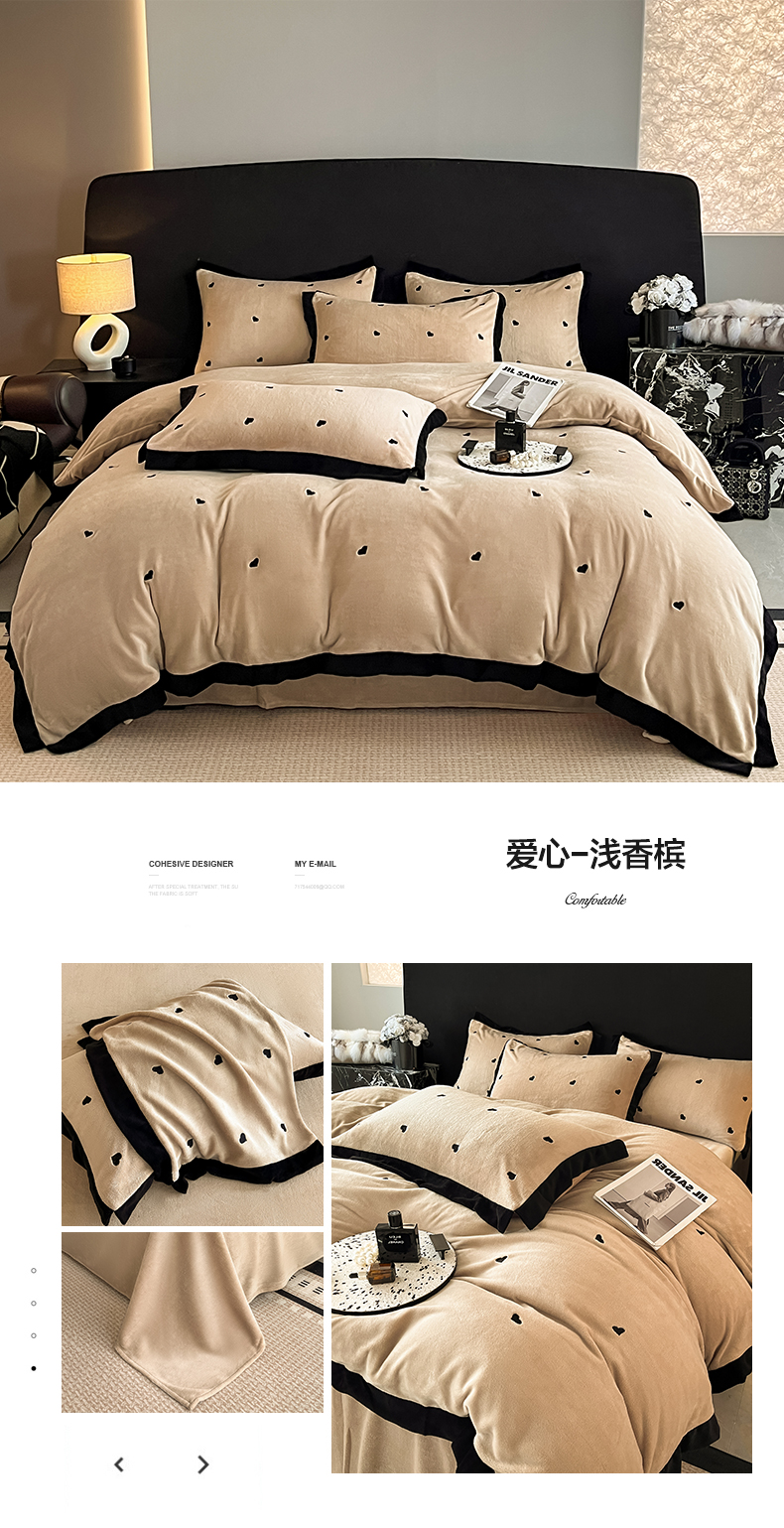 商品名称:米彩家纺 2024新款A类轻奢风牛奶绒绣花四件套-爱心蝴蝶结系列 爱心-浅香槟