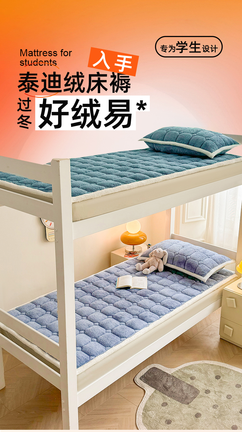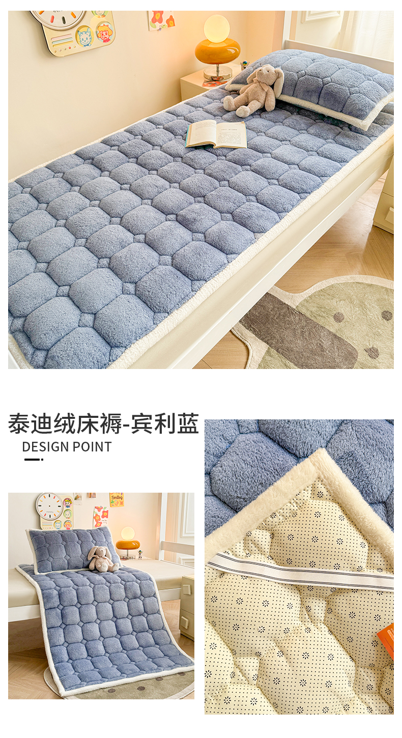 当前位置: 91家纺网 > 商品网购 > 床垫/床褥 > 普通床垫 > 雯豆家纺 2025冬季泰迪绒学生宿舍床垫床褥子上下铺大学生床垫北极绒床护垫 泰迪绒床褥-宾利蓝
