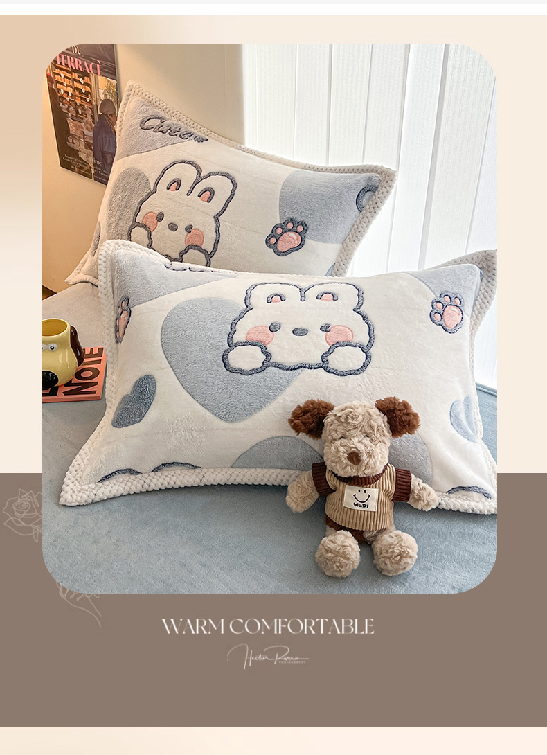倾慕家纺 2024新款加厚保暖6D立体雪花绒系列-单枕套 时尚猫咪