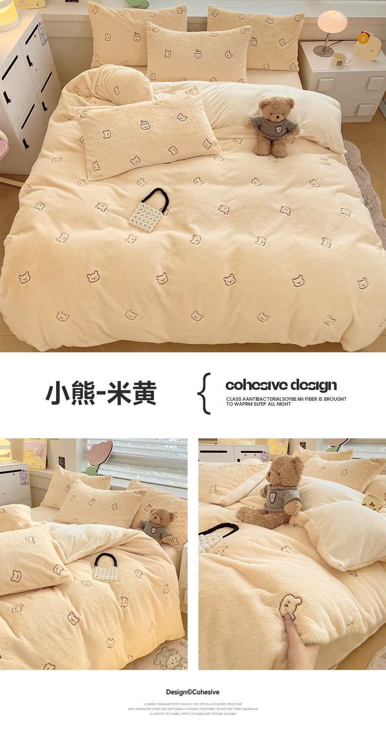 当前位置: 91家纺网 > 商品网购 > 床品套件 > 四件套 > 牛奶绒四件套 > 蜜柚 2024新款牛奶绒兔毛绒高克重小清新满版绣花四件套 嘟嘟熊