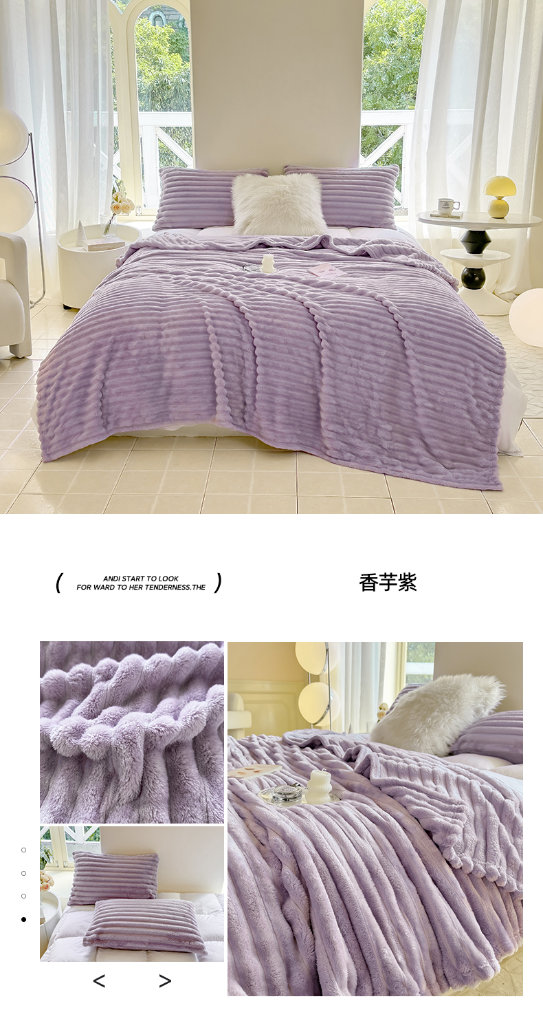 商品名称:卡派 2024新款兔毛绒多功能毛毯抽条牛奶绒贝贝绒毛毯 香芋紫